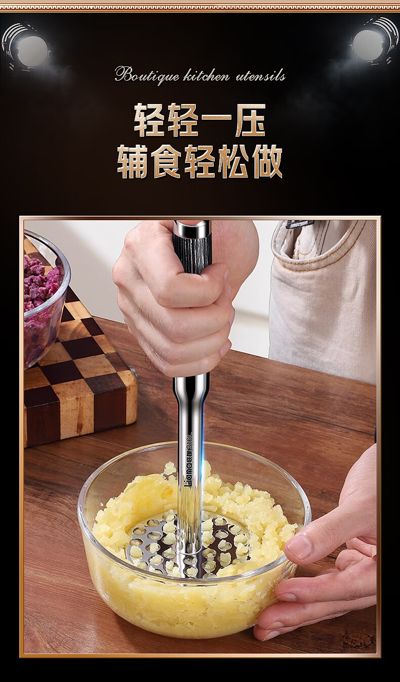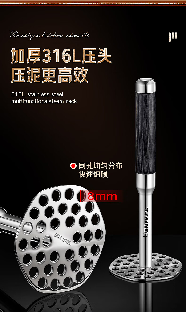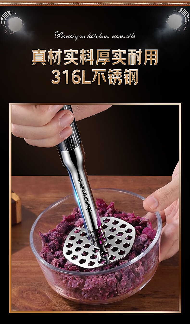 Lianna 316L stainless steel potato masher household food supplement masher masher mashed potato masher artifact baby grade 316L steel masher small size