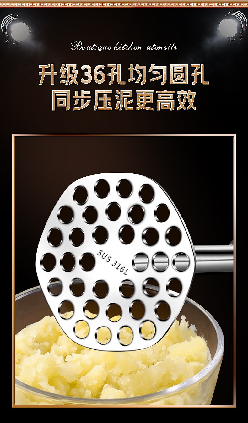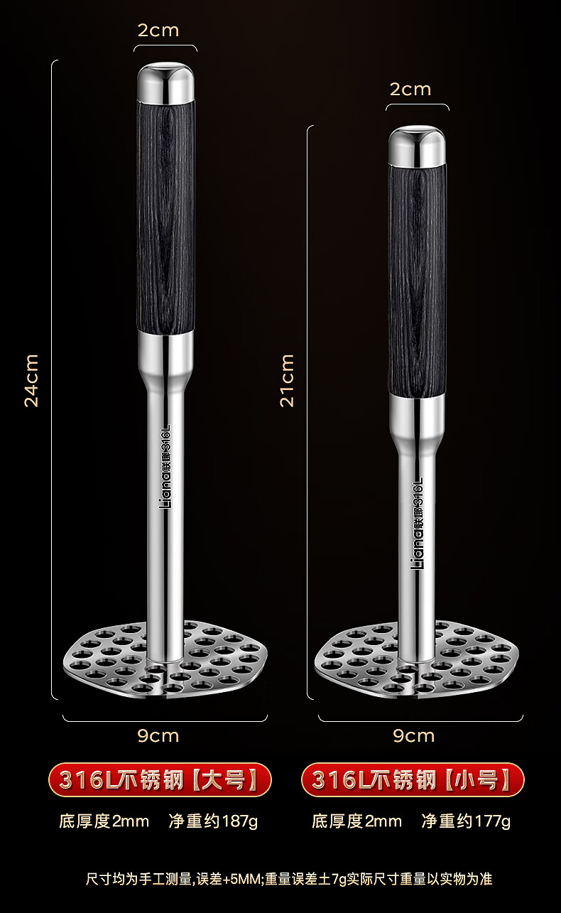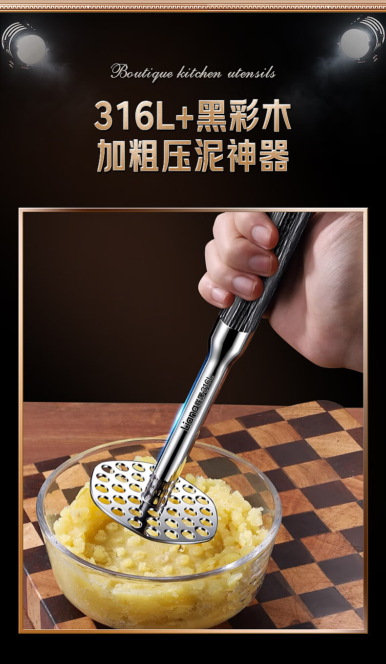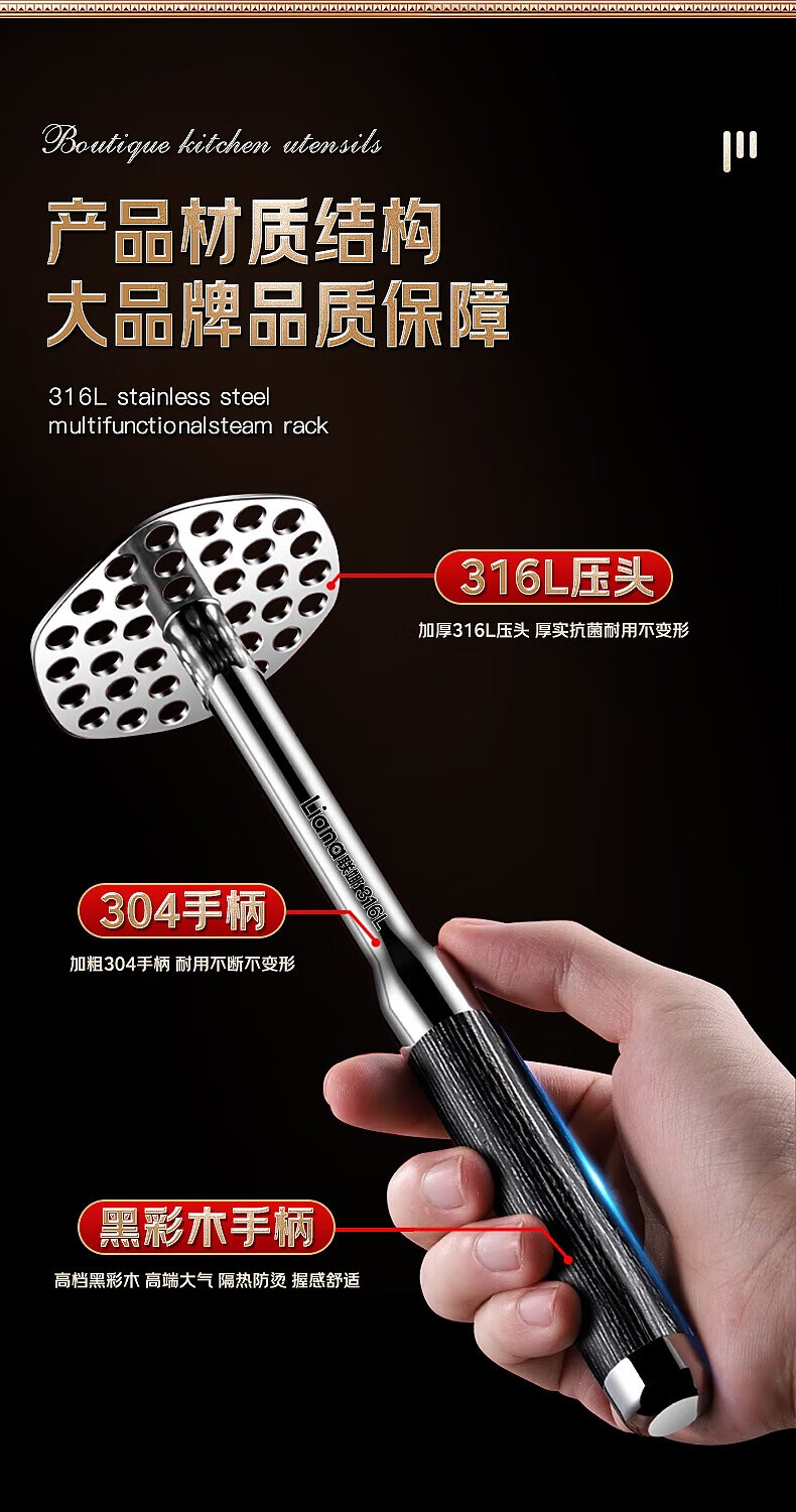Lianna 316L stainless steel potato masher household food supplement masher masher mashed potato masher artifact baby grade 316L steel masher small size