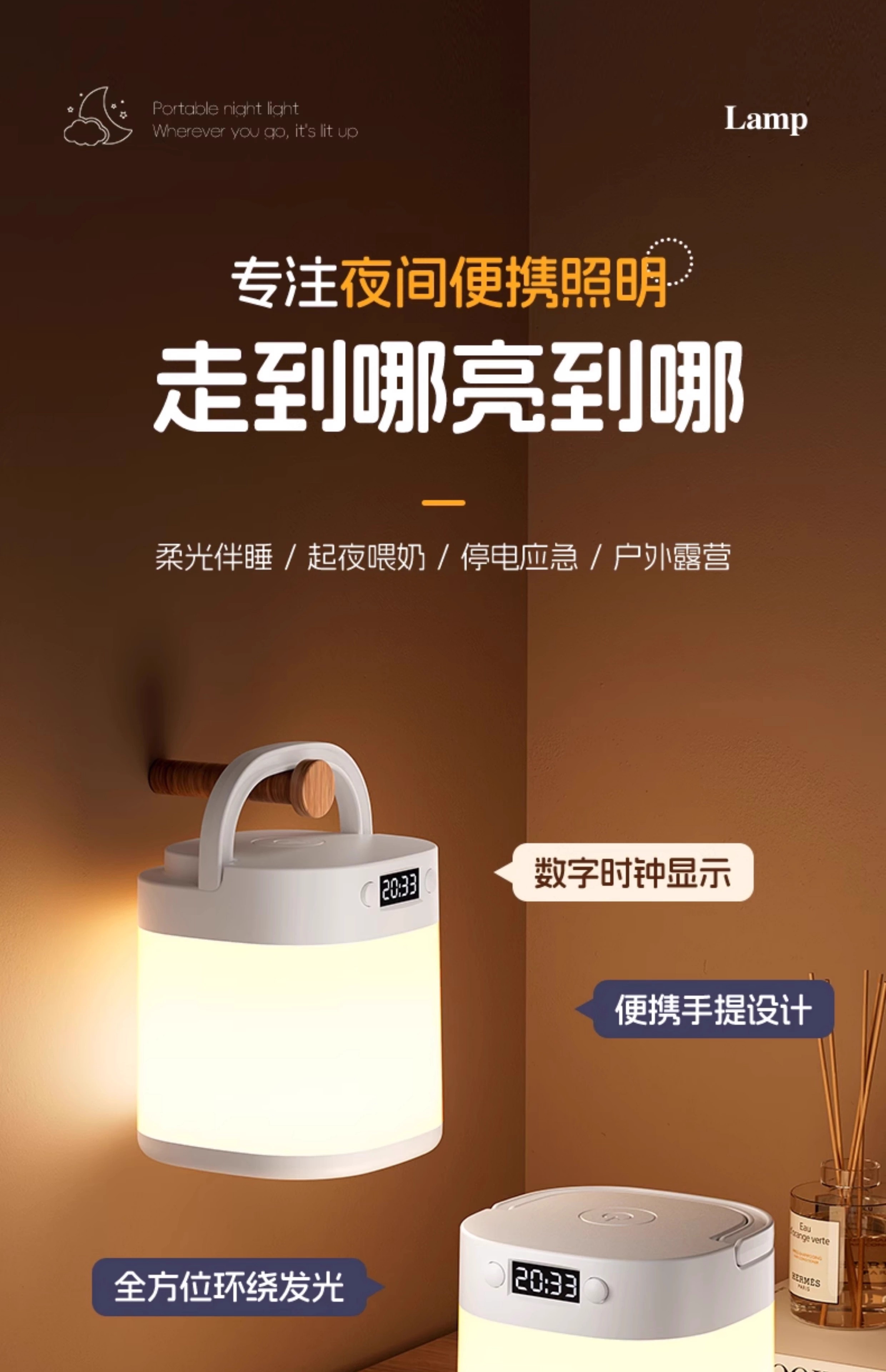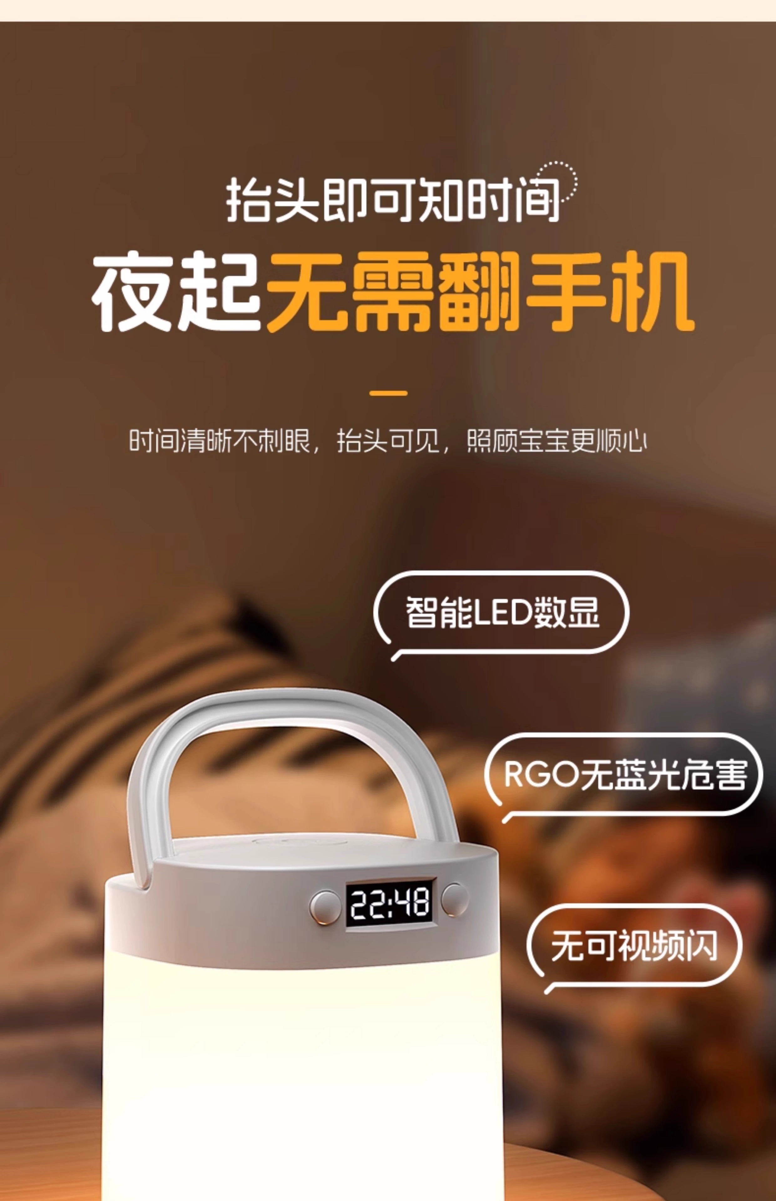 Guard Horse Clock Night Light Baby Feeding Night Light Rechargeable Bedroom Bedside Lamp Touch Sleep Pattern Portable Clock Remote Control Model C Charging 6000