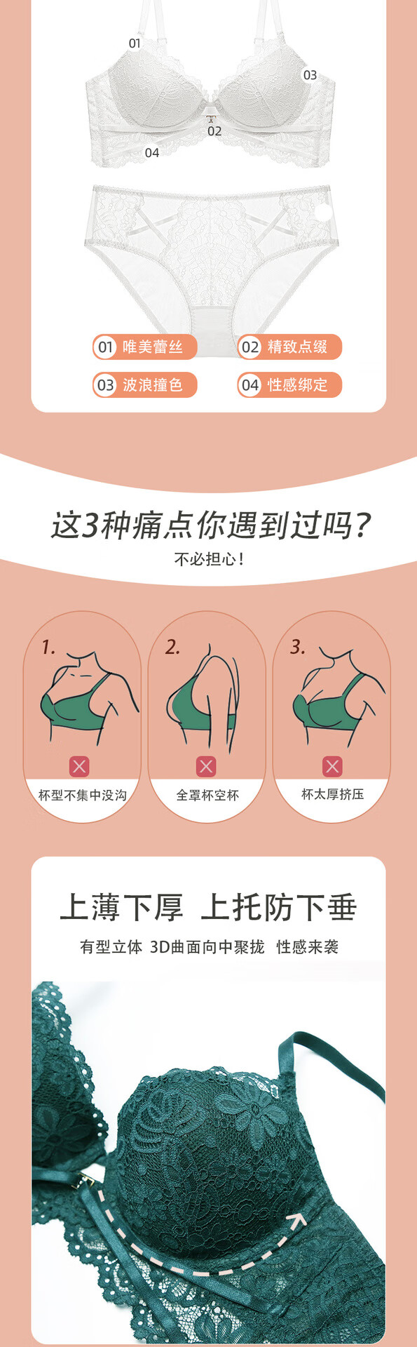 Victoria Palace Pure Desire Lace Bra French Sexy Small Breast Push Up Underwear Breathable Women's Anti-Sagging Inner Lace Underwear Set Green 75B /34