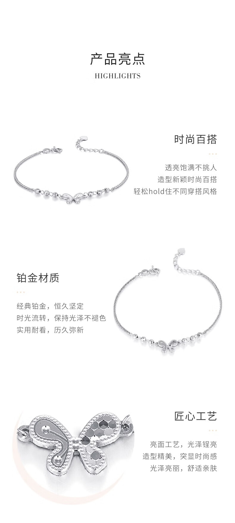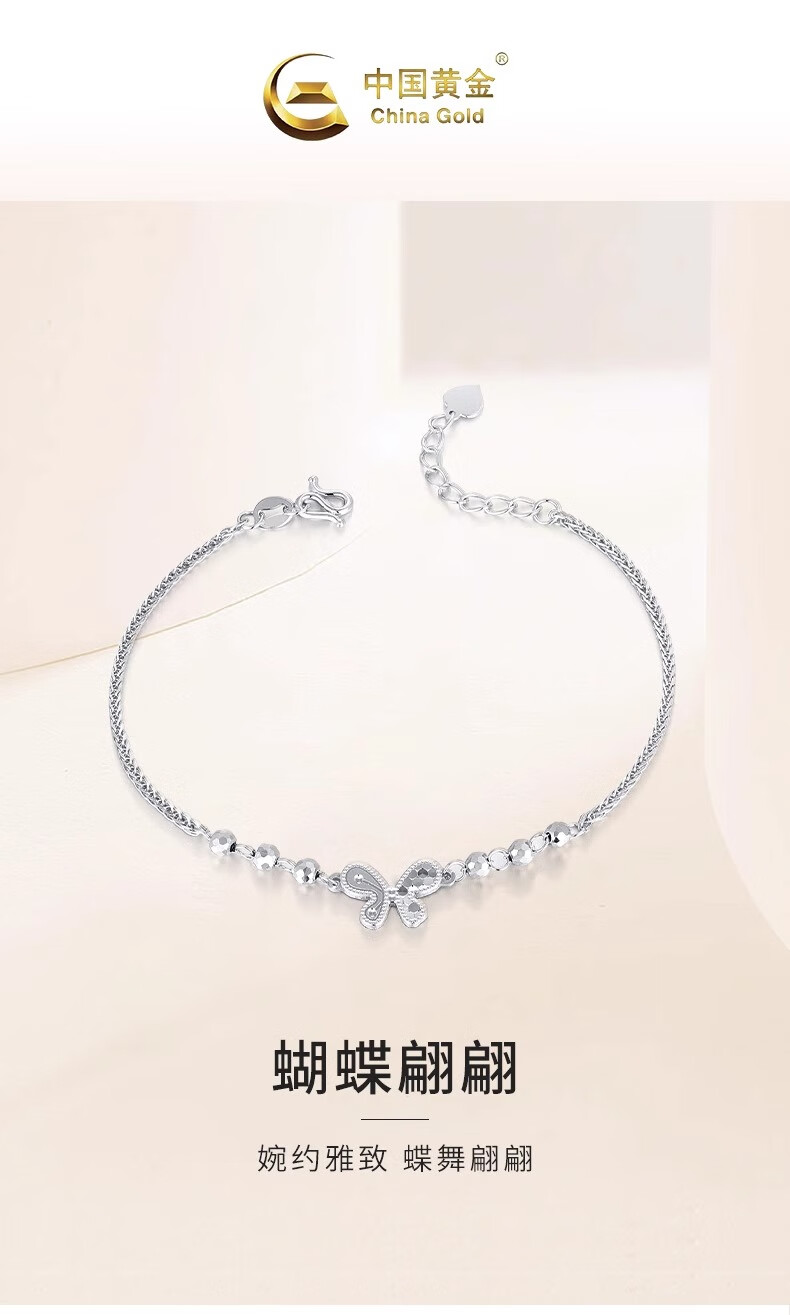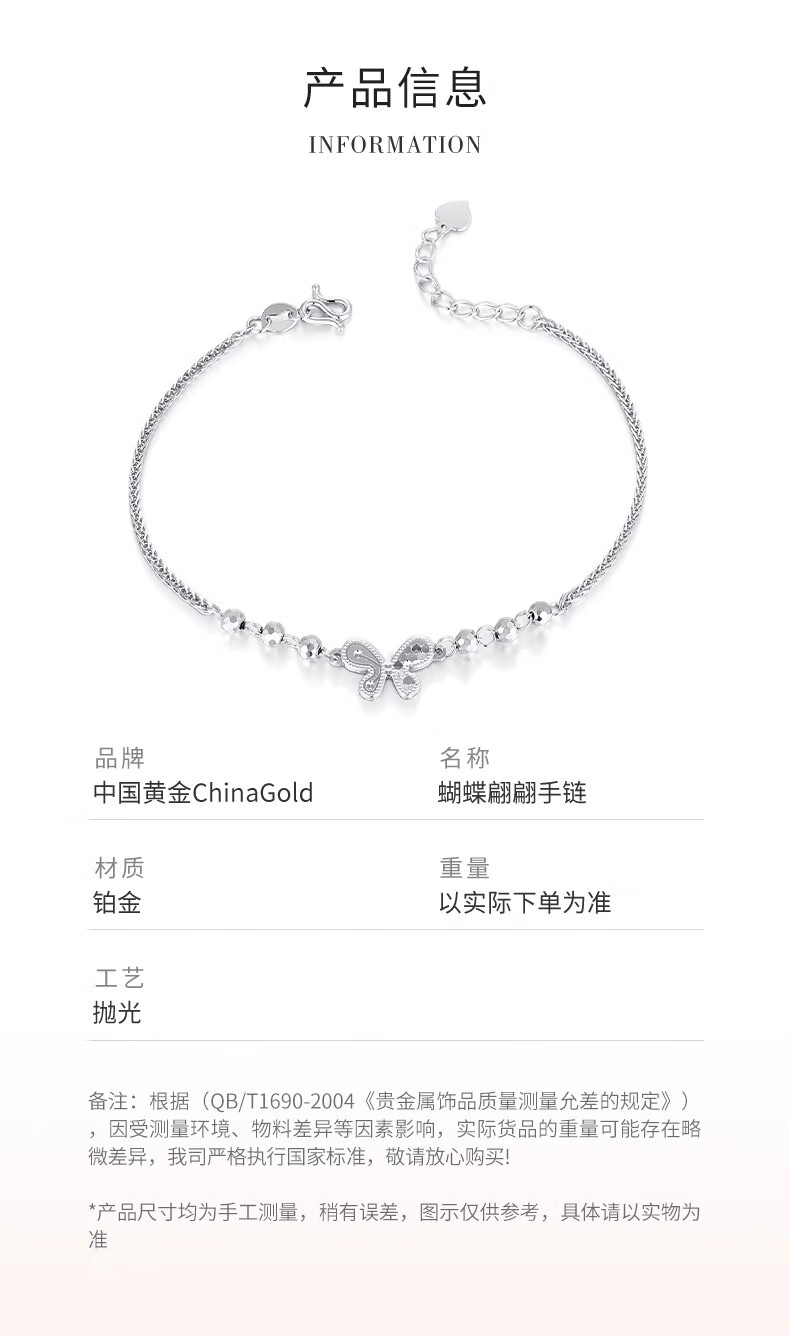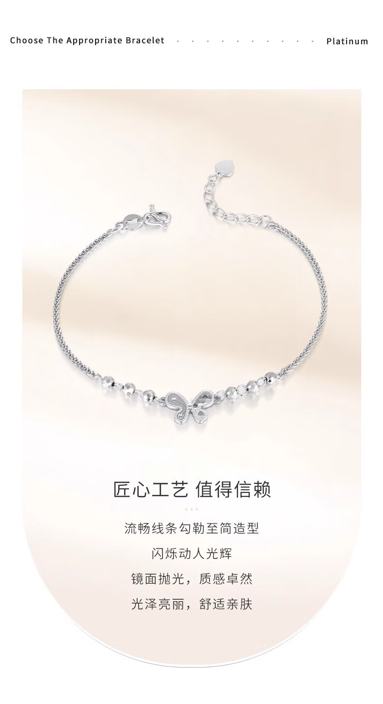 China Gold (CHINA GOLD) PT950 Platinum Sparkling Scales Smart Butterfly Bracelet Women's Valentine's Day Birthday Gift for Girlfriend and Wife Platinum Sparkling Scales Smart Butterfly Bracelet About 4.6g