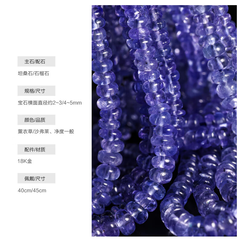 DL 1998 gemstone necklace orchid tanzanite beads for women 18K gold tsavorite garnet 2-3/4-5mm/tanzanite/tsavorite/18K gold 45cm