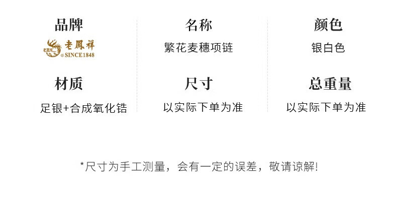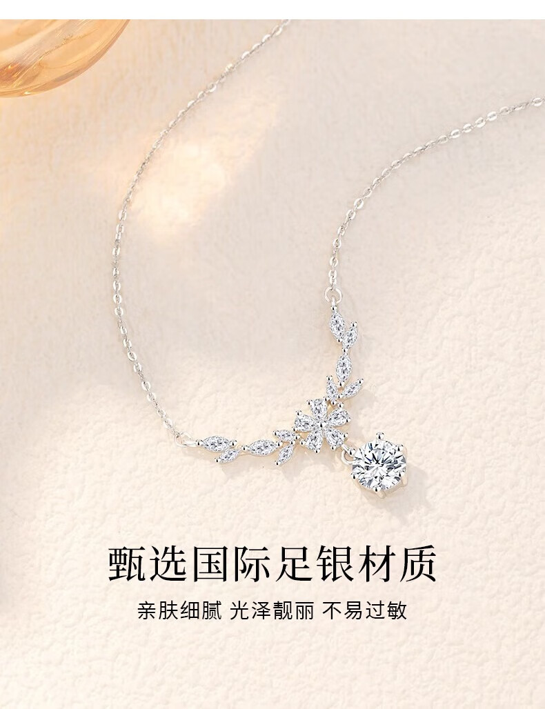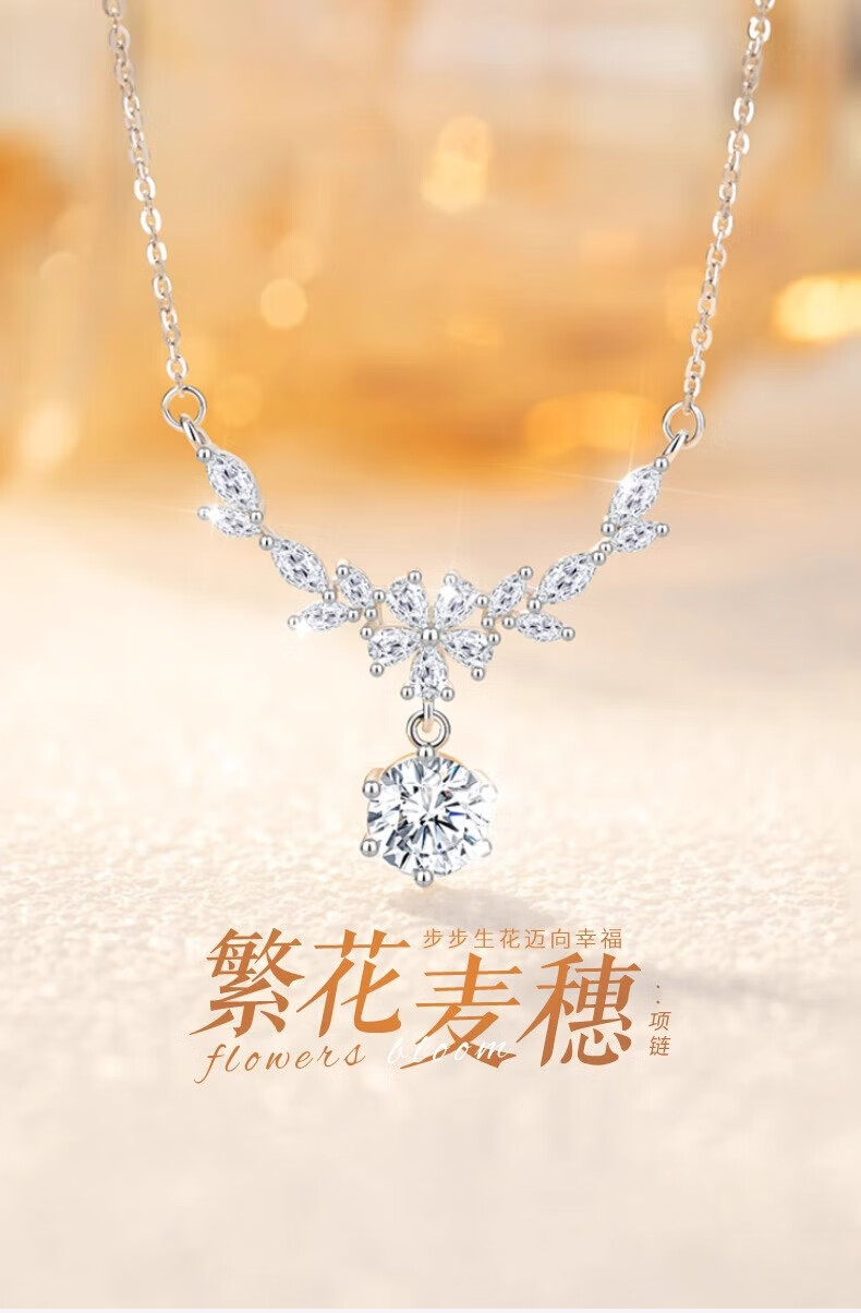 Lao Fengxiang 999 Pure Silver Necklace for Girls, Light Luxury and High-end Pendant Jewelry, Practical Birthday Gift for Girlfriends, JD.com Ships from Bakura *Same/Next Day Delivery - Pure Silver Flower Wheat Ear Necklace