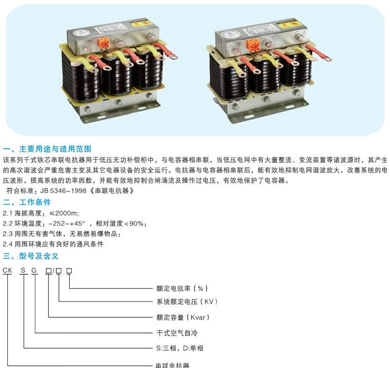Shanghai Viscon three-phase series reactor CKSG capacitor special harmonic suppression compensation filter direct sales CKSG16Kvar-0.48/7