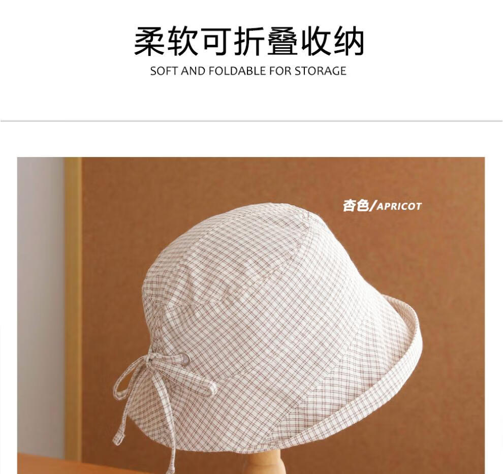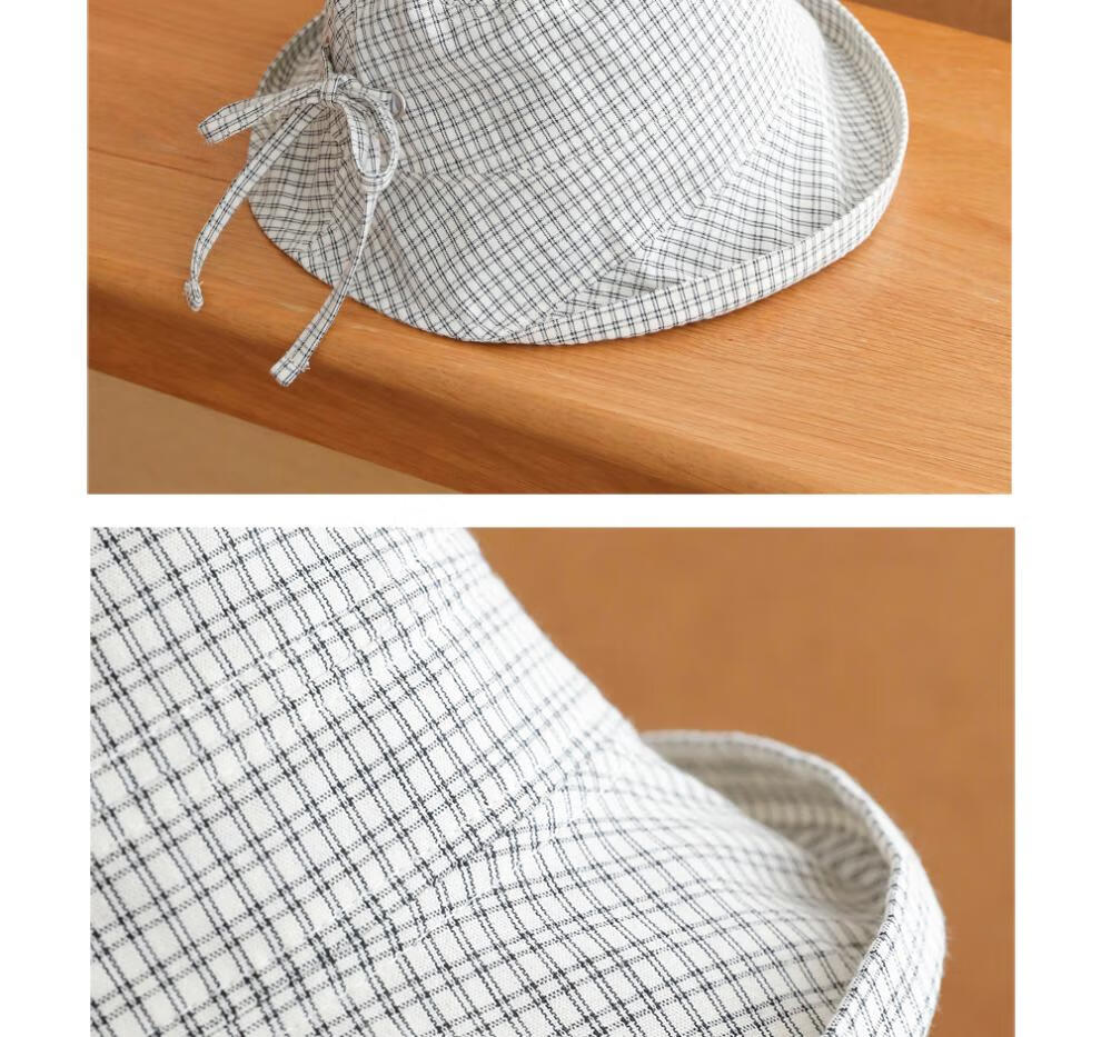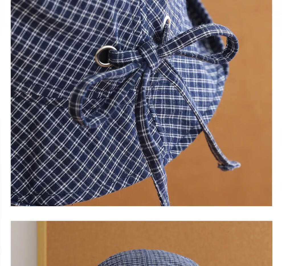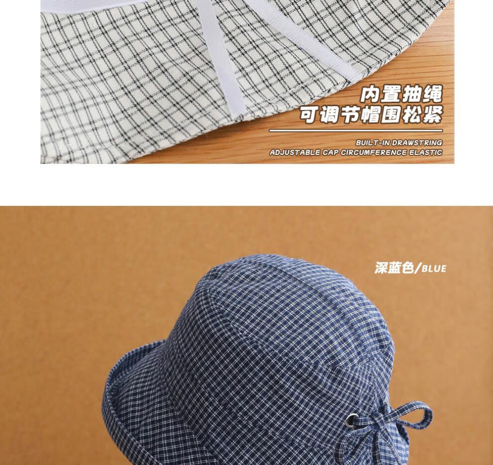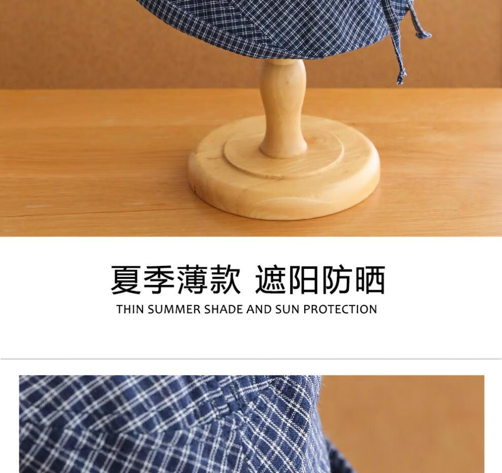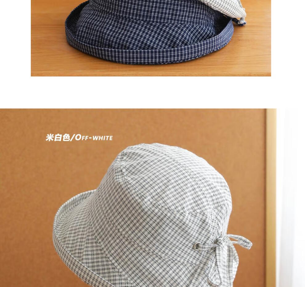 Woodpecker sun hat for women, Japanese plaid fisherman hat, summer thin breathable sunshade hat, sweet bow foldable style, dark blue, one size fits all, 55-59cm adjustable