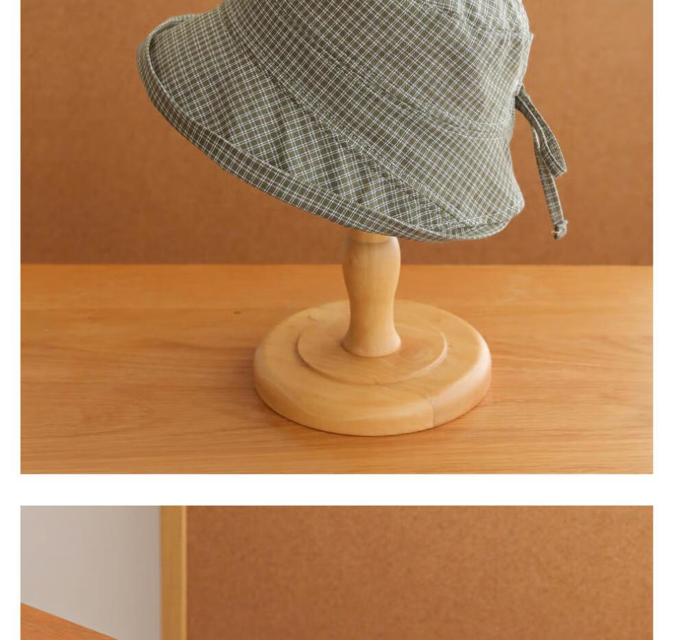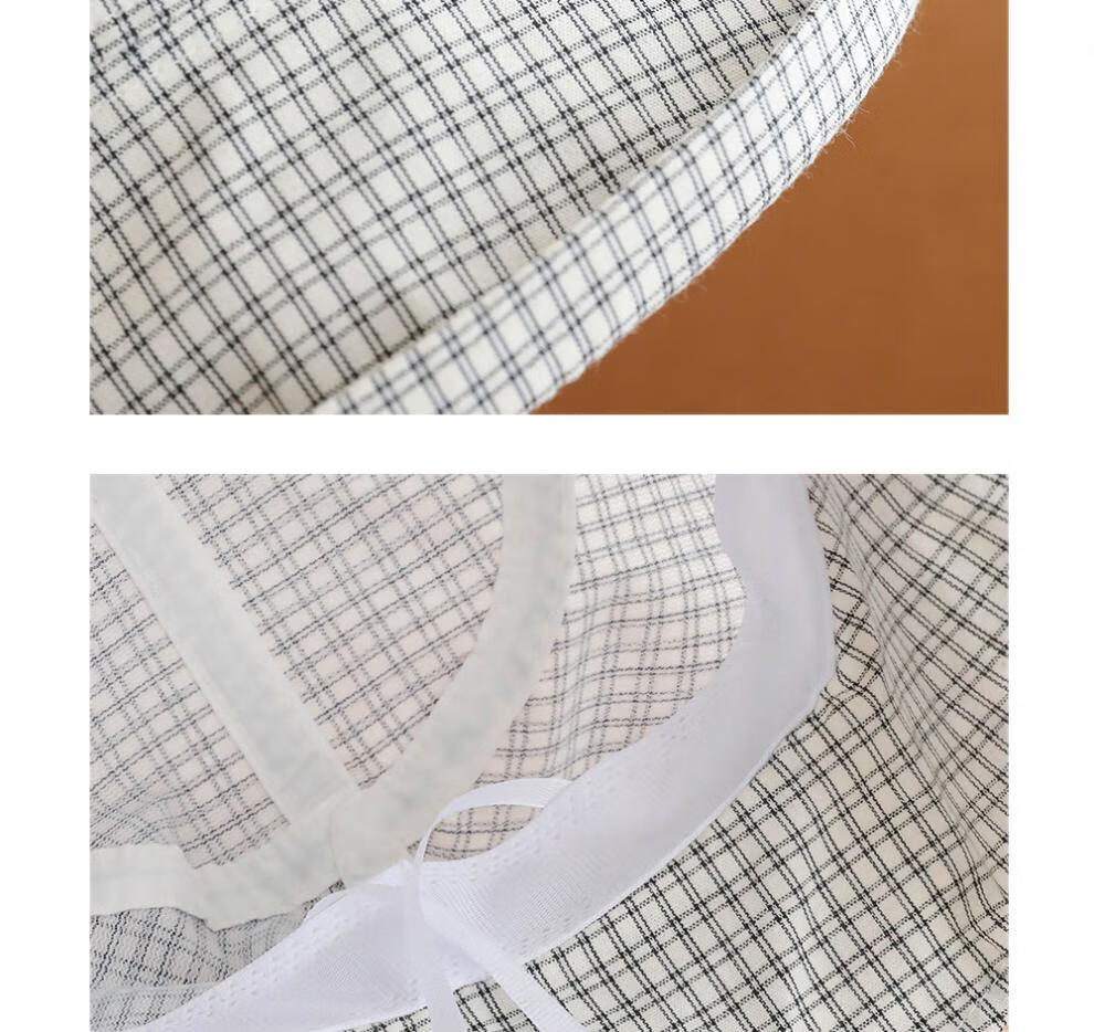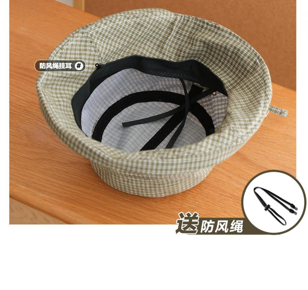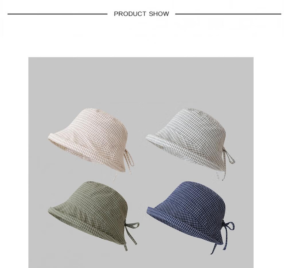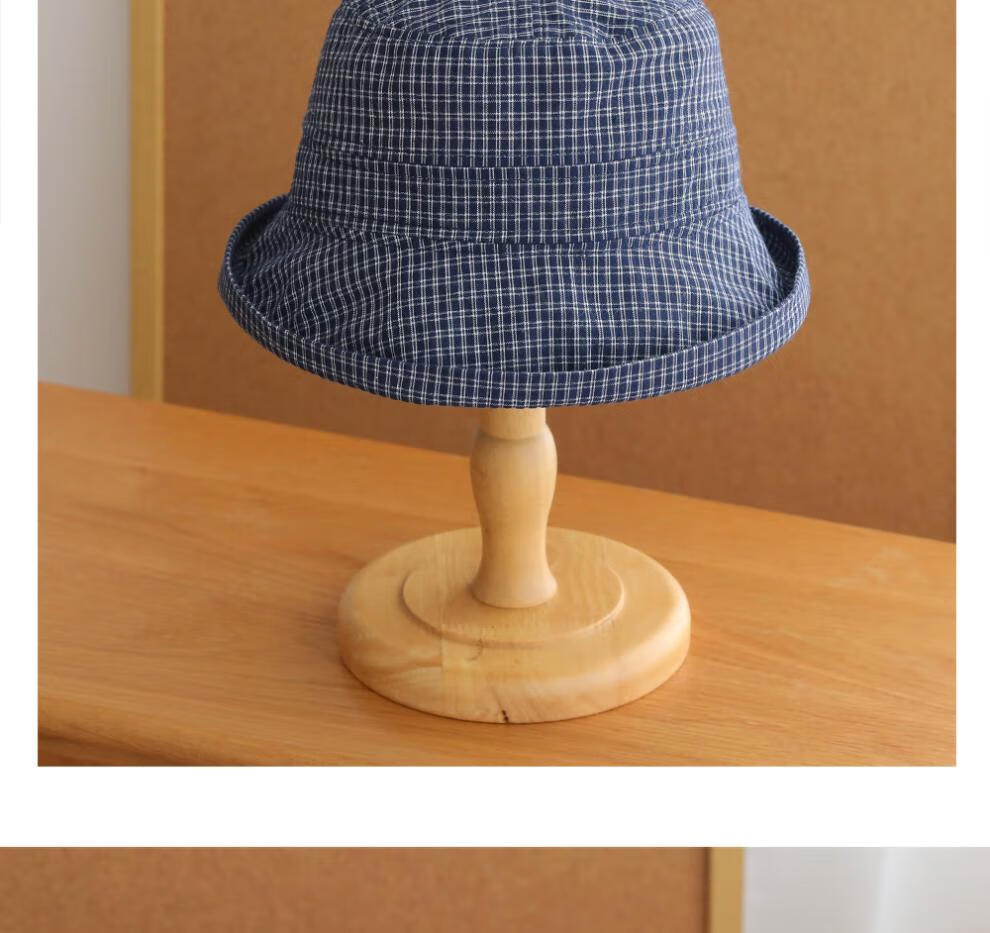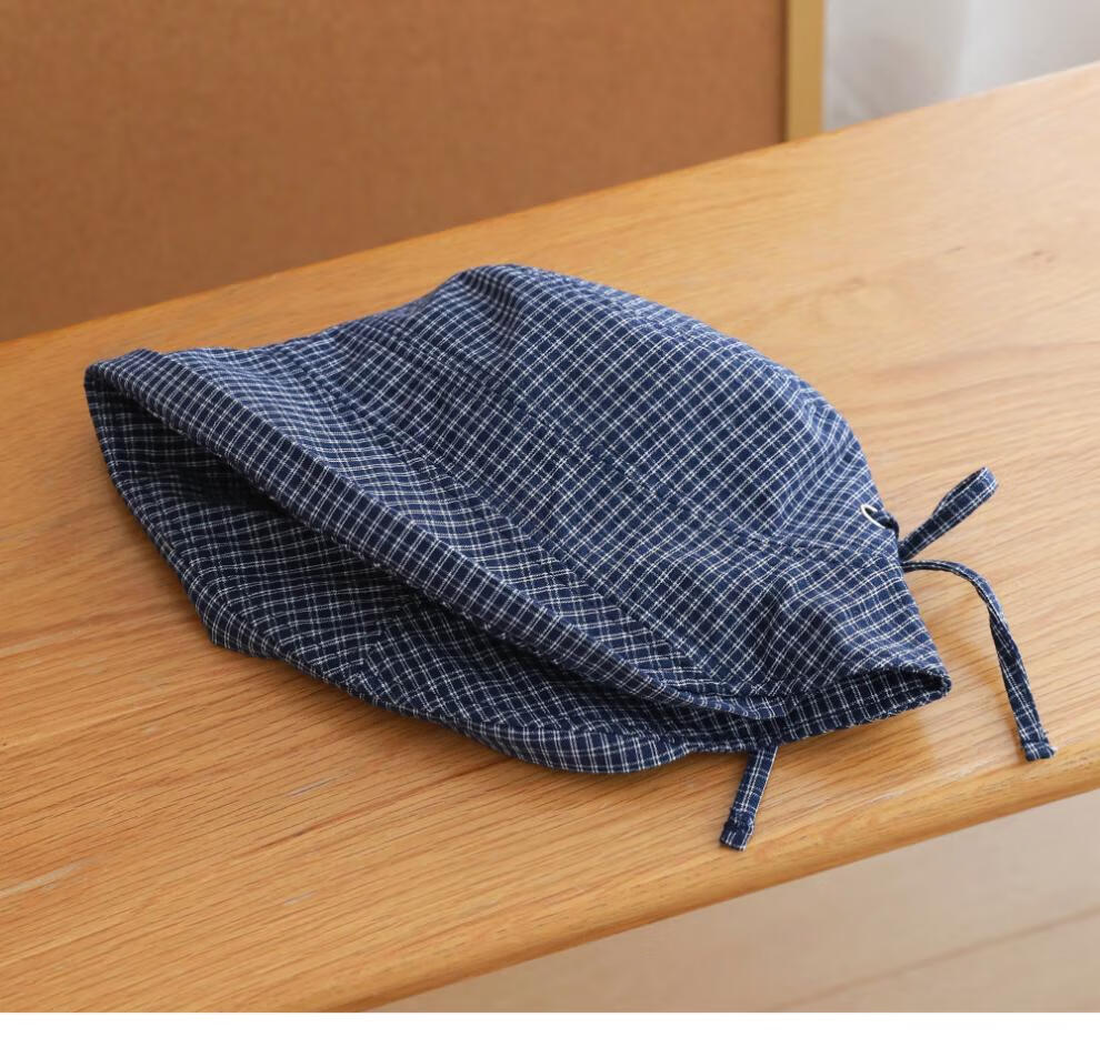 Woodpecker sun hat for women, Japanese plaid fisherman hat, summer thin breathable sunshade hat, sweet bow foldable style, dark blue, one size fits all, 55-59cm adjustable