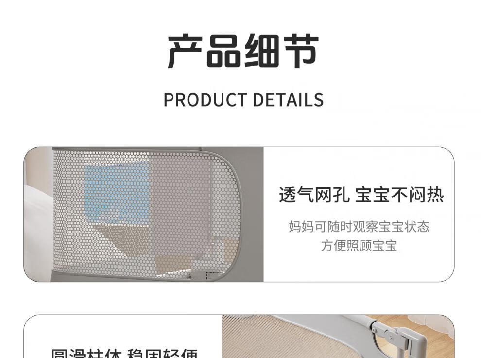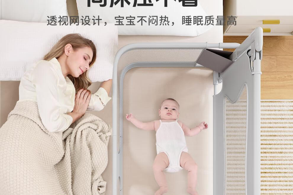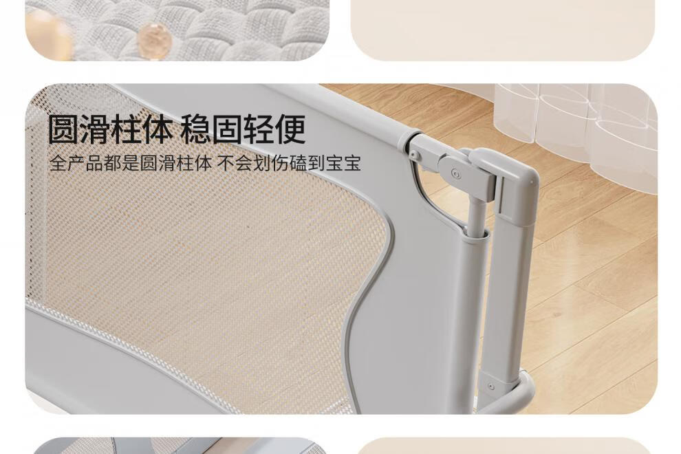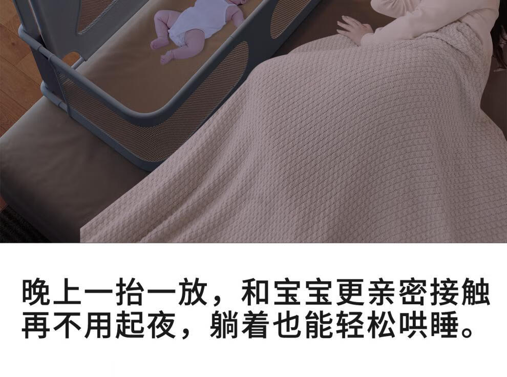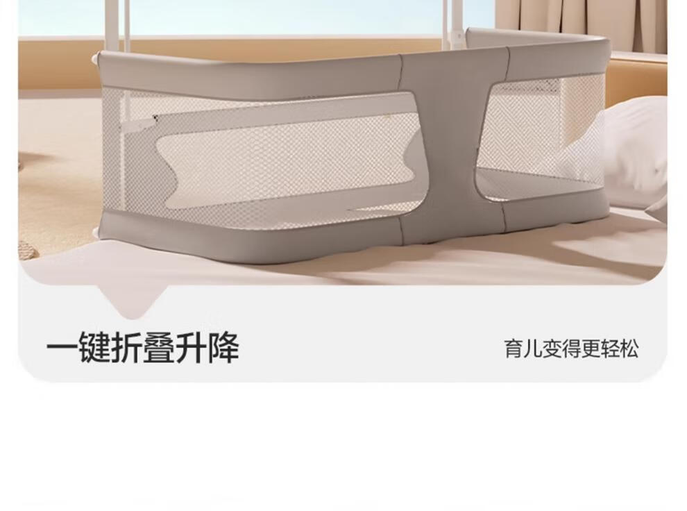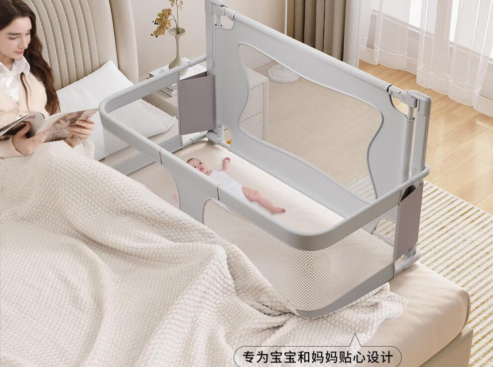 Small apartment anti-pressure crib bed-in-bed newborn baby playpen guardrail folding T removable baby bed baby anti-pressure playpen bed-Mihui gray (CD-3)