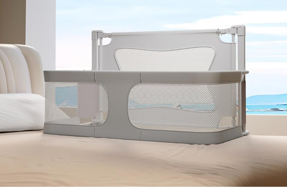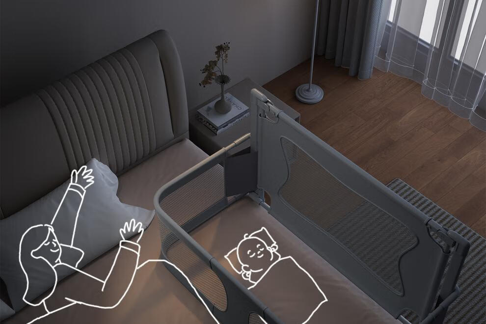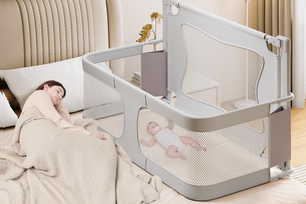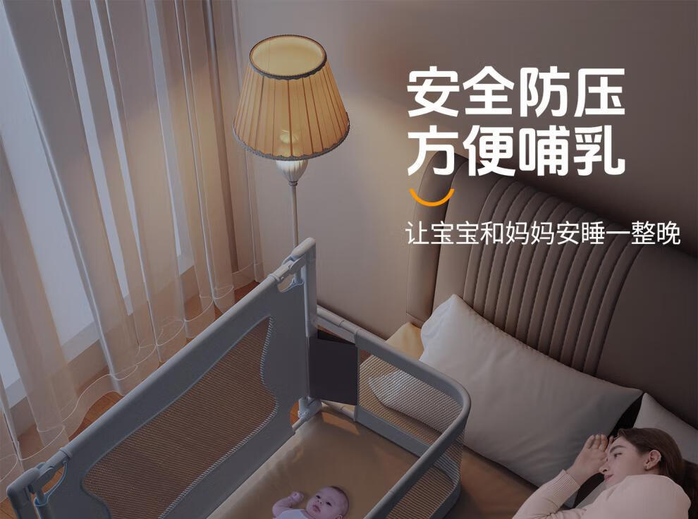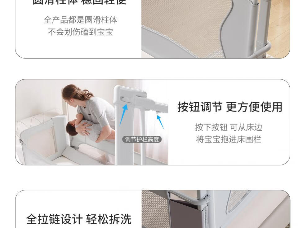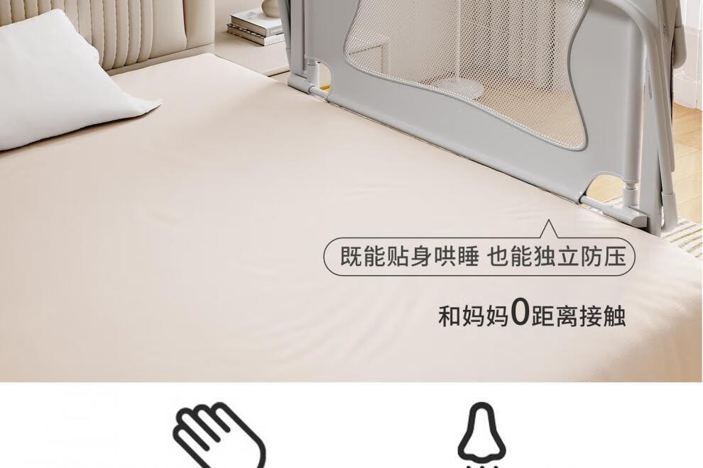Small apartment anti-pressure crib bed-in-bed newborn baby playpen guardrail folding T removable baby bed baby anti-pressure playpen bed-Mihui gray (CD-3)