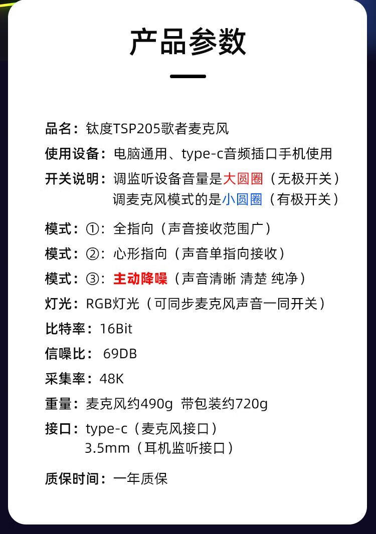 Taidu TSP205 desktop microphone computer anchor live broadcast microphone special noise reduction conference recording voice e-sports game USB condenser microphone desktop laptop karaoke online class Type-c version 205 computer mobile phone universal + monitoring headphones