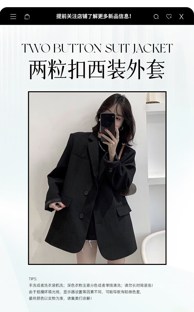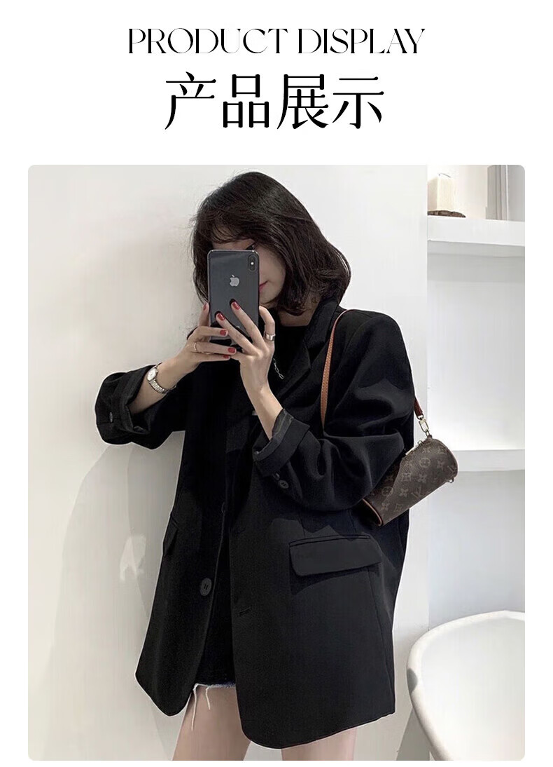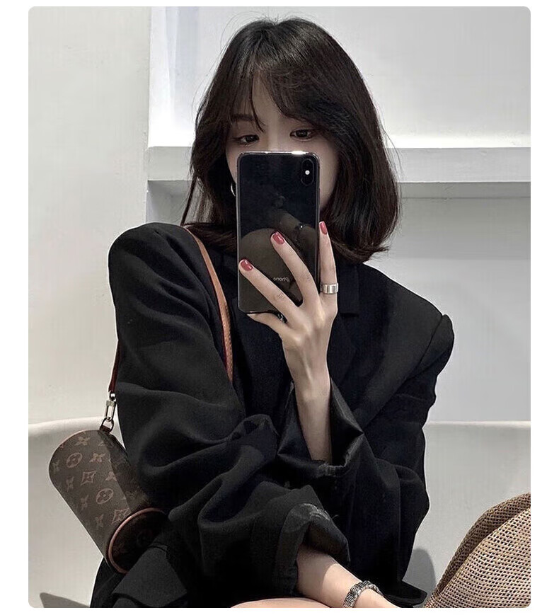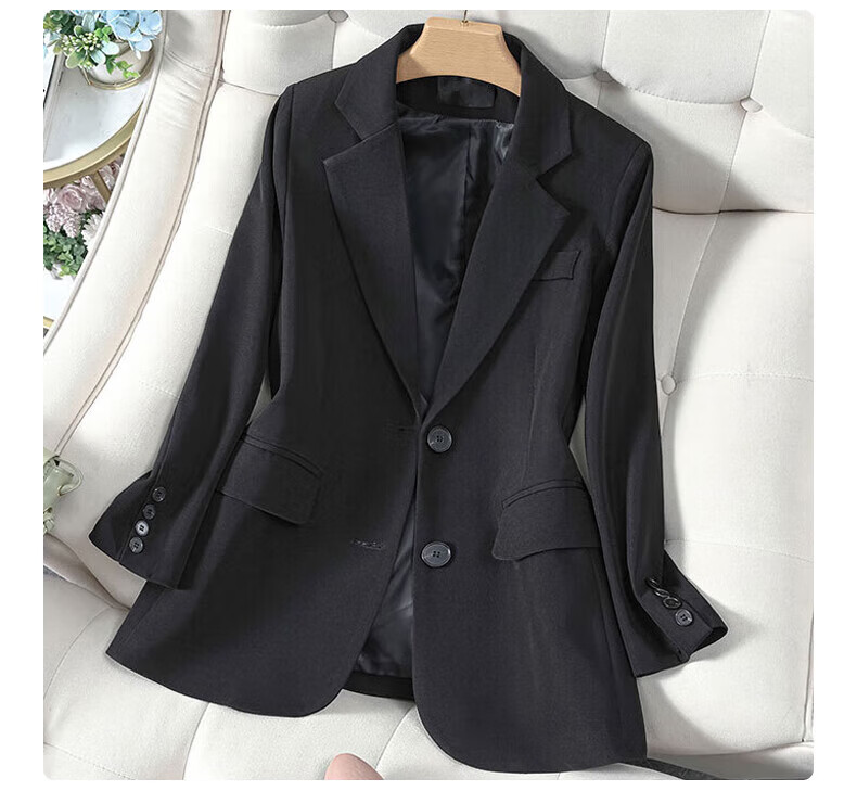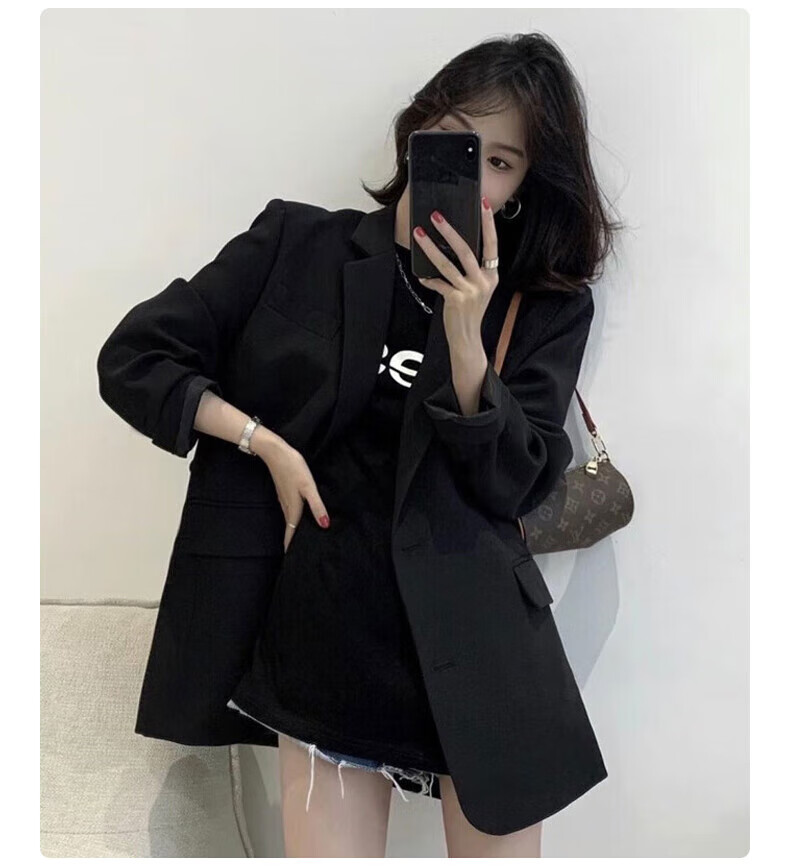 Yu Yaman Suit Women's Suit Jacket Korean Style Loose Spring and Autumn Small Man Interview and Defense Commuting Top Long Sleeve Black L Size