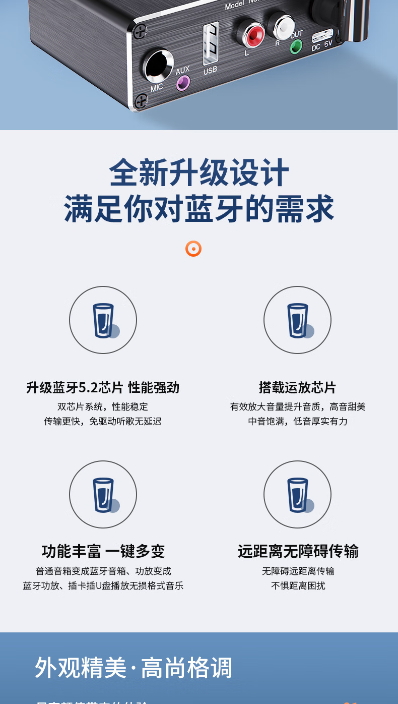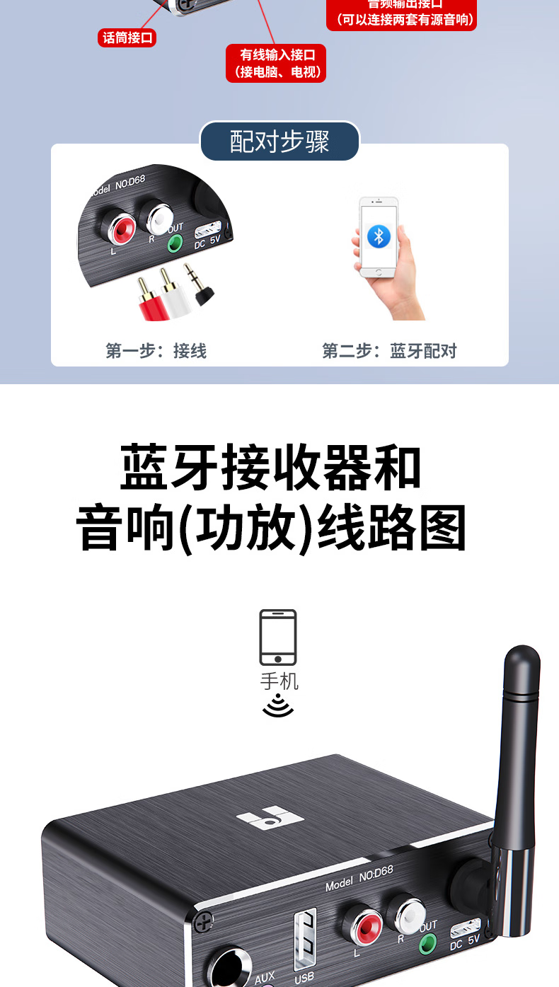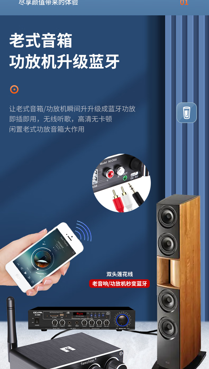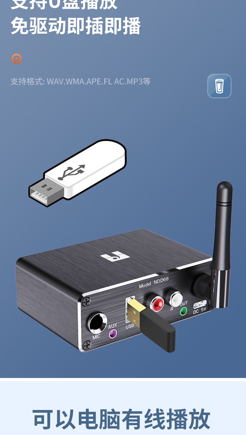 Fansheng FAMSHION lossless Bluetooth receiver player adapter 5.2 player U disk microphone amplifier audio speaker conversion standard + one to one + two to two lines