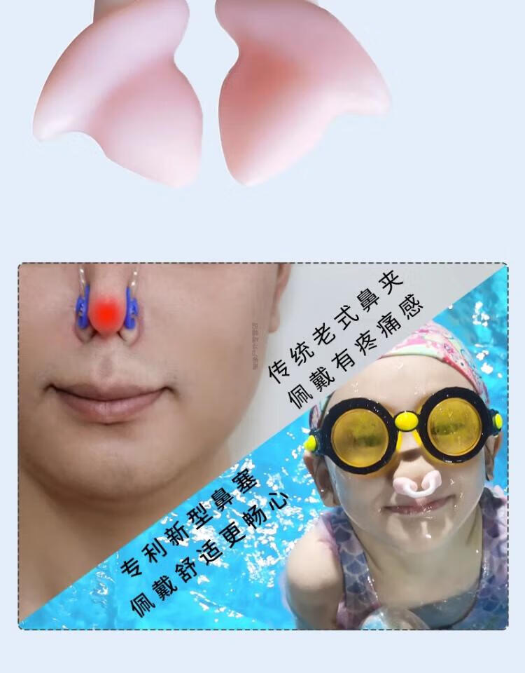OEMG swimming nose clip silicone earplugs anti-choking nasal congestion diving artifact children's set baby bath supplies new small (S) sky blue