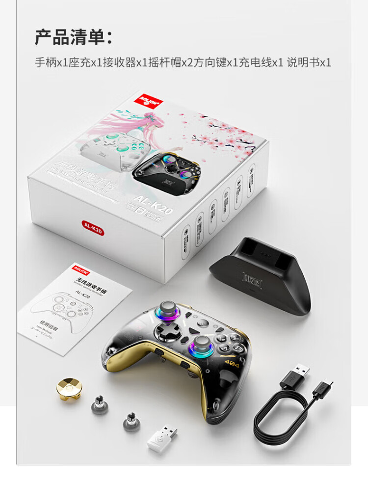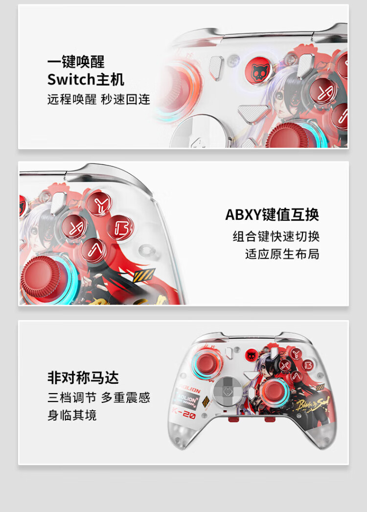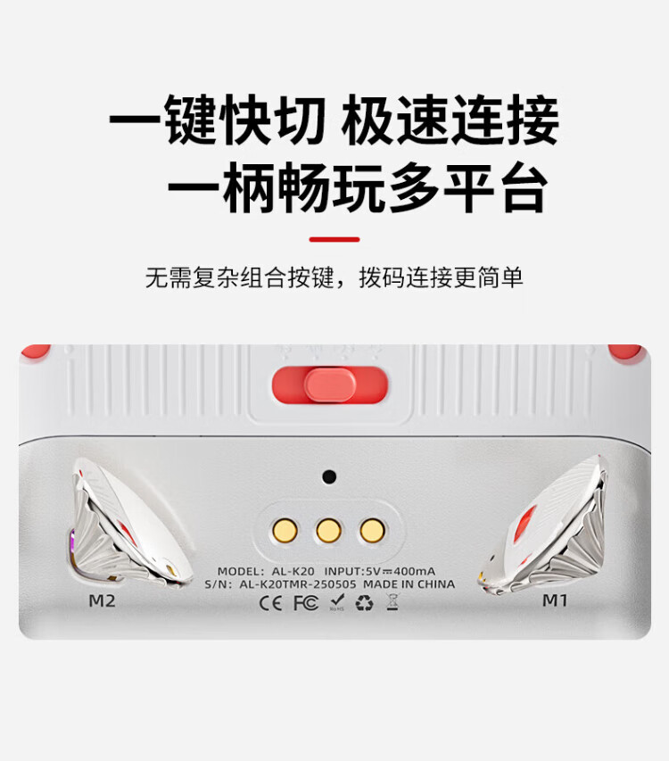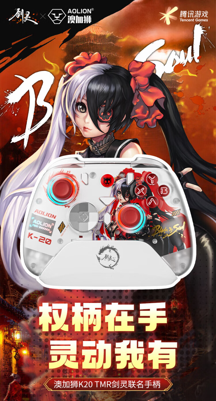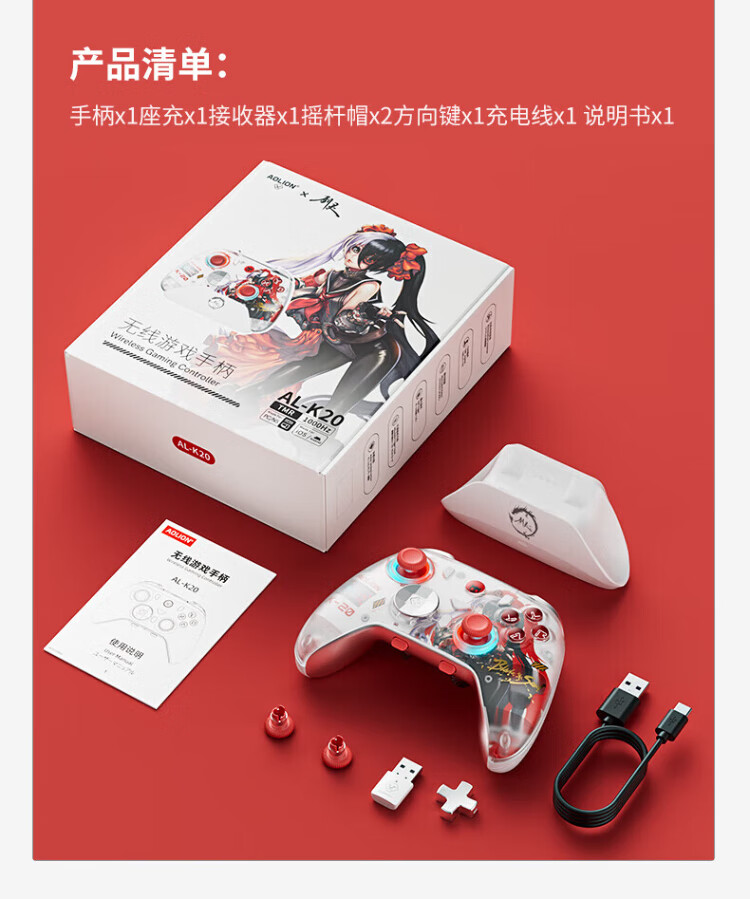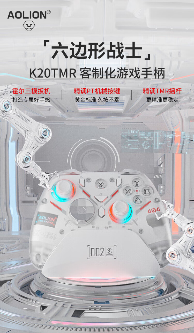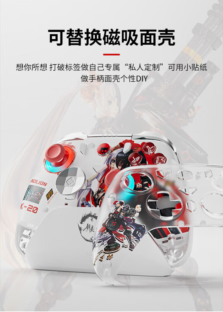 Aolion K20 wireless game controller DW12C supports Steam/switch2 mobile phone Ming Mo Yuan Xu Zhi Yu game controller K20 TMR version game controller EVA white red Aolion