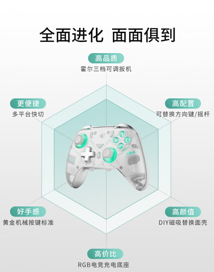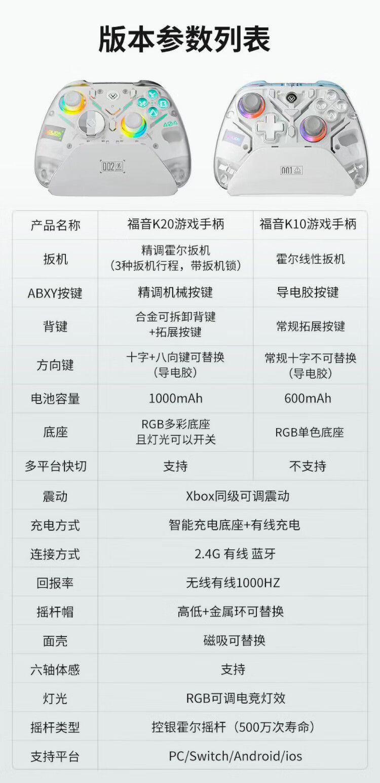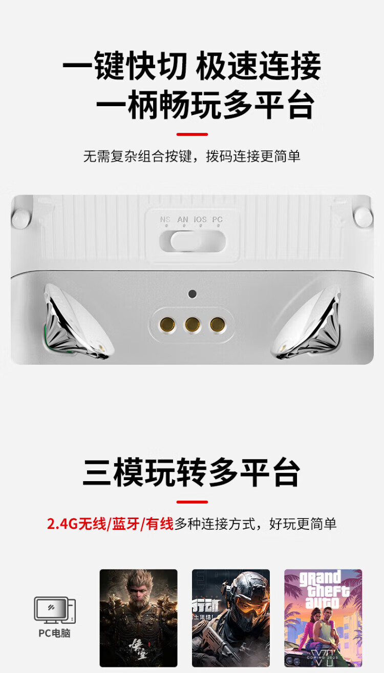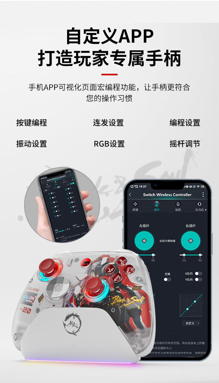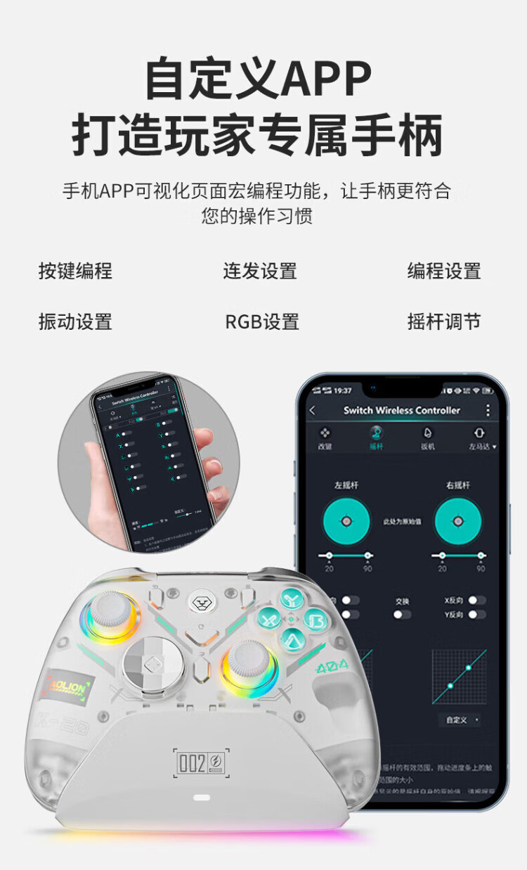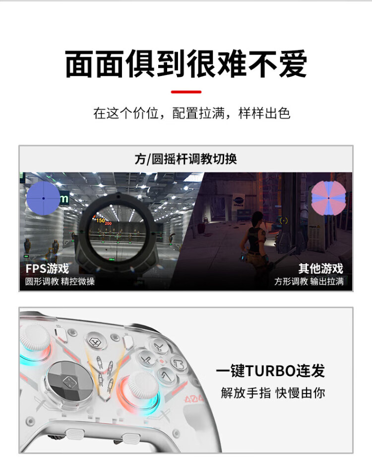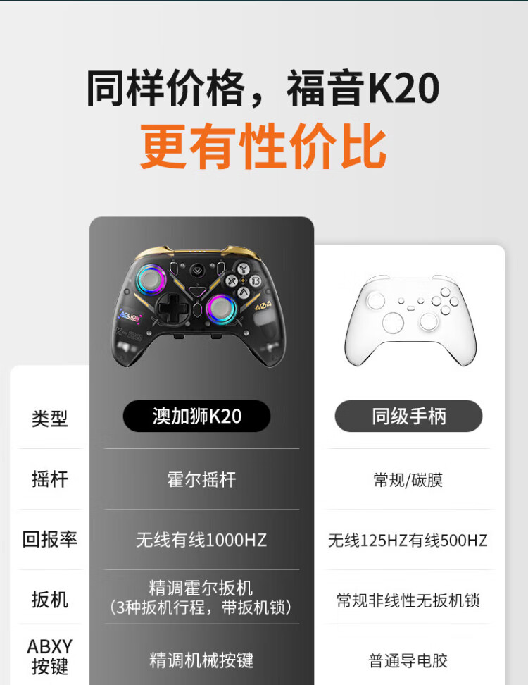 Aolion K20 wireless game controller DW12C supports Steam/switch2 mobile phone Ming Mo Yuan Xu Zhi Yu game controller K20 TMR version game controller EVA white red Aolion