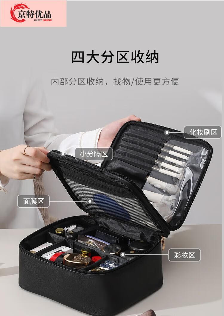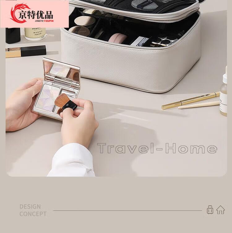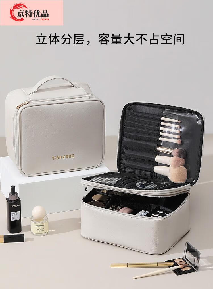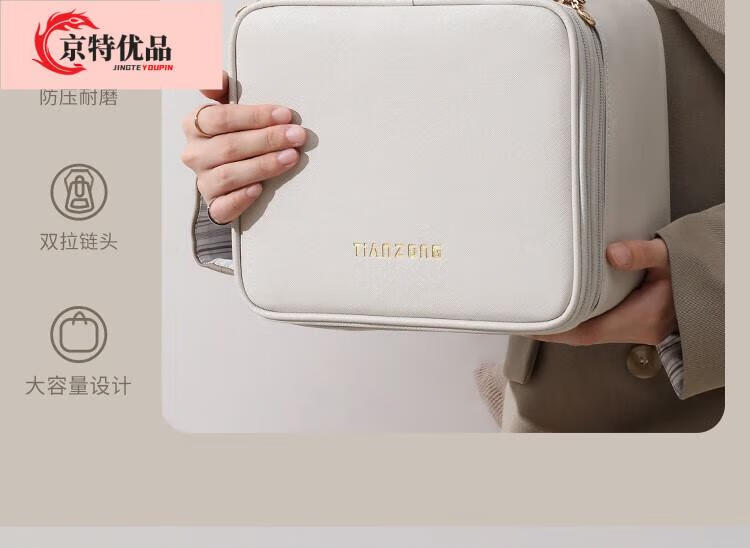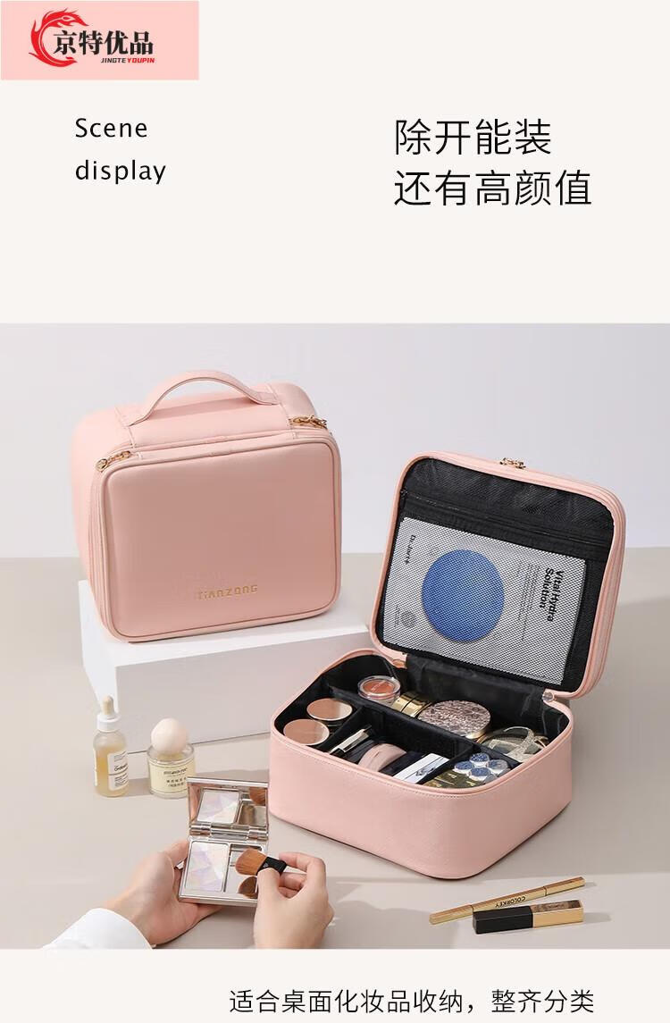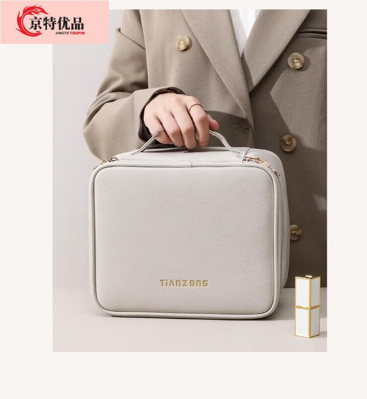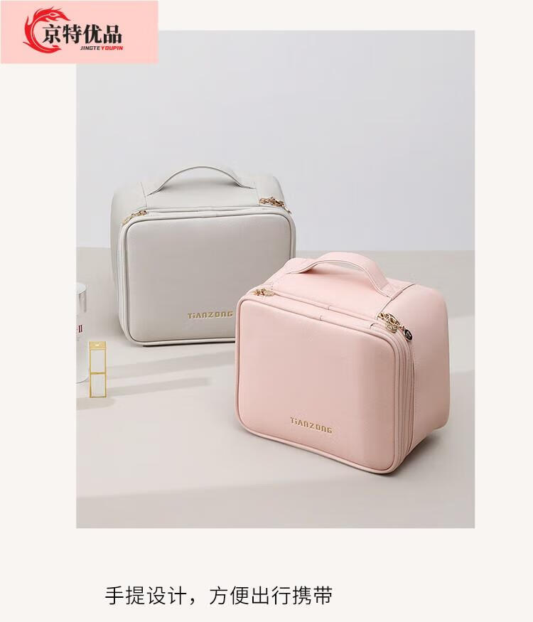 OIMG cosmetic bag portable large capacity 2023 travel cosmetic storage bag carry-on suitcase toiletry bag off-white pink / size 24*20*13cm
