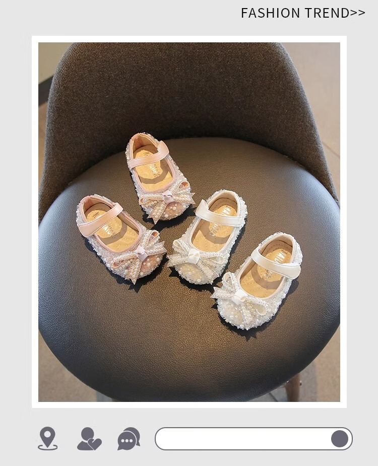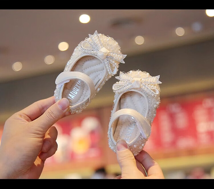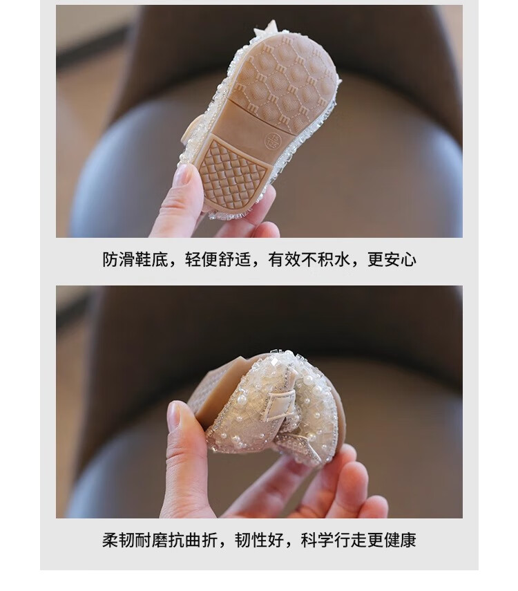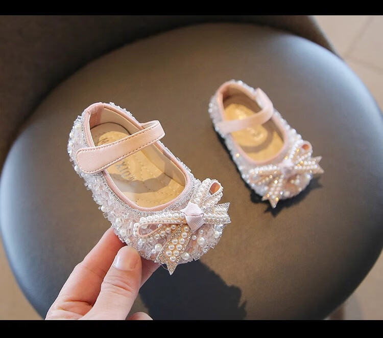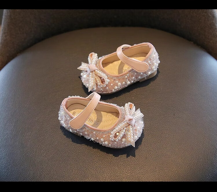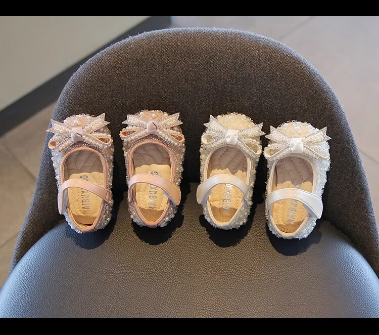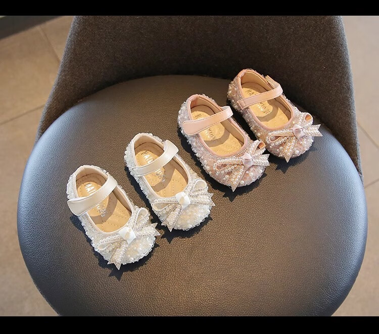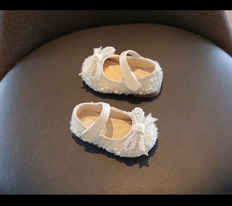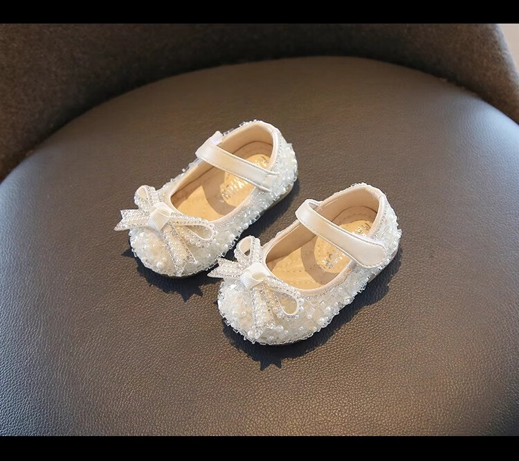 Baby girl toddler shoes, leather shoes, spring, summer, week and birthday crystal shoes, soft-soled children's sweet girls' fashionable princess shoes, beige, size 15, inner length 12 cm