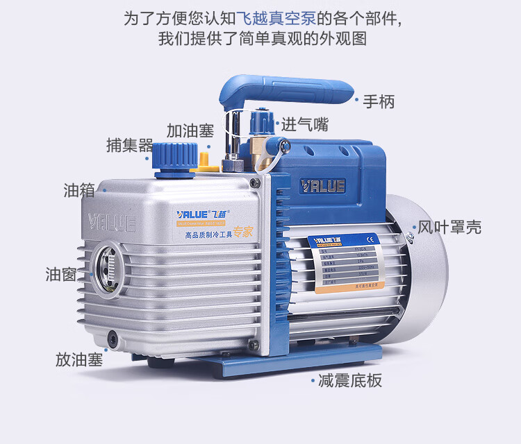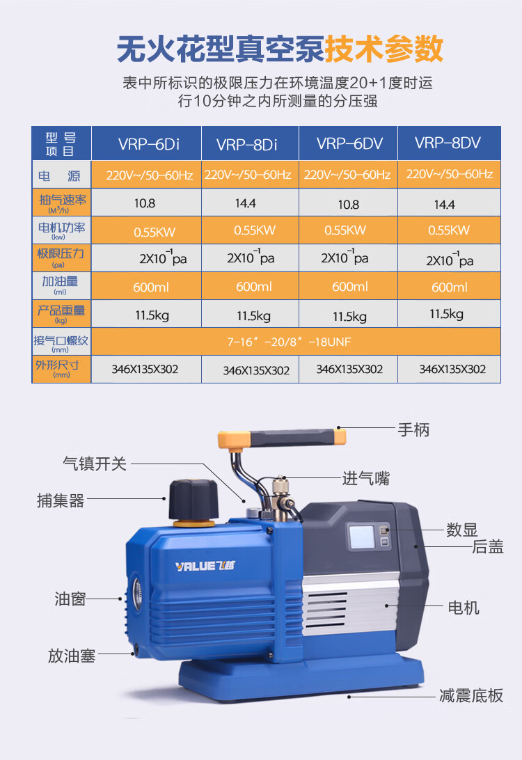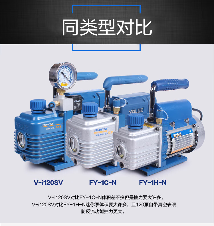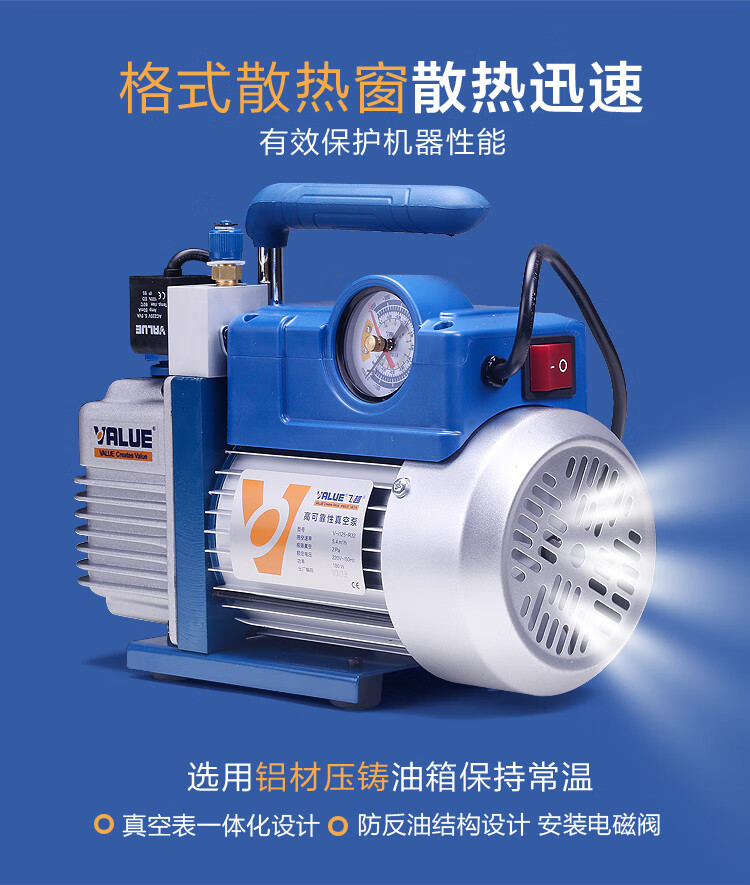 VALUE fly over vacuum pump 1/2/3/4 liter small exhaust air conditioner refrigerator repair exhaust vacuum rotary vane pump pressure screen V-I280SV anti-reflux (dual-stage 4 liters with meter)