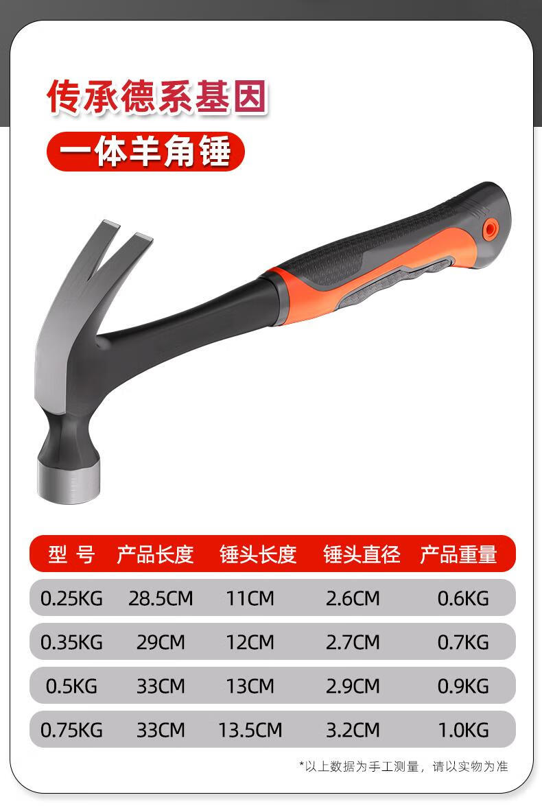 Delixi's same style mini claw hammer, hammer, multi-functional nail hammer, woodworking hammer, household tool, 250G round head integrated claw hammer