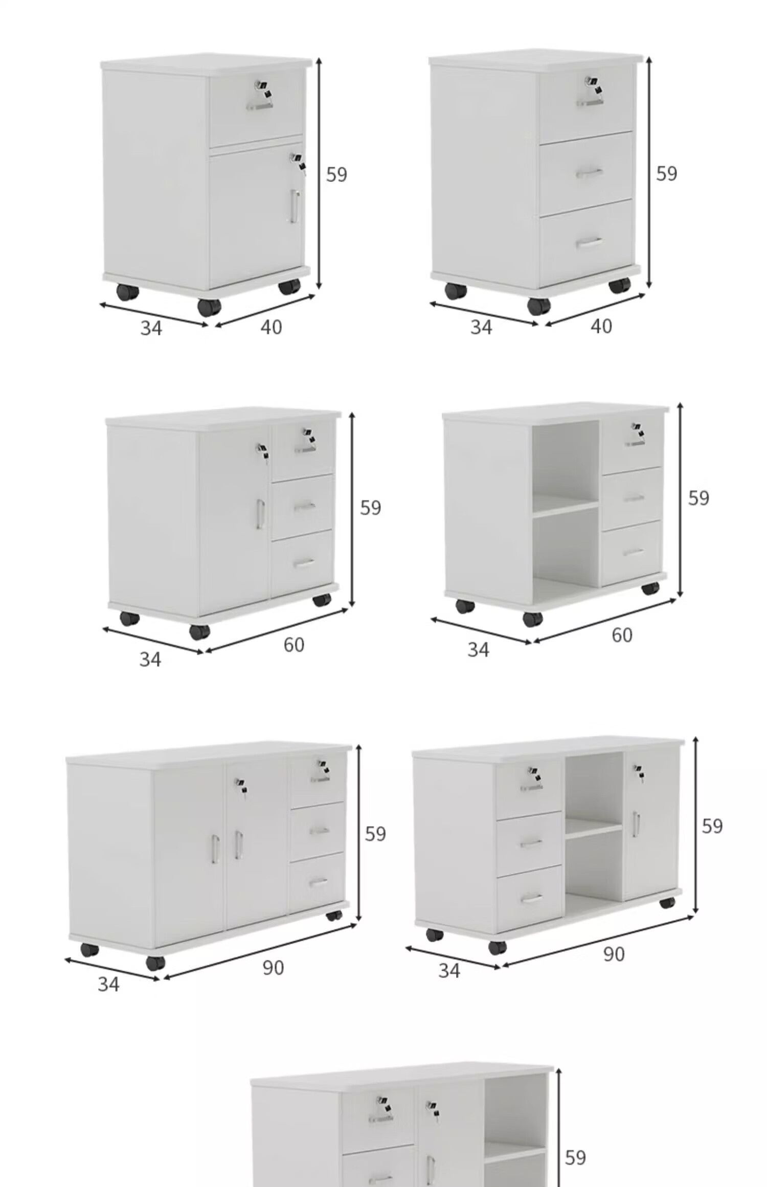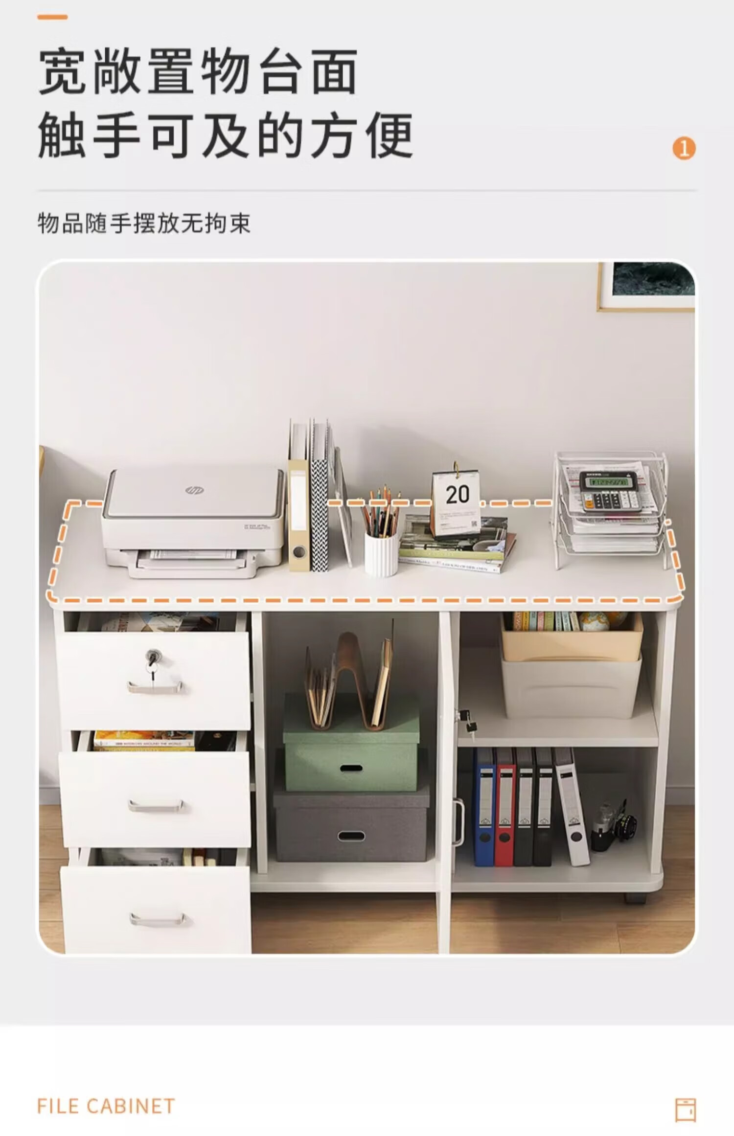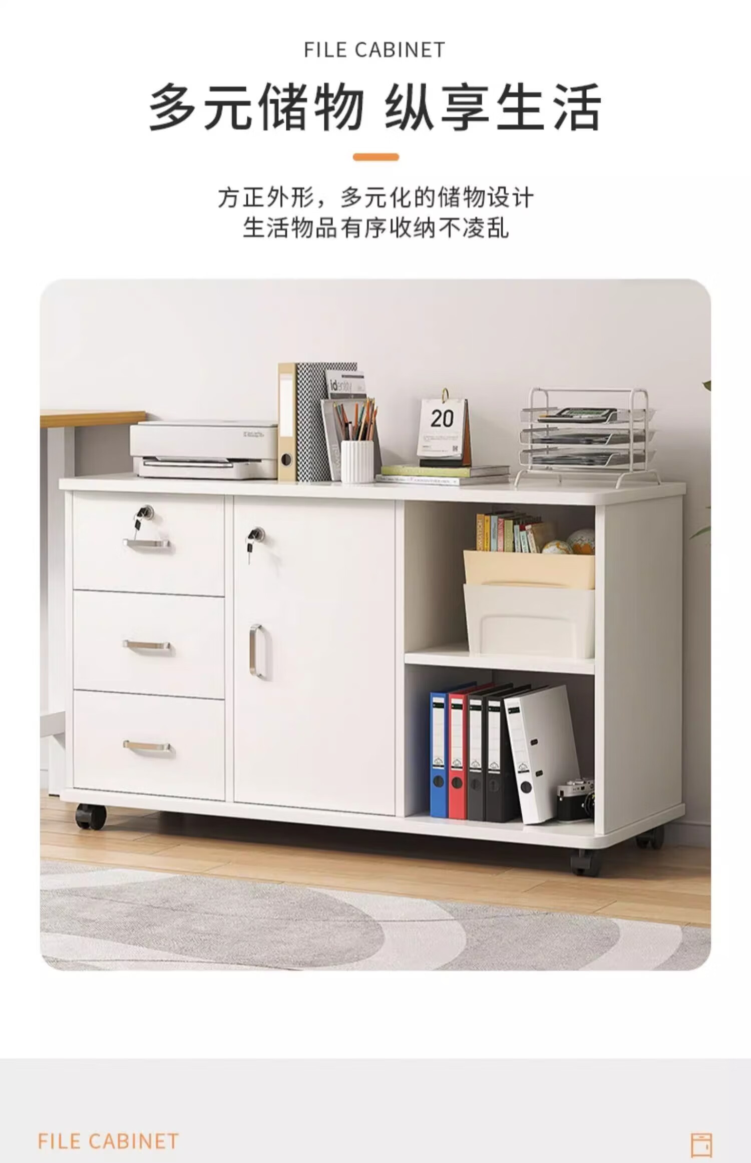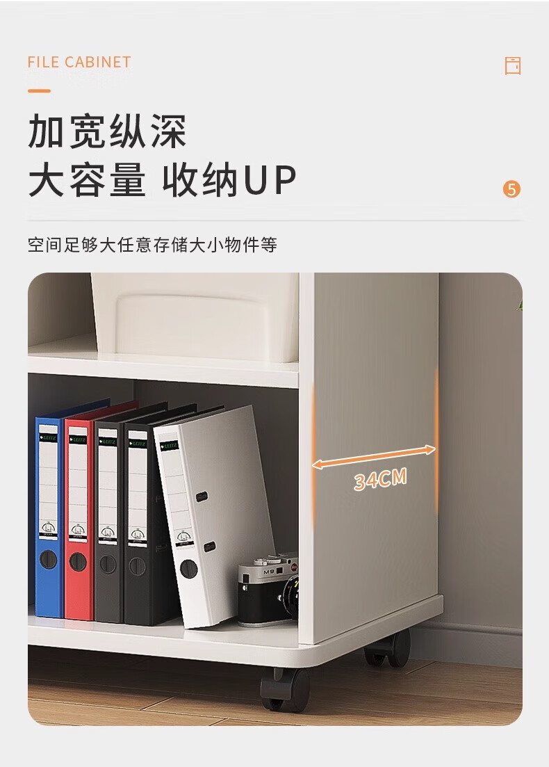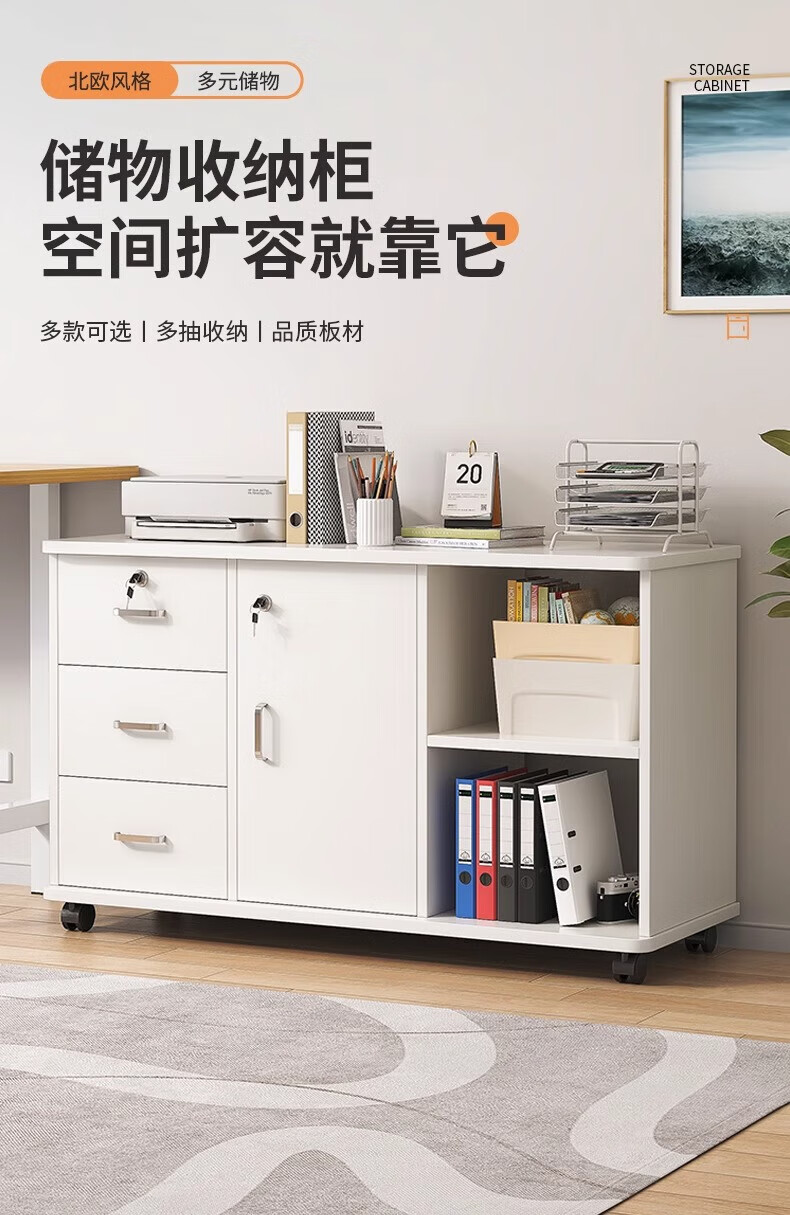 Anluosen filing cabinet office wooden lockable small cabinet mobile storage cabinet drawer cabinet with wheels under the table storage cabinet one drawer and one door warm white