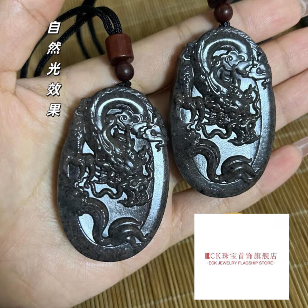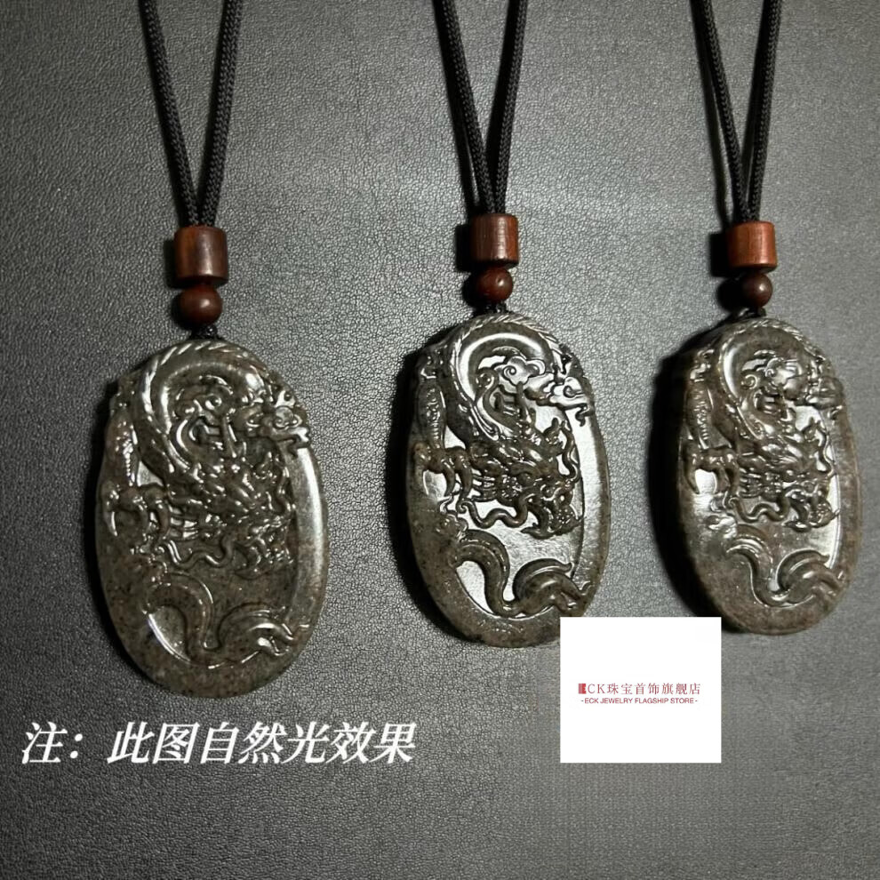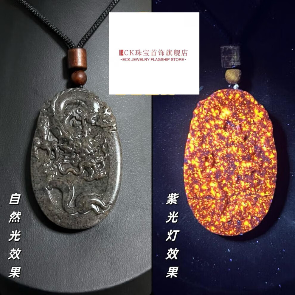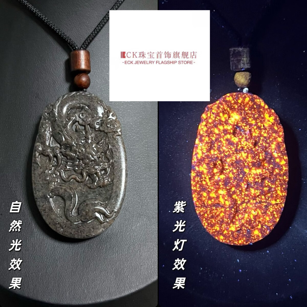 ECK Xinjiang Natural Flame Stone Necklace Pendant Dragon Brand as a Gift Luminous Magic Meteorite Fire Spirit Stone Genuine Dragon Brand Pendant with Lanyard 35mm*55mm*10mm