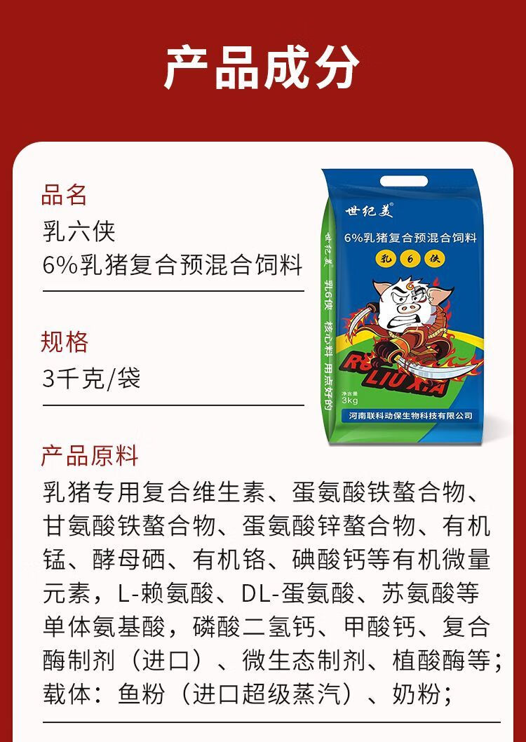 Piglet nursery feed 6% premix core feed for pigs, good palatability, fast weight gain, mixed feed additive for pigs, 6% core feed for suckling pigs, 1 bag, 6 Jin Jin is equal to 0.5 kg