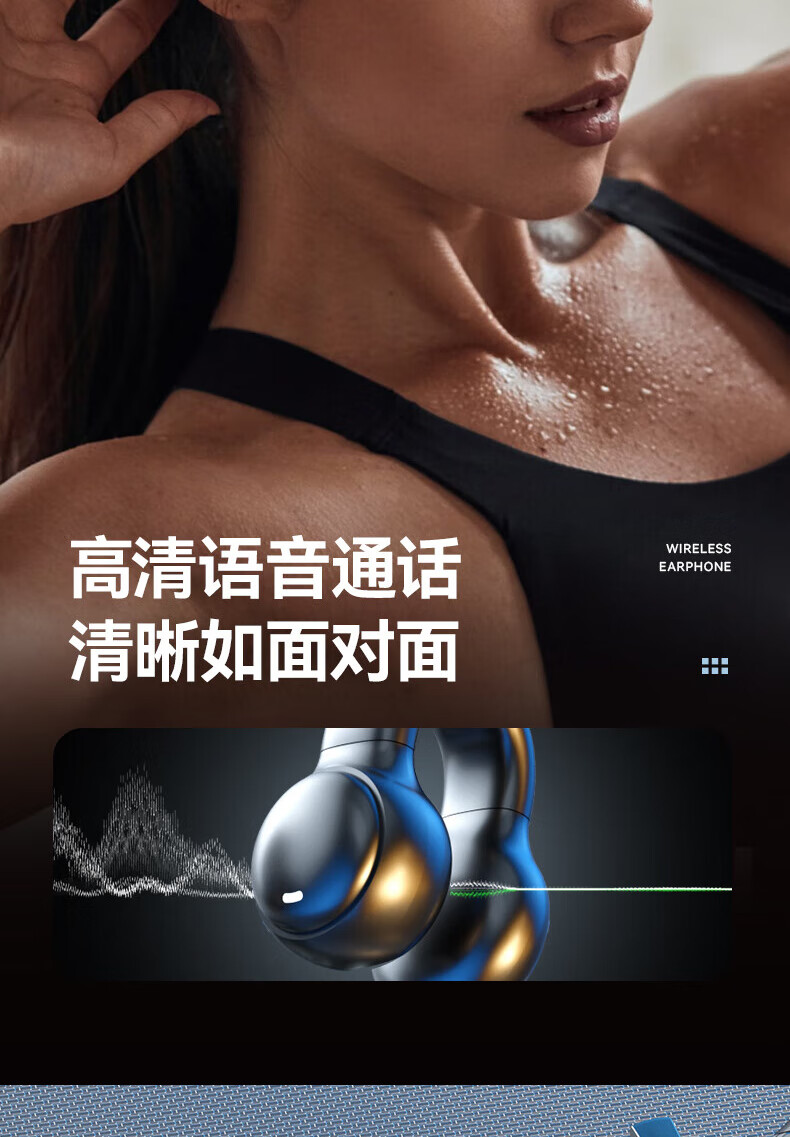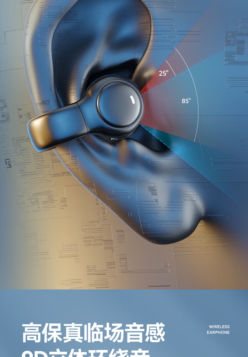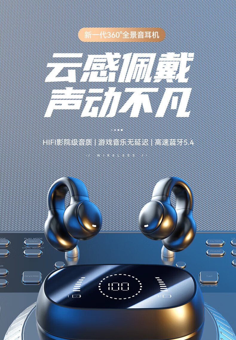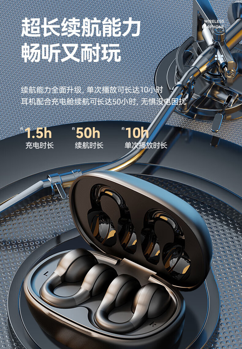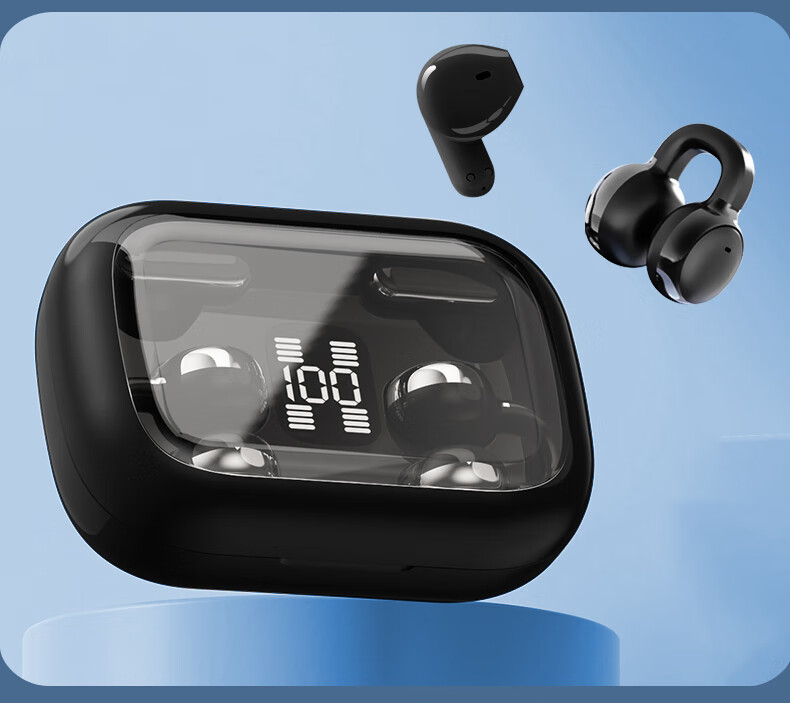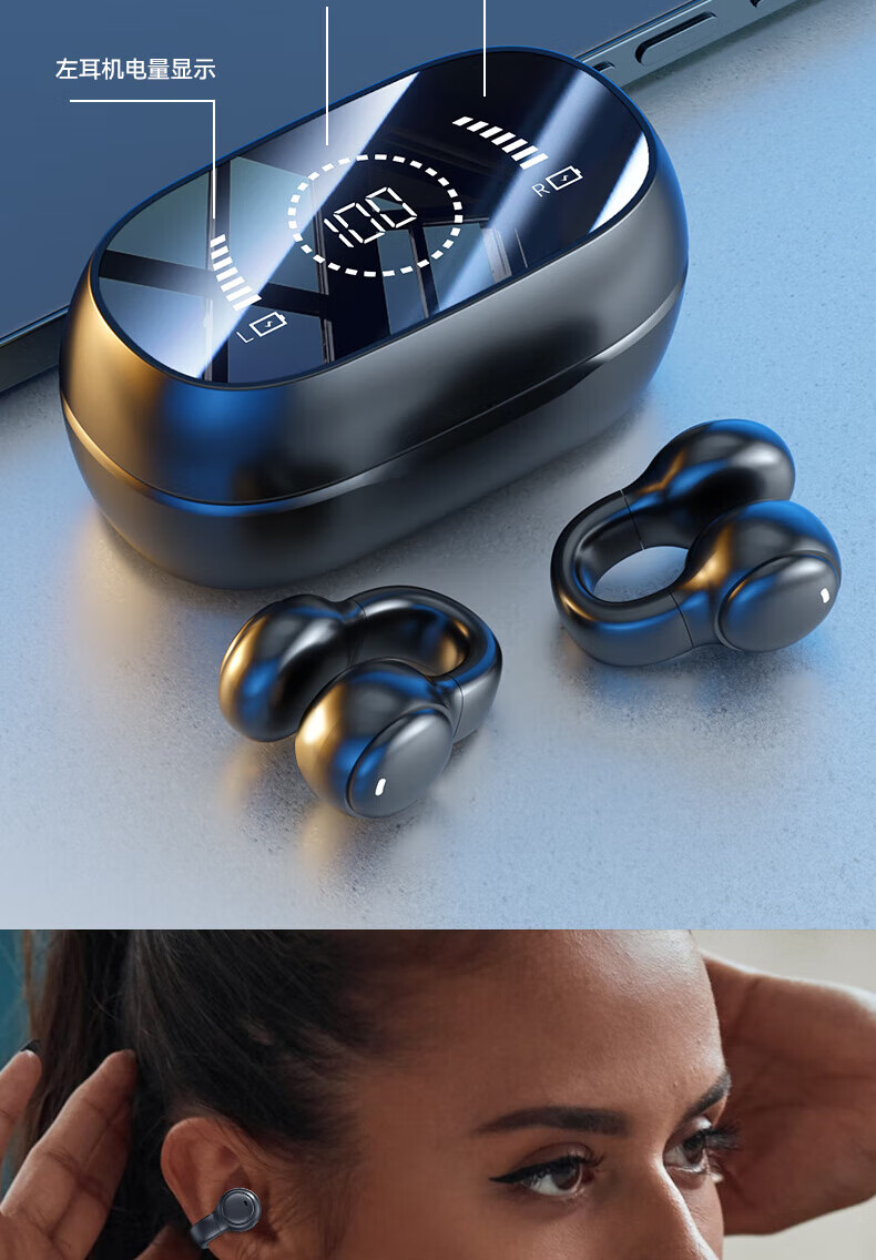 Jiabolan 2025 latest model丨HIFI panoramic sound bone conduction concept Bluetooth headset ear clip type non-in-ear ultra-long battery life large capacity sports running and cycling high sound quality top version丨black丨 panoramic sound upgraded battery life