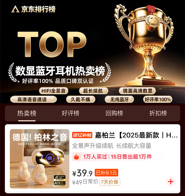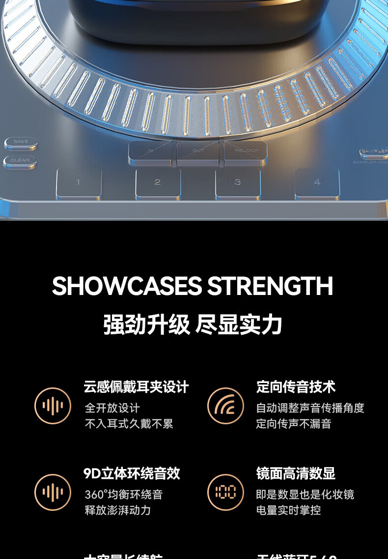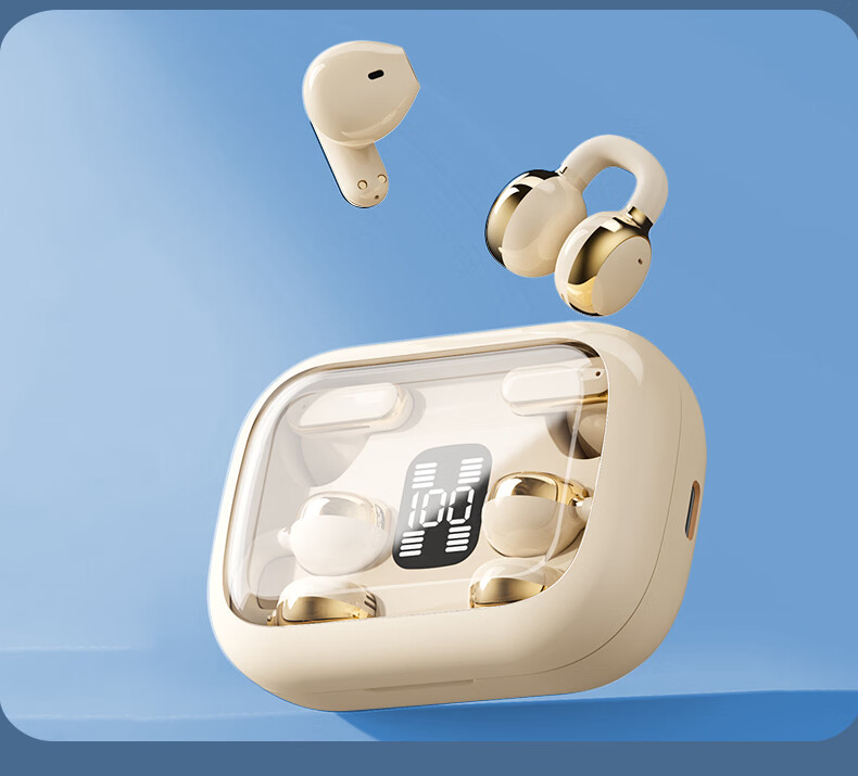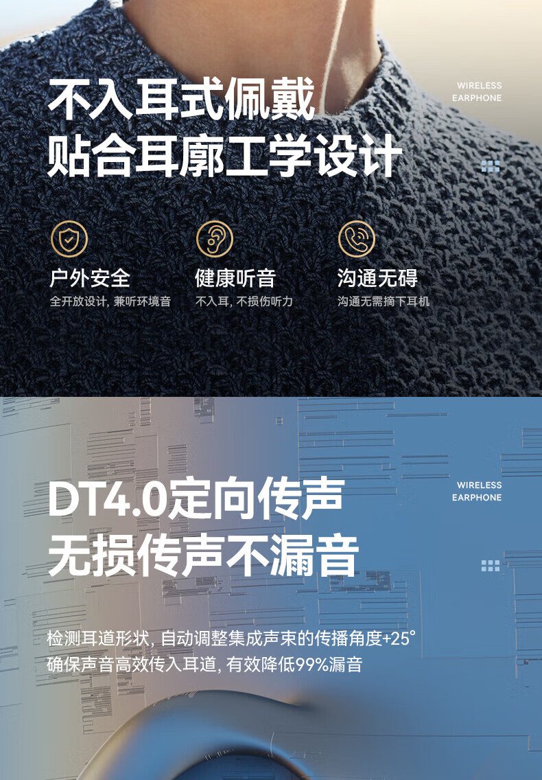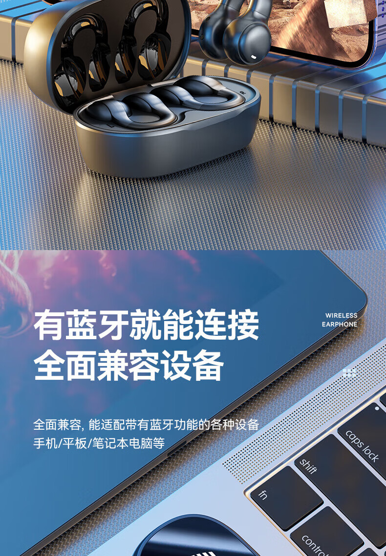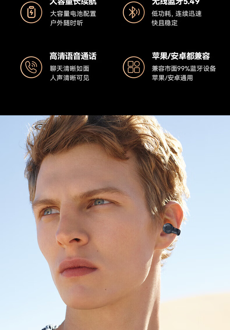 Jiabolan 2025 latest model丨HIFI panoramic sound bone conduction concept Bluetooth headset ear clip type non-in-ear ultra-long battery life large capacity sports running and cycling high sound quality top version丨black丨 panoramic sound upgraded battery life