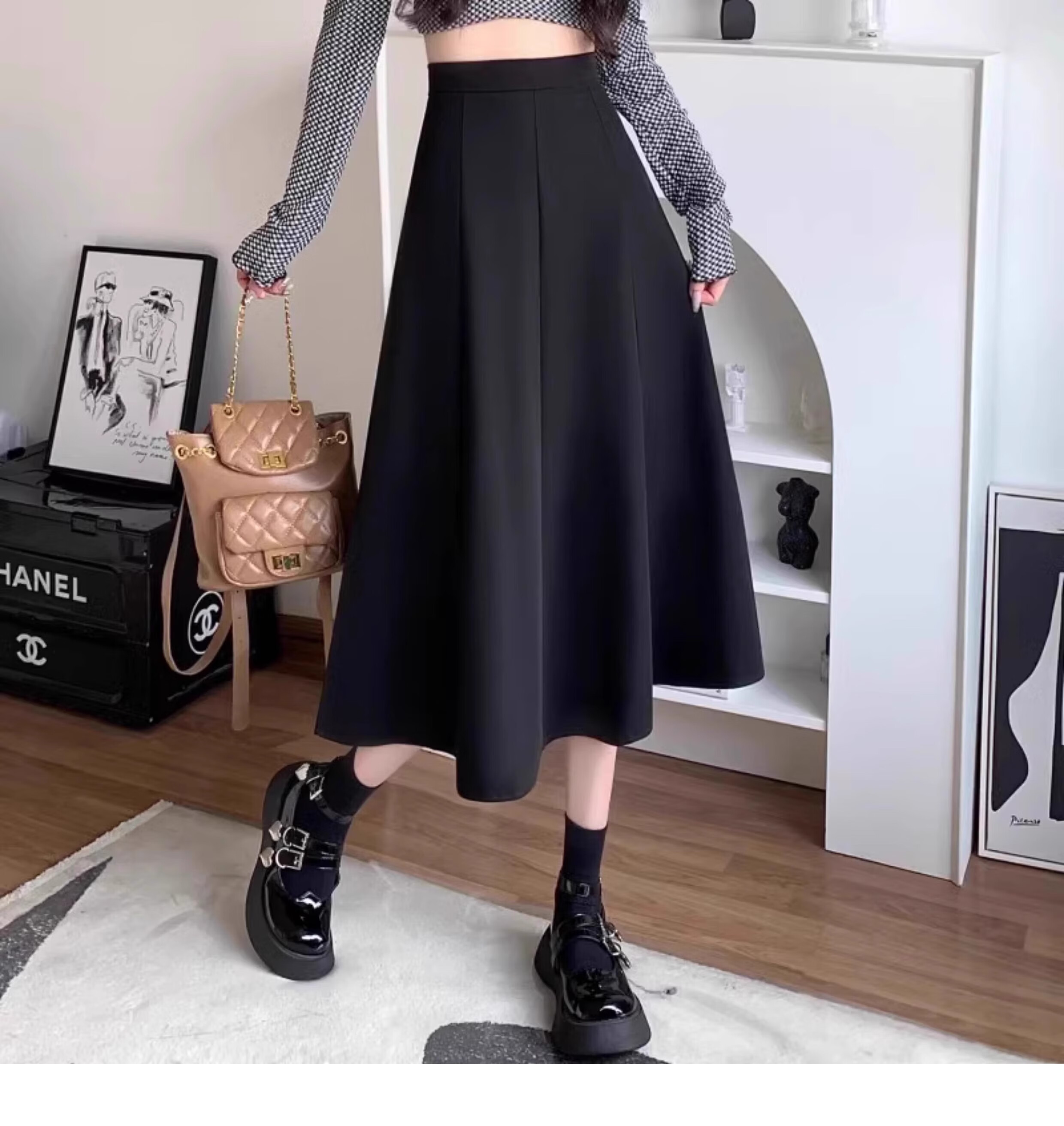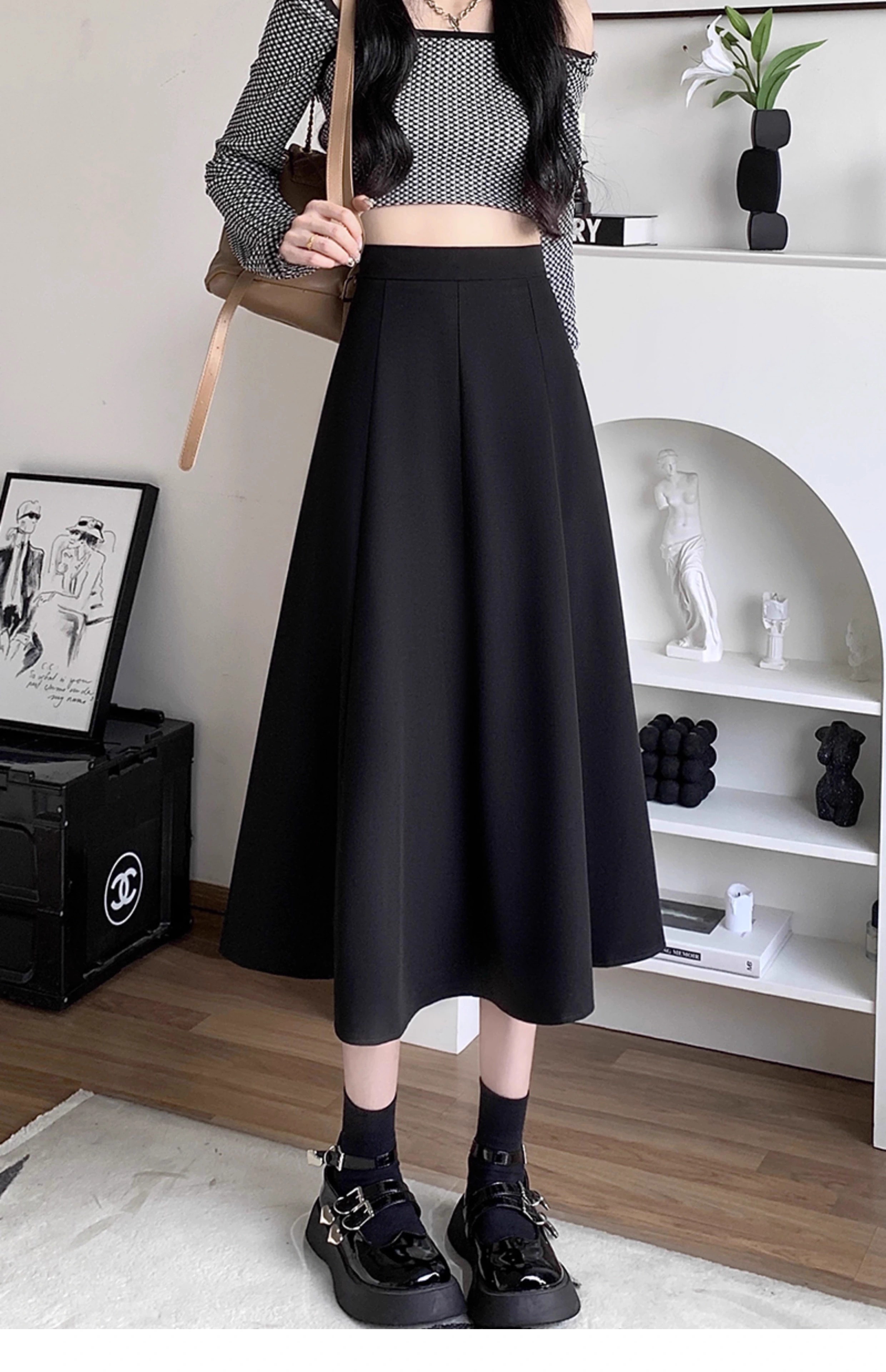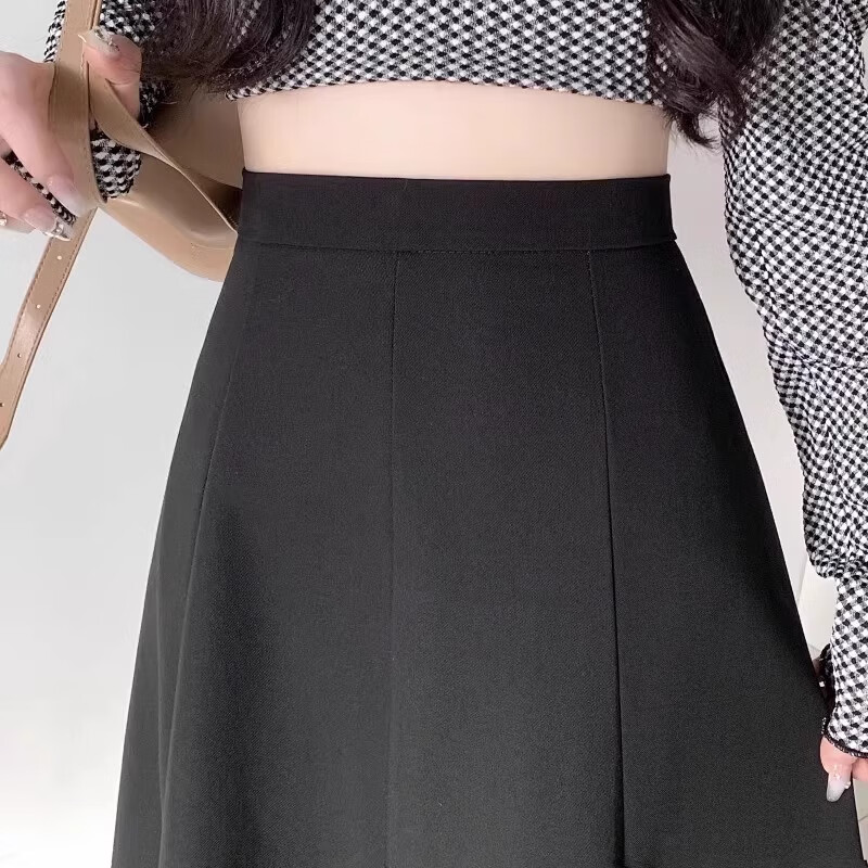 Kim Il-man's long skirt with long skirt for women, medium-length umbrella skirt, high-waisted A-line wear, drapey pear-shaped suit body shape, spring and autumn, black, regular M