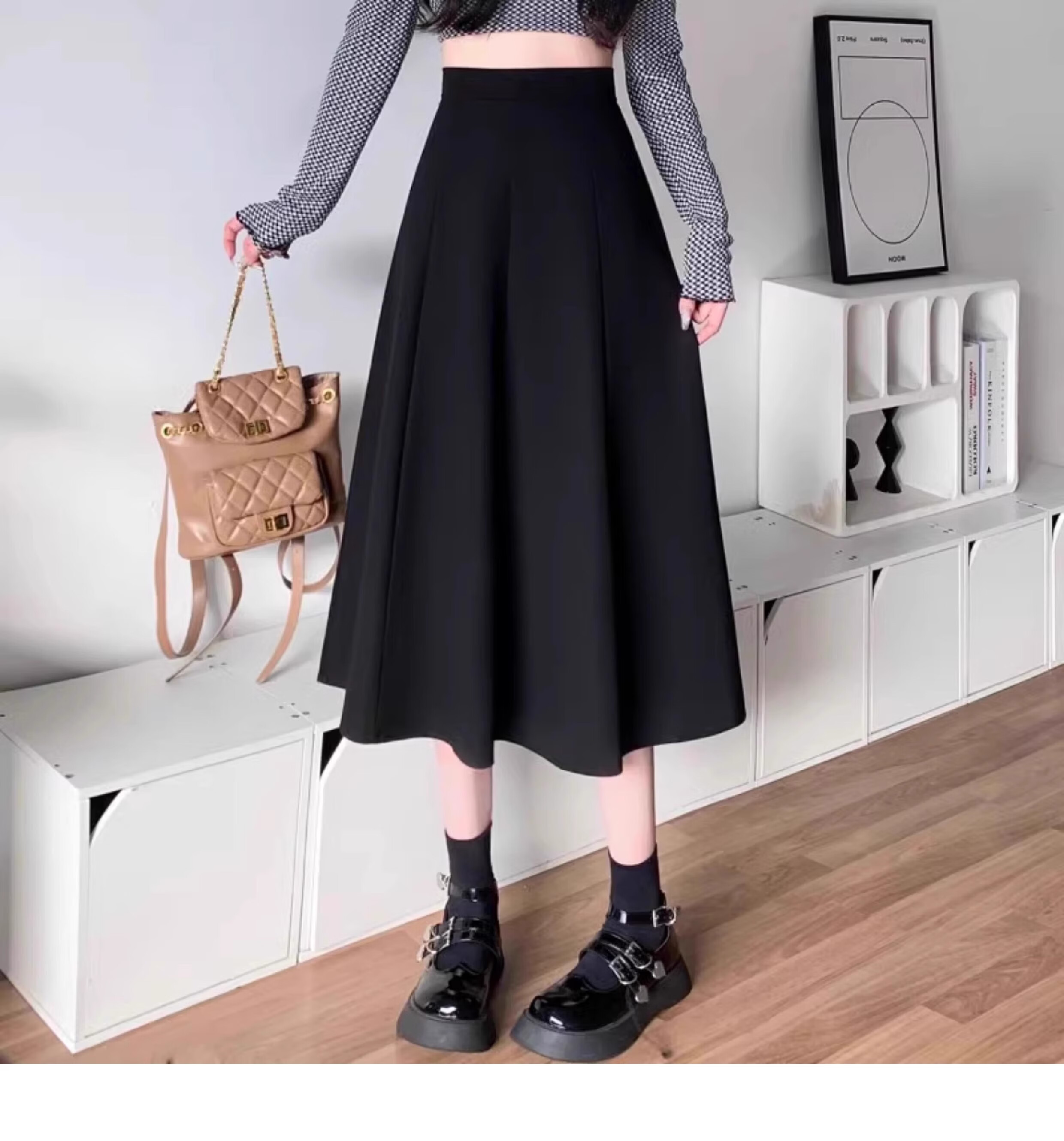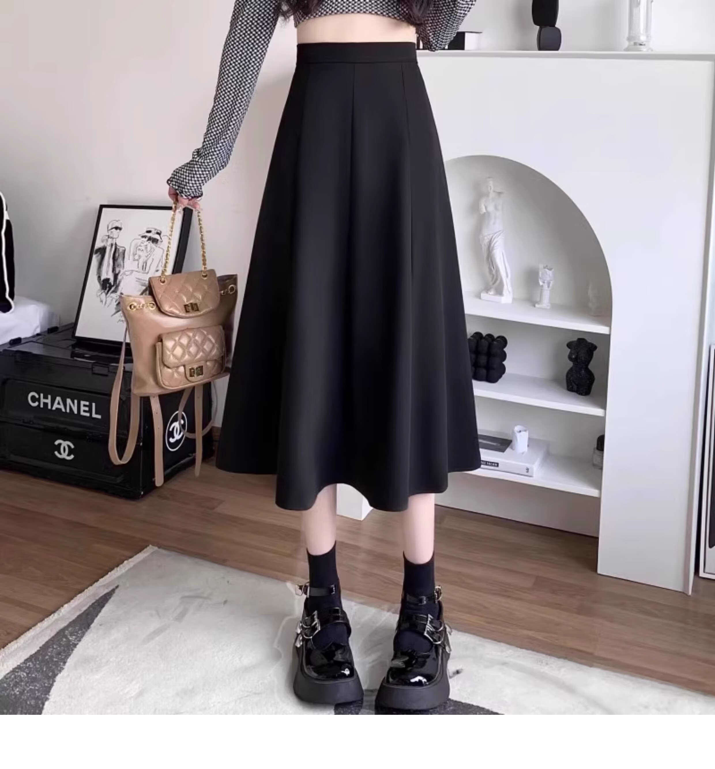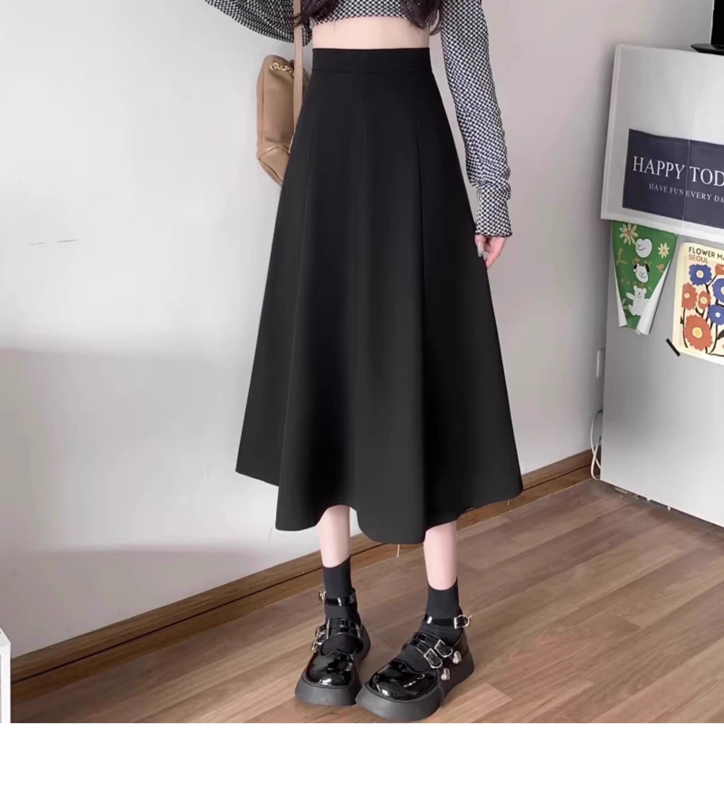 Kim Il-man's long skirt with long skirt for women, medium-length umbrella skirt, high-waisted A-line wear, drapey pear-shaped suit body shape, spring and autumn, black, regular M