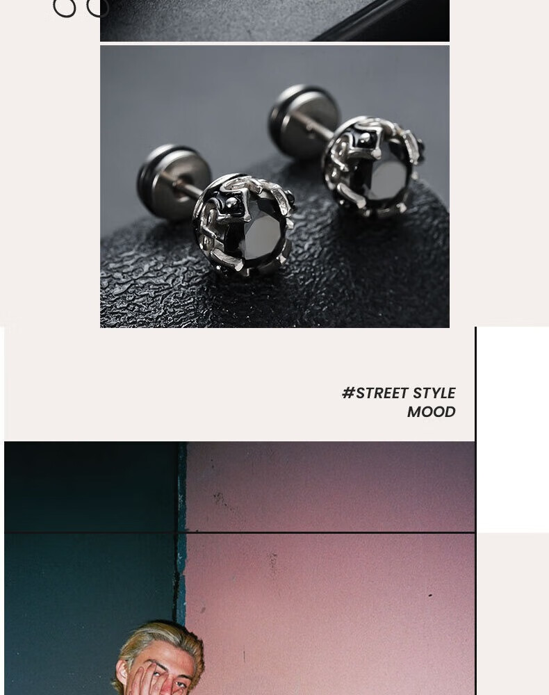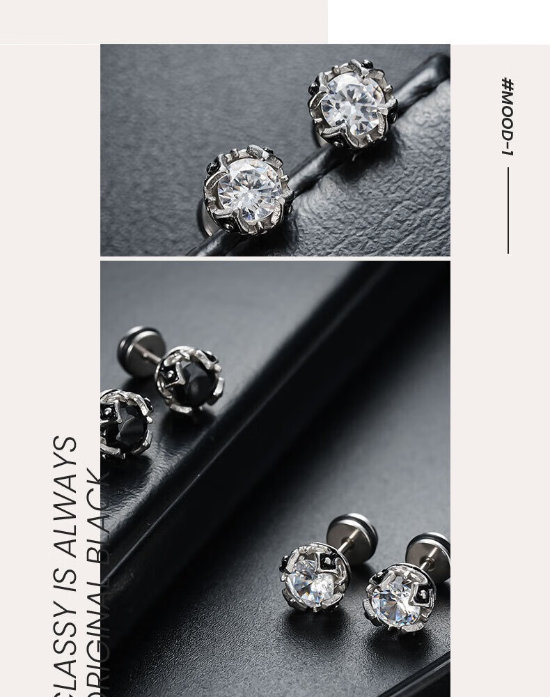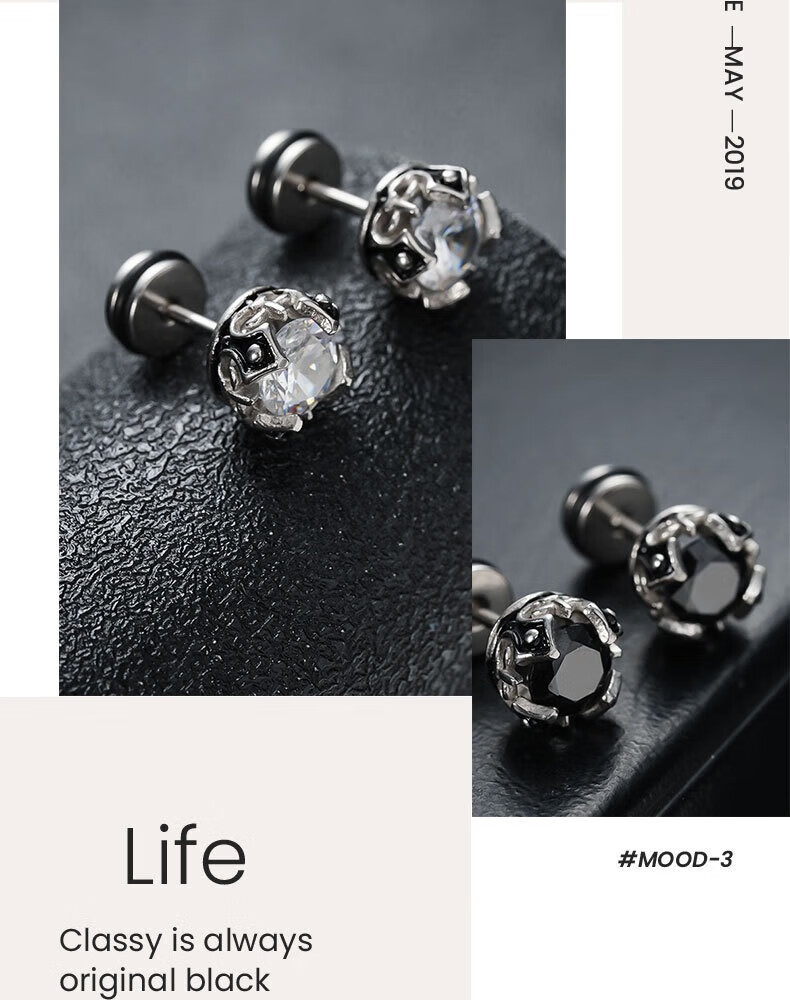 Yechi earrings for men, high-end, handsome, titanium steel, non-fading, American simple design, niche cold style, boys' earrings, a pair of high-end black diamond earrings
