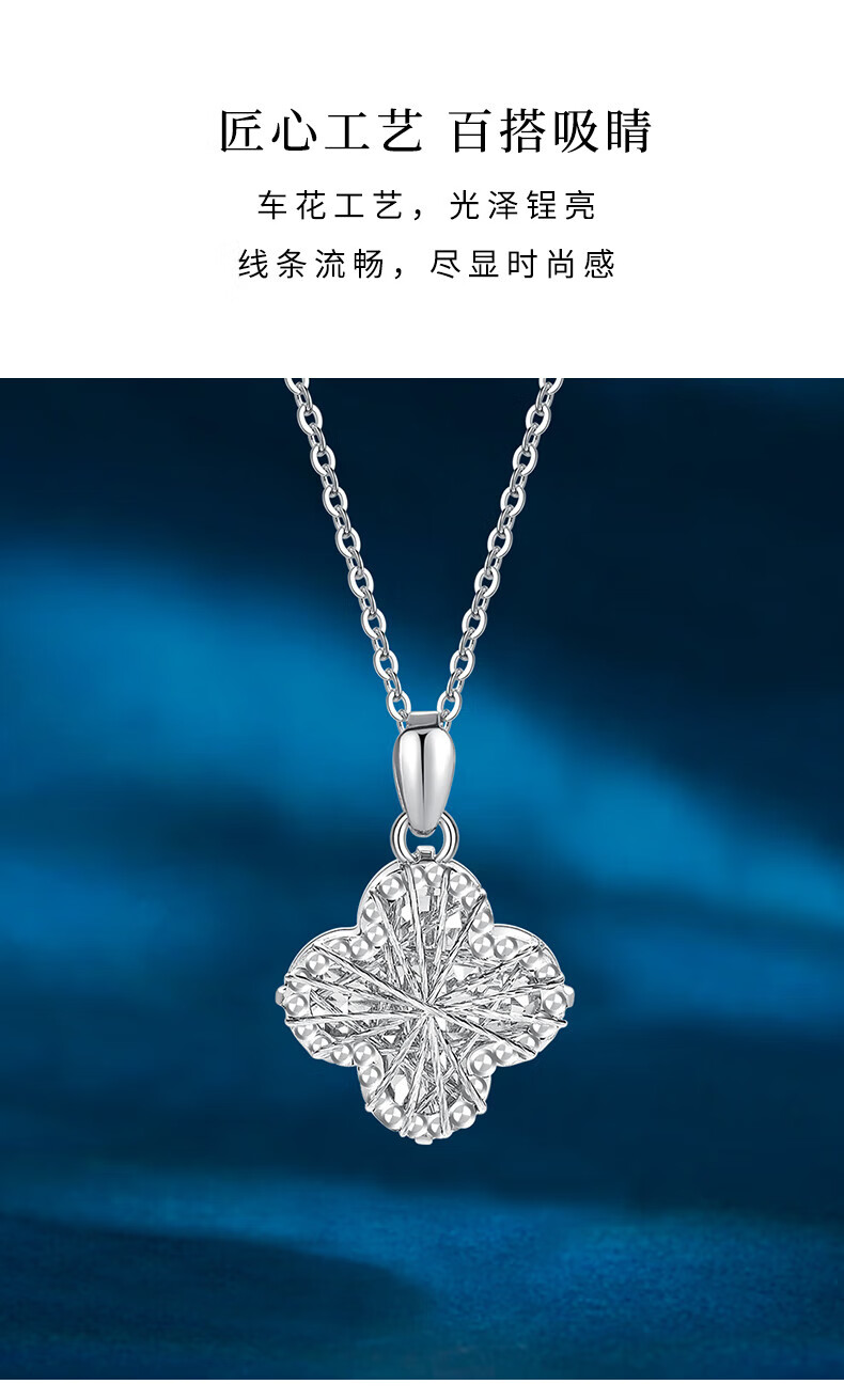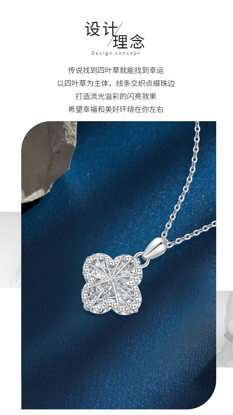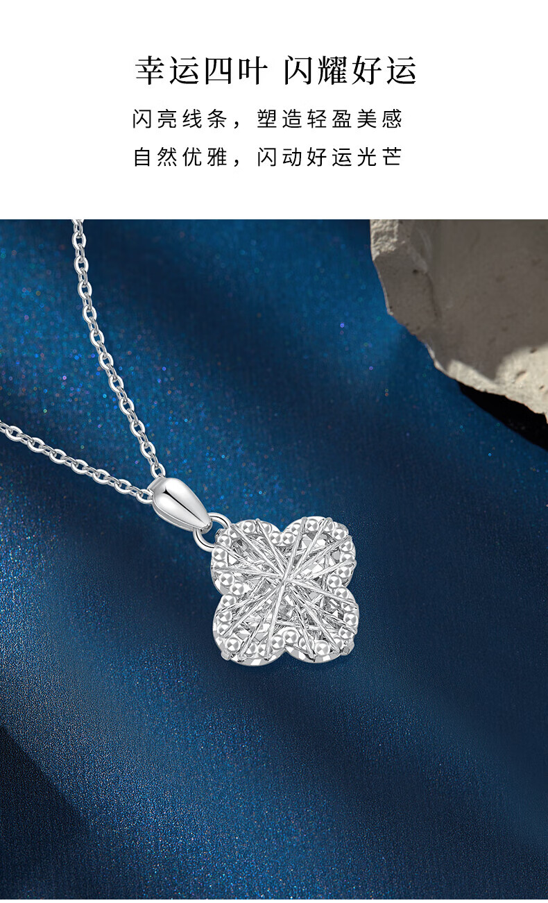 Lao Fengxiang four-leaf clover pendant, fashionable platinum pendant necklace, birthday gift for wife, platinum jewelry for girlfriend, platinum four-leaf clover wire pendant (about 2.1g)