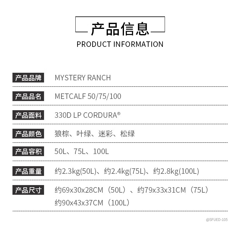MYSTERY RANCH Mystery Farm Metcalf 50 75 100 Large Capacity Backpack Pine Green 50L M
