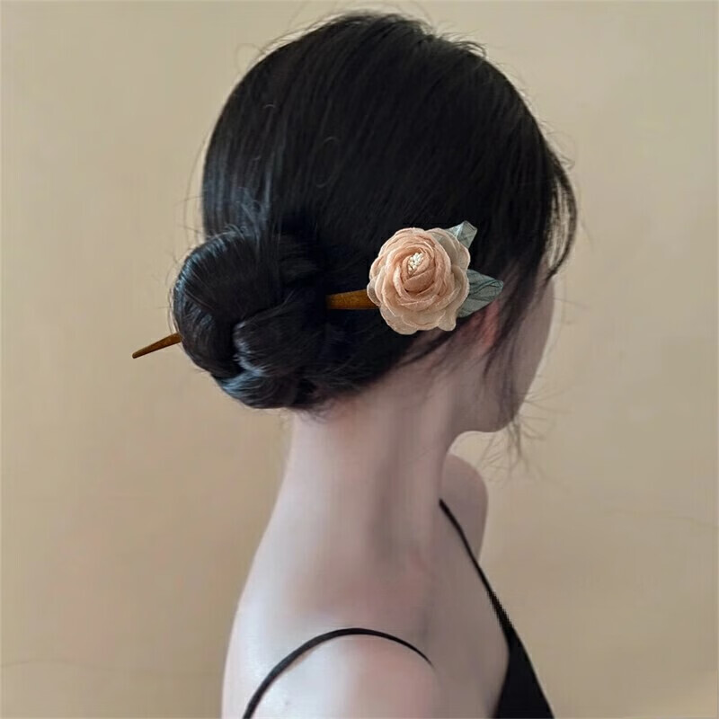 Purple rose wooden hairpin summer hairpin mesh flower hairpin ancient style hairpin headdress temperament hair accessories for women rose wooden hairpin purple - 1 piece