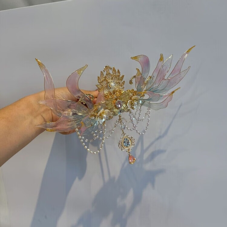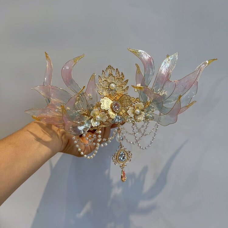Tiannan Brothers (TNBROTHERS) Pink Phoenix Crown Dream Jinling Pink Mermaid Princess Hanfu Hair Accessories Set Complete Set Hair Crown Madonna Crown Earrings Mermaid Princess Front Crown