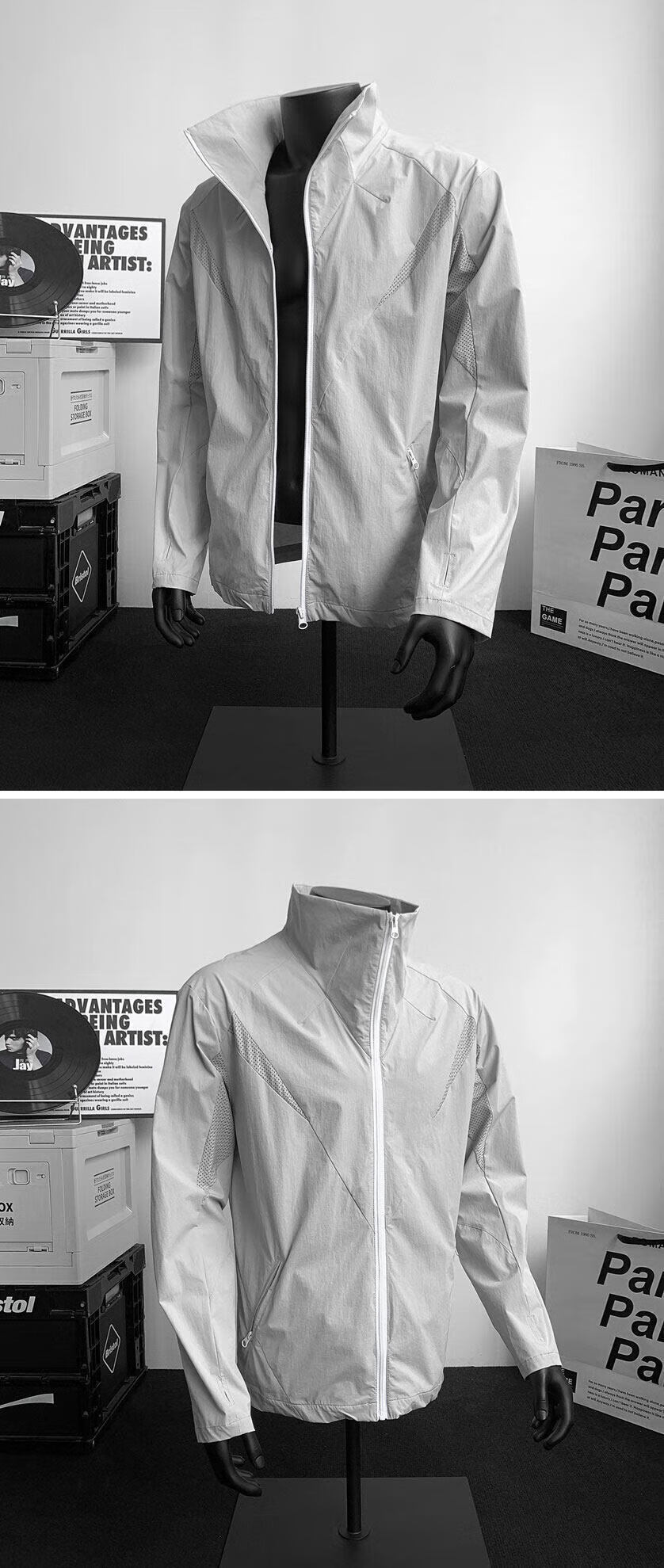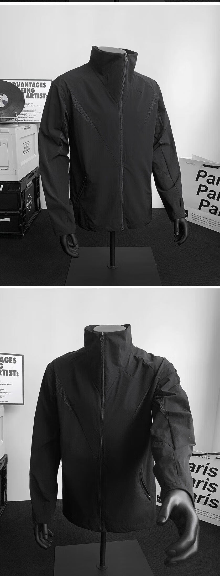 ZHUYIFAN Gray Mesh Spliced Sun Protection Clothing Men's Summer Slim Stand-Collar Jacket American Outdoor Sports Breathable Cycling Jersey Light Gray Upgraded M 100-115Jin Jin is equal to 0.5 kg