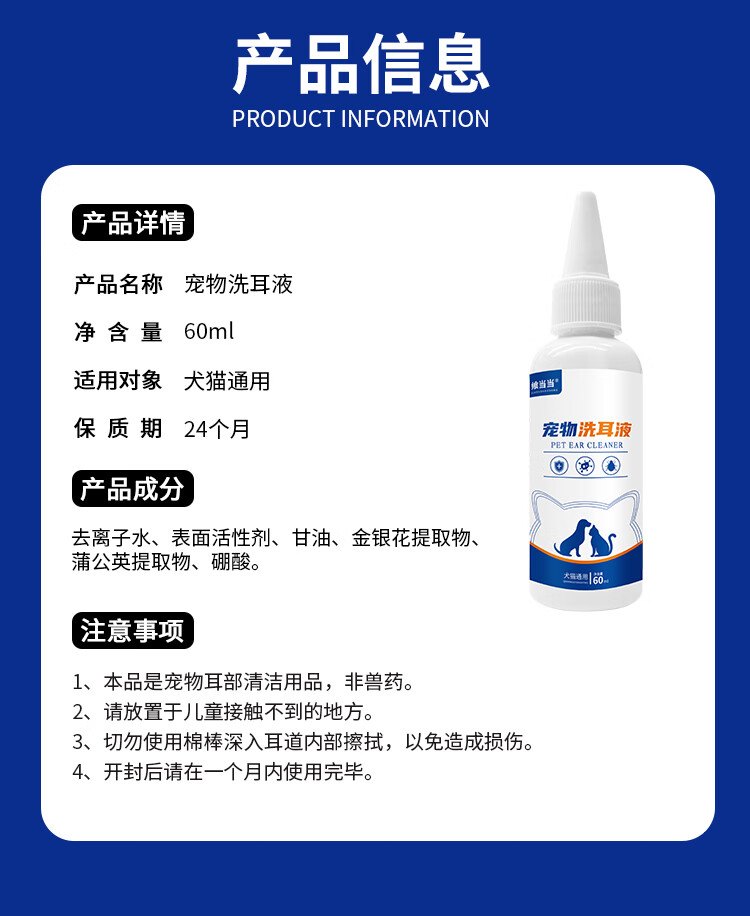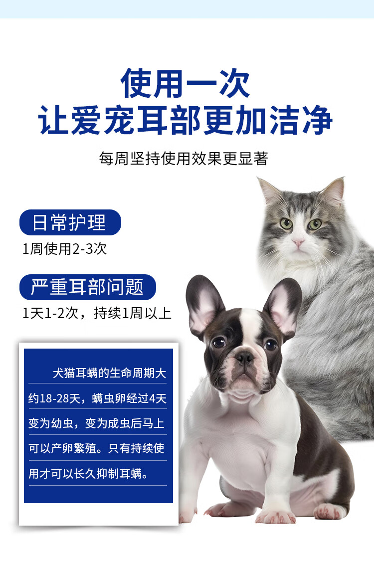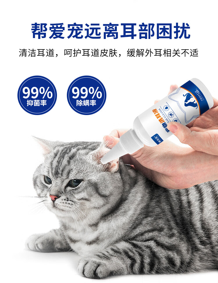 Xiandangdang Dog Ear Drops Cat Ear Cleanser Ear Wash Pet Ear Mite Remover Ear Cleaning Pet Supplies Two Bottles