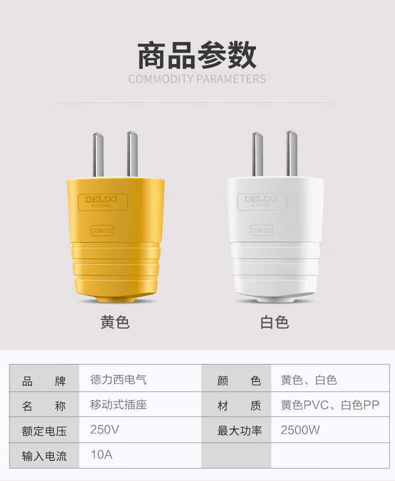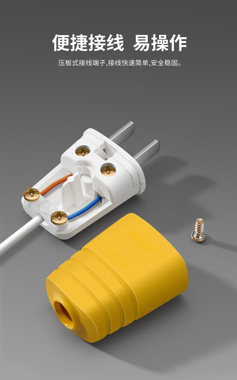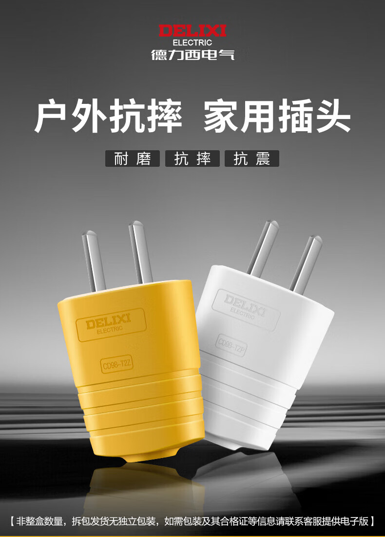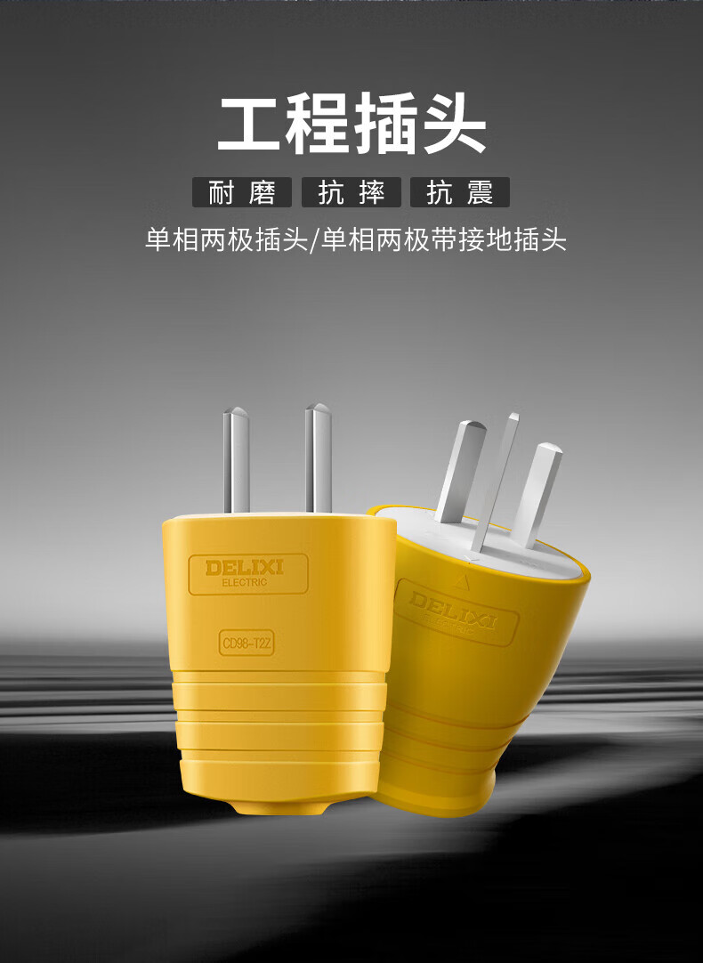 Delixi (DELIXI) new national standard socket plug strip project is not broken 3-position waterproof and dustproof self-wiring socket two-three-pin adapter 10A two-pin white