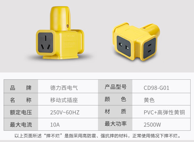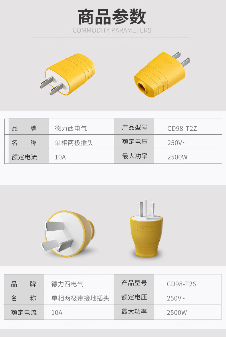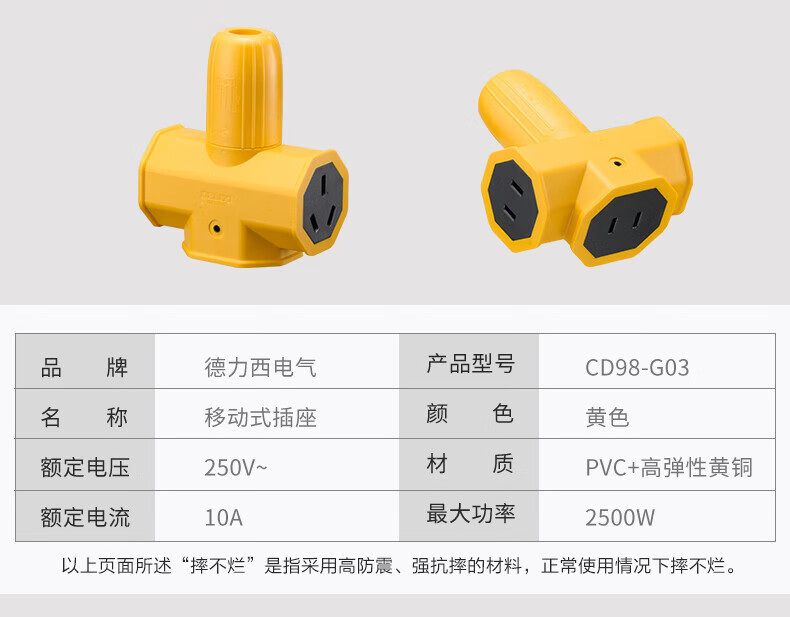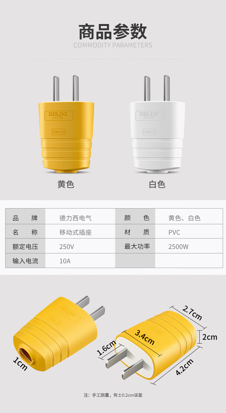 Delixi (DELIXI) new national standard socket plug strip project is not broken 3-position waterproof and dustproof self-wiring socket two-three-pin adapter 10A two-pin white
