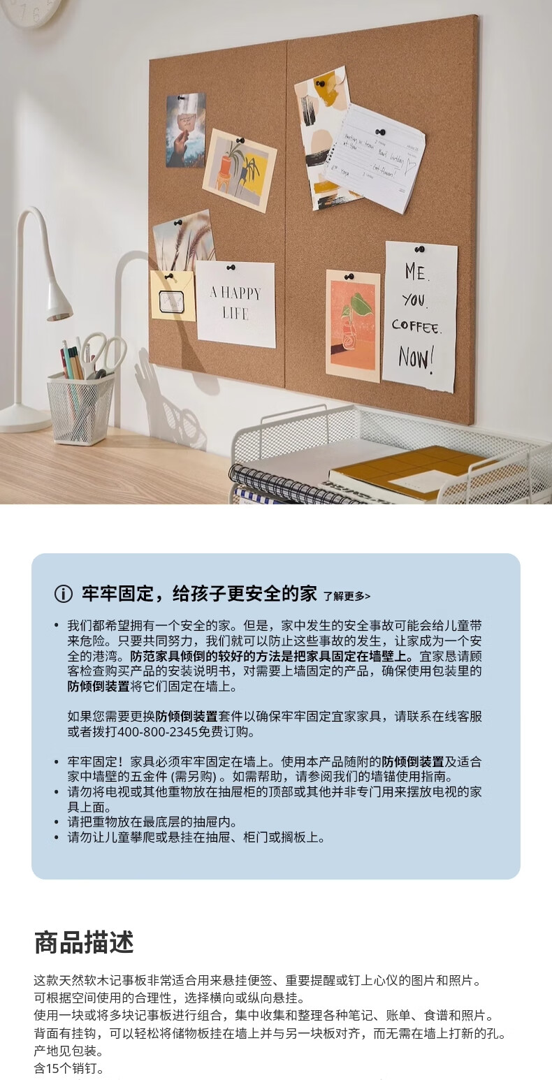 IKEA (IKEA) FLONSA message board with pins home photo wall notice board storage supplies student dormitory message board with pins cork