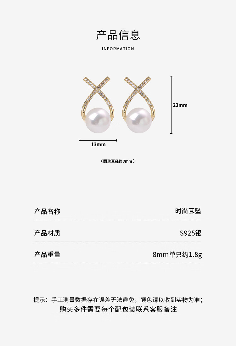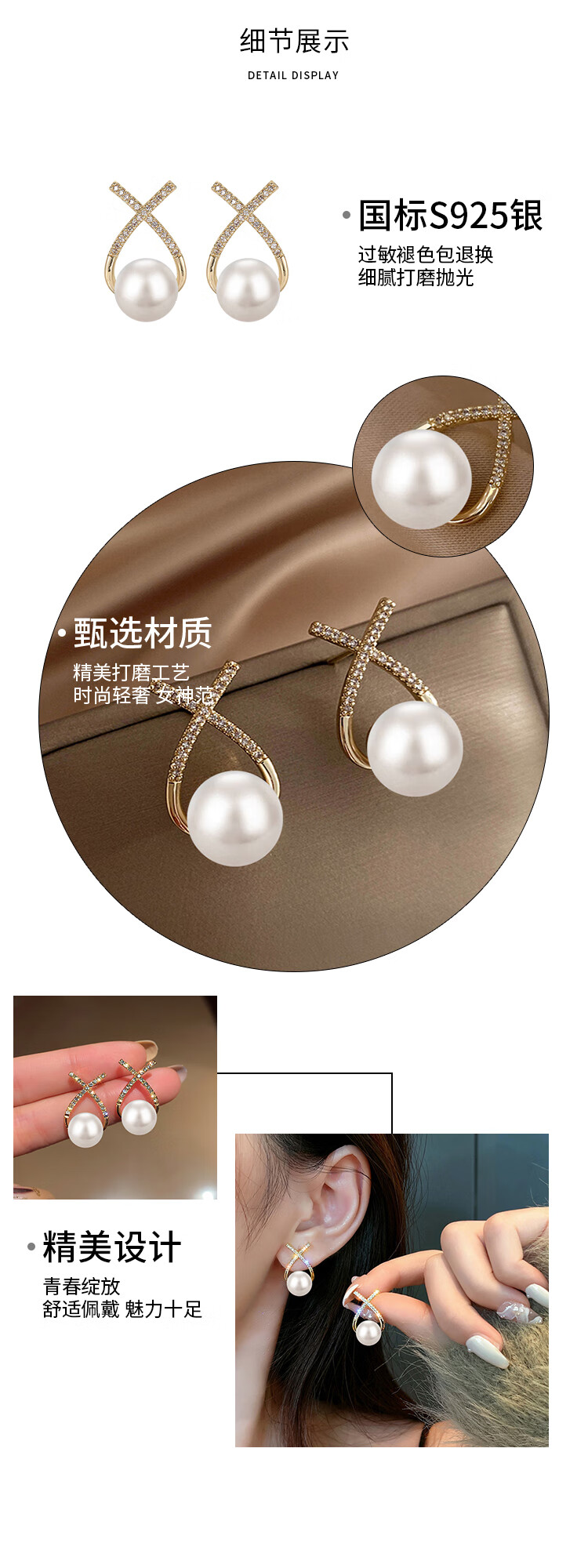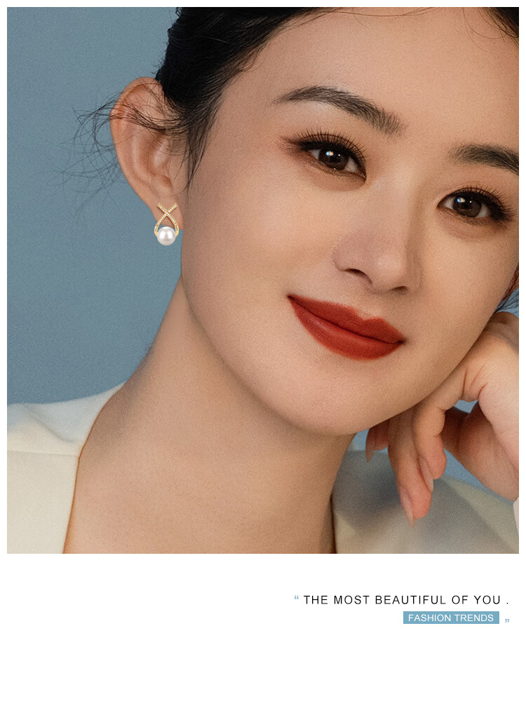 QPQK natural 100% freshwater pearl earrings 2025 new light luxury high-end temperament earrings women's gold earrings freshwater pearl earrings 8mm