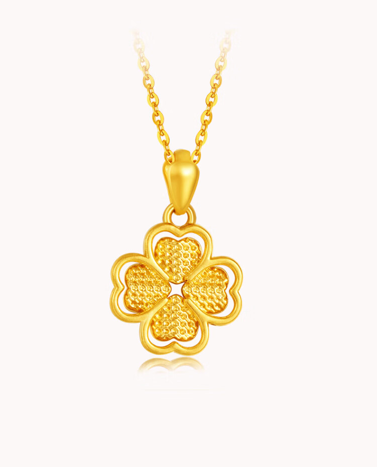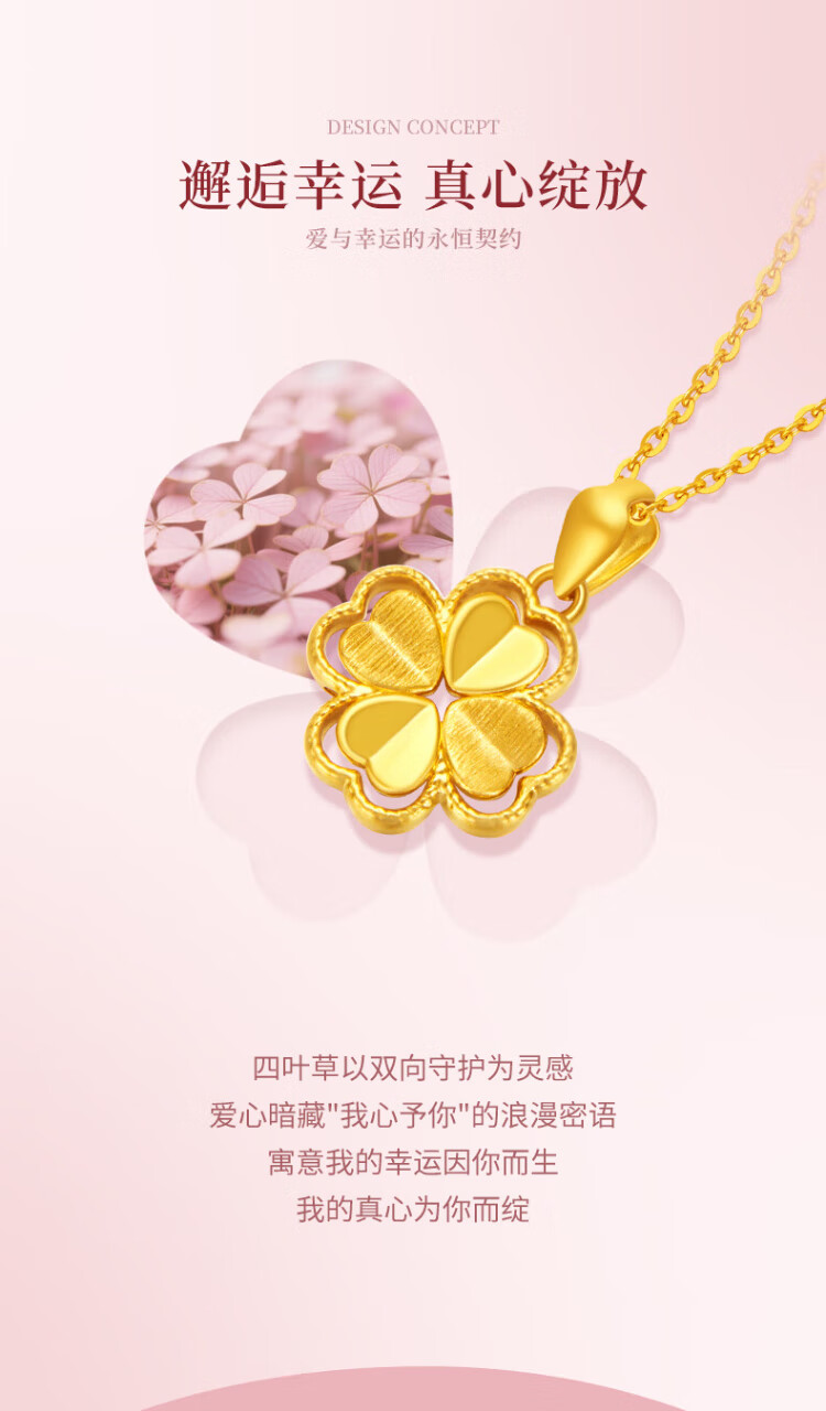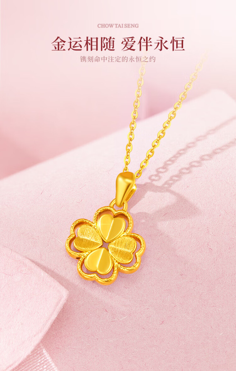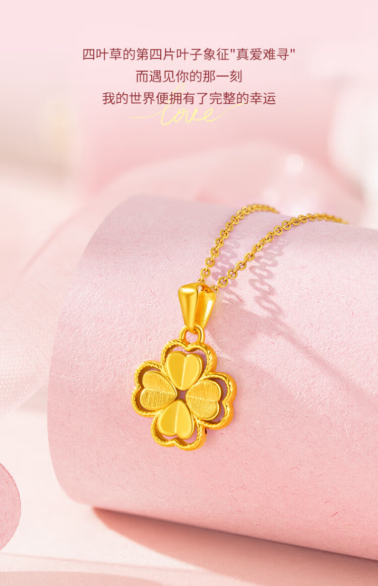 Chow Tai Sang gold necklace pure gold four-leaf clover pendant female gold necklace Valentine's Day birthday gift for girlfriend, wife and mother pure gold pendant about 0.6g + free 925 silver necklace