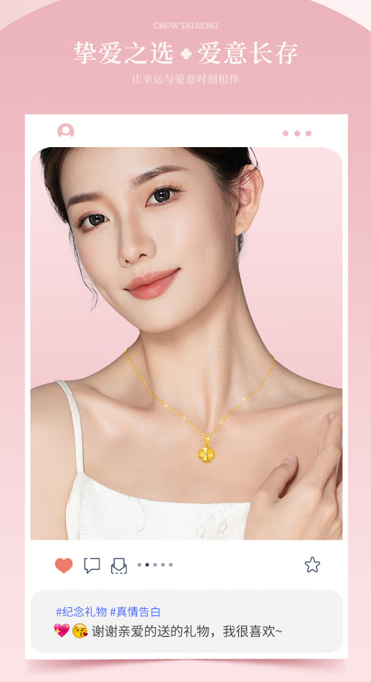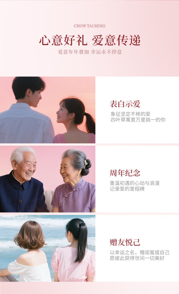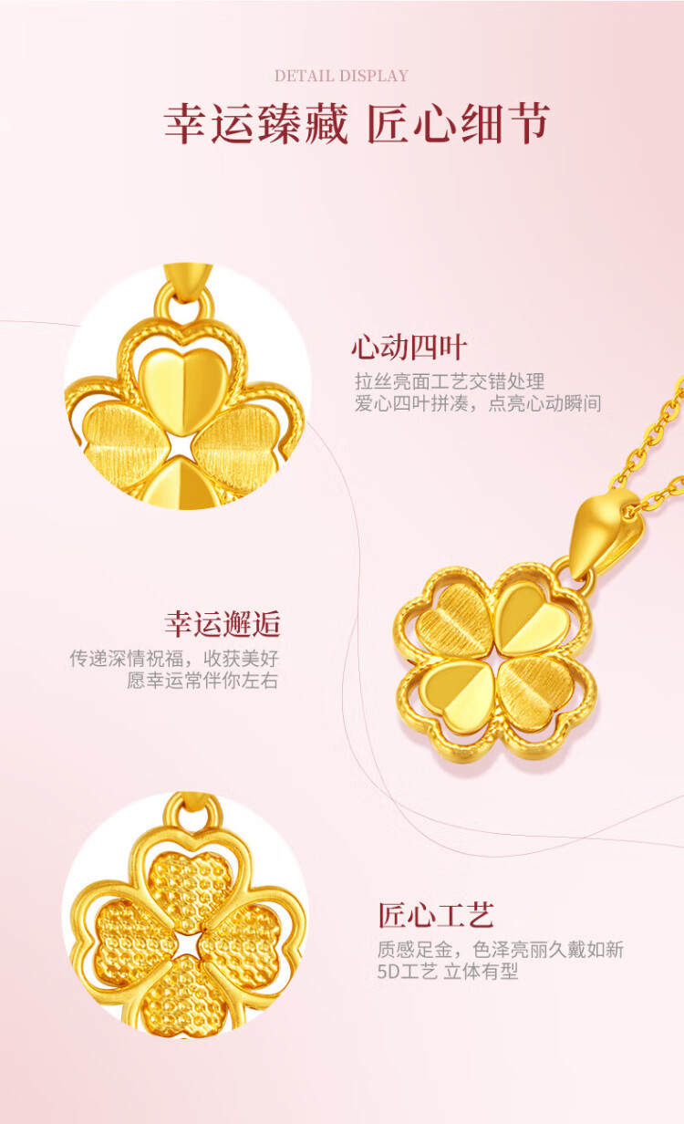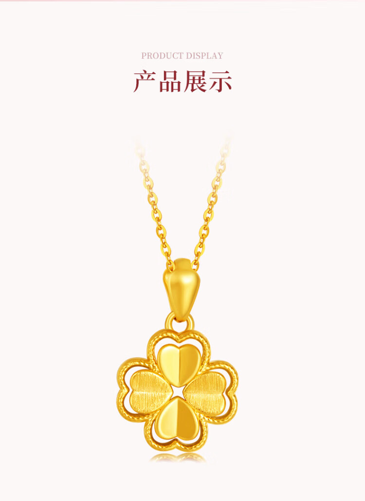 Chow Tai Sang gold necklace pure gold four-leaf clover pendant female gold necklace Valentine's Day birthday gift for girlfriend, wife and mother pure gold pendant about 0.6g + free 925 silver necklace