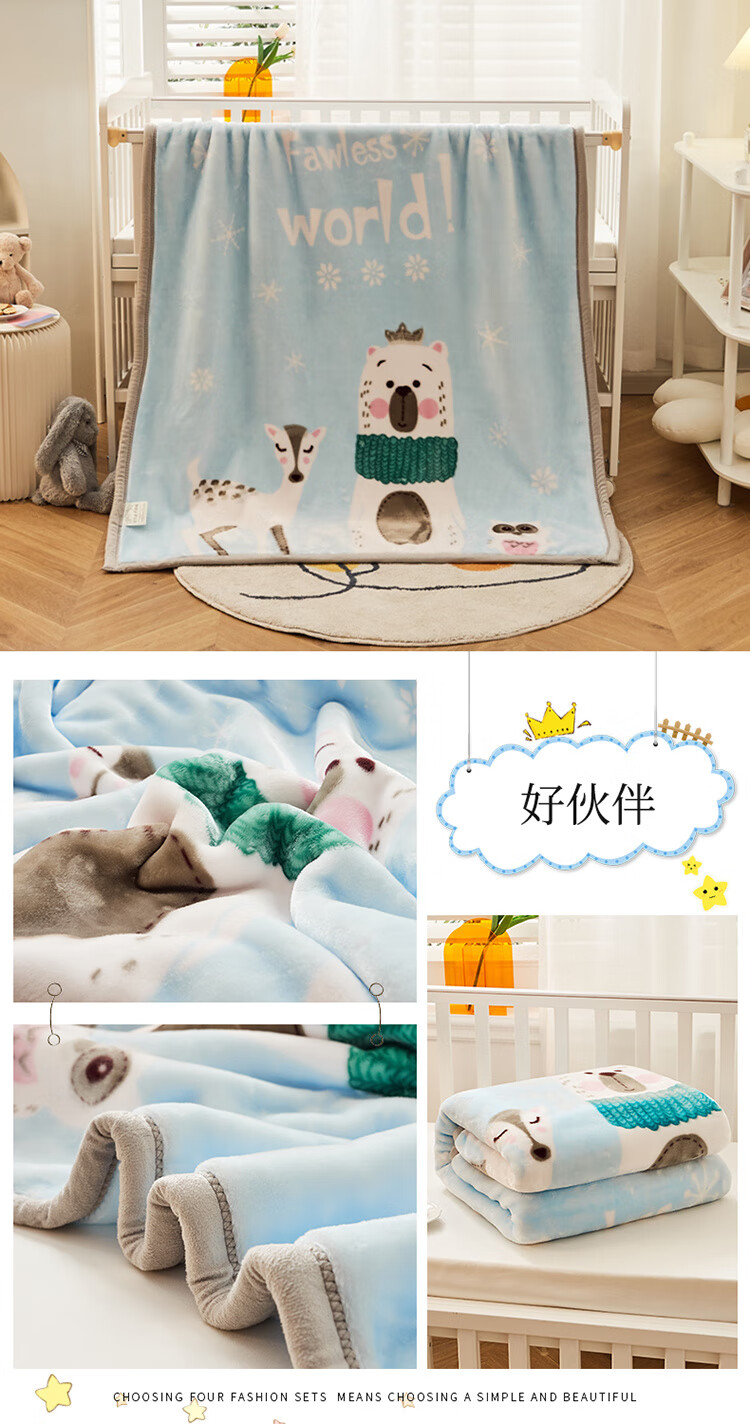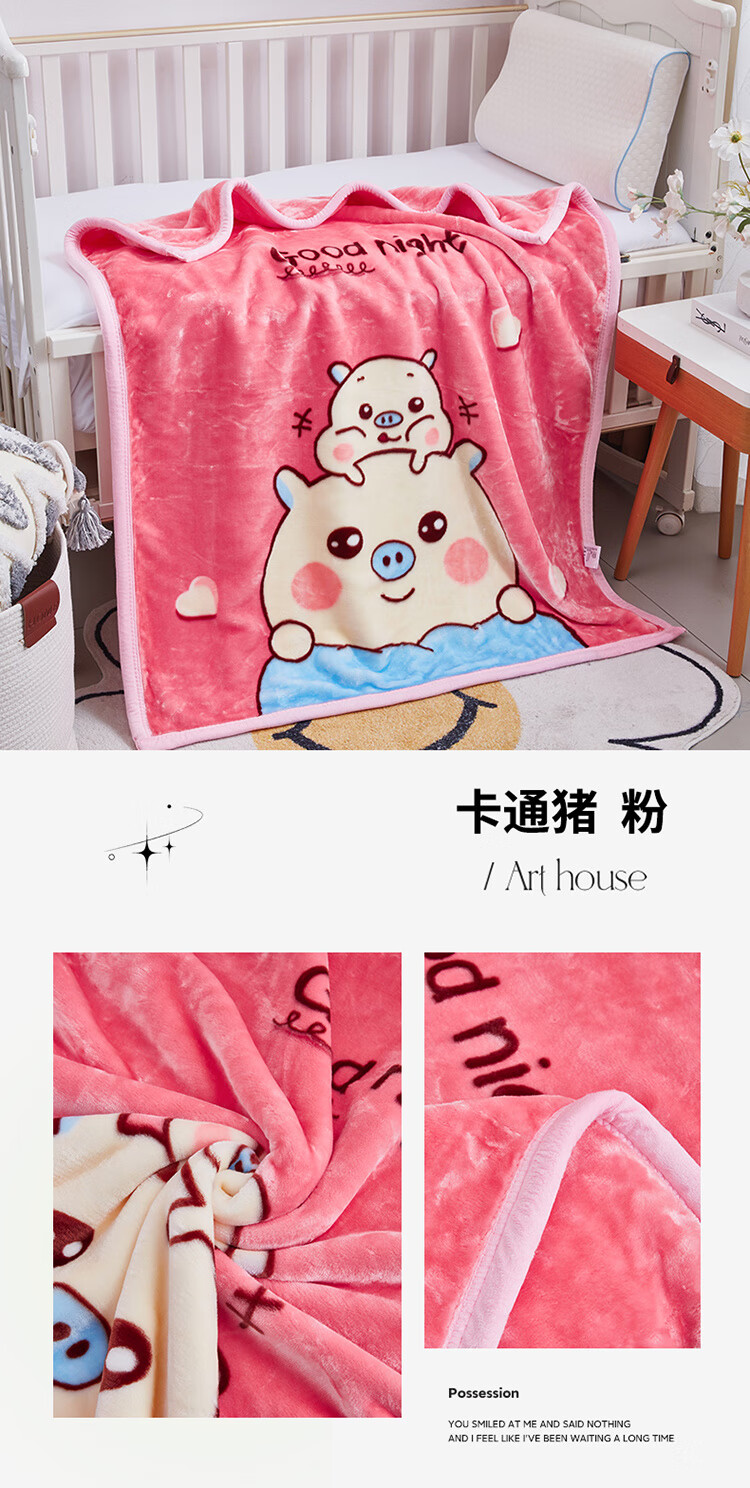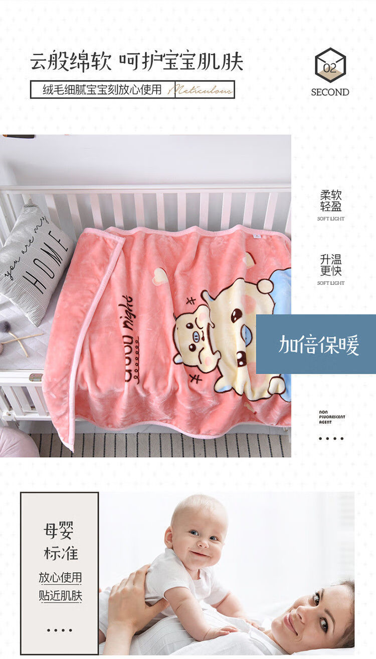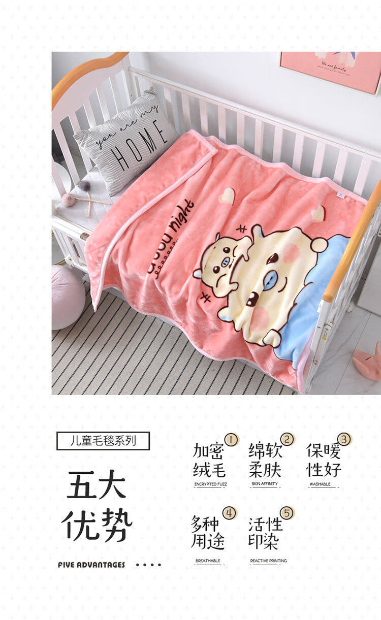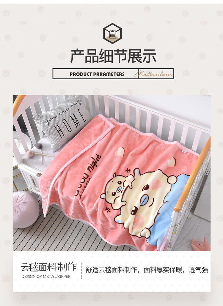 Ye Yu Kindergarten Quilt Baby Blanket Baby Cover Blanket Windproof Blanket Double-layer Double-sided Velvet Thickened Warm Autumn and Winter Blanket Large Bottle Powder 100x120 1.3Jin Jin equals 0.5kg Simple packaging for personal use