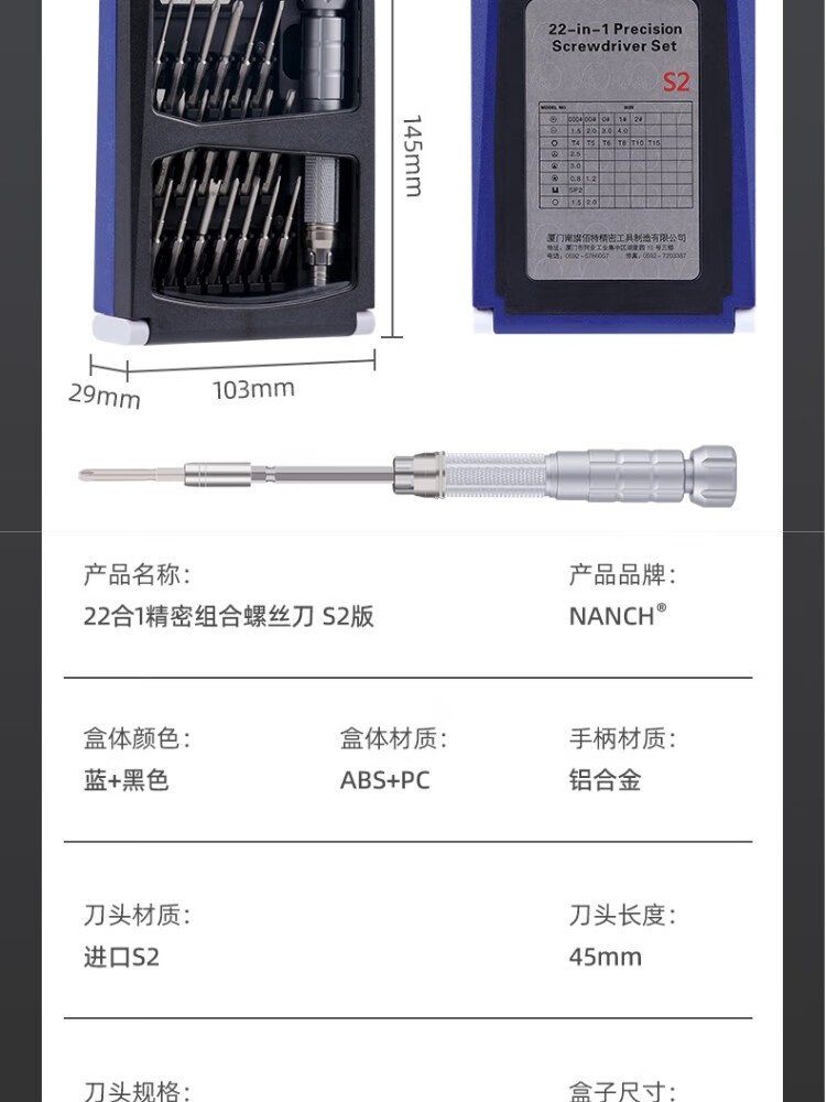 Nanqi NANCH precision screwdriver 22-in-1 s2 version disassembly computer digital glasses notebook mobile phone combination tool black + blue color