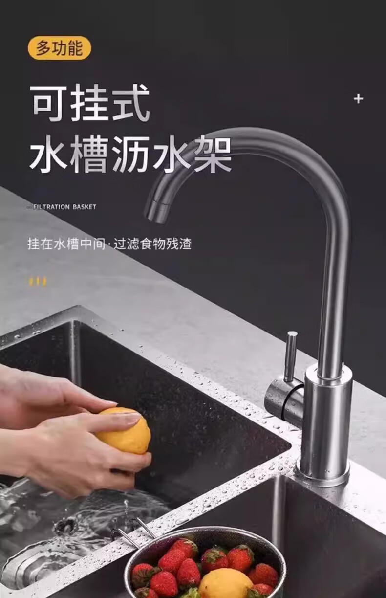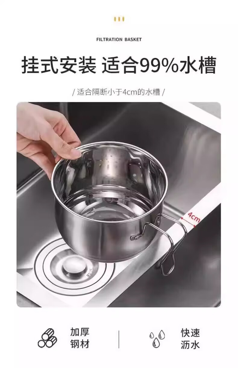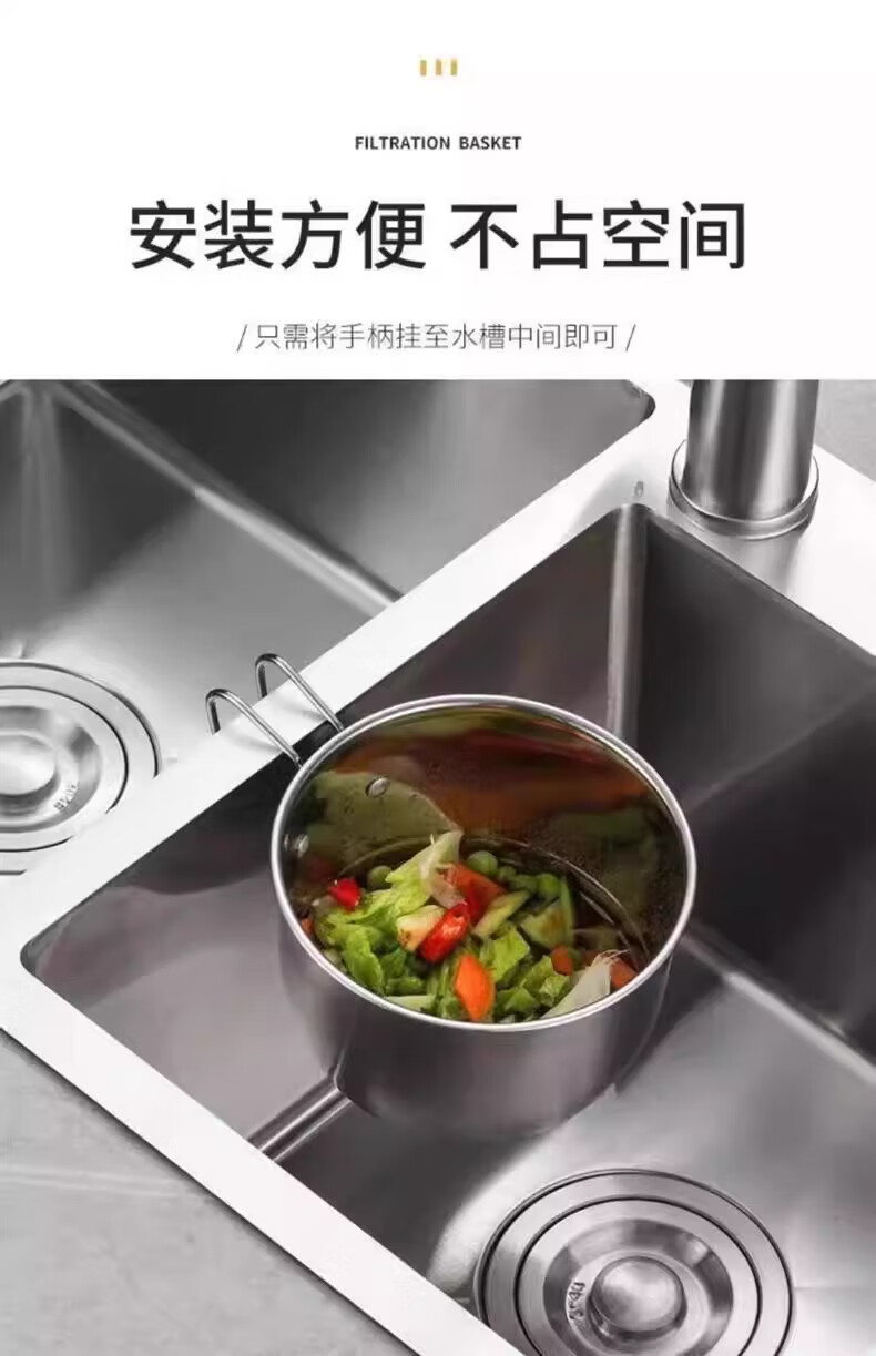 Xincong Stainless Steel Sink Filter Basket Kitchen Hanging Drainage and Vegetable Washing Multifunctional Fruit and Vegetable Storage Chopsticks and Spoon Large Separator 1 Pack Stainless Steel Drainage Basket