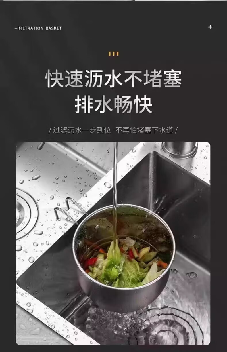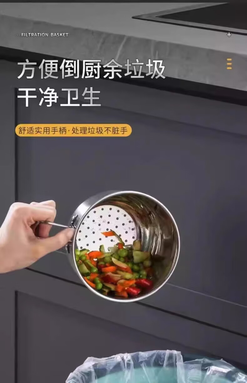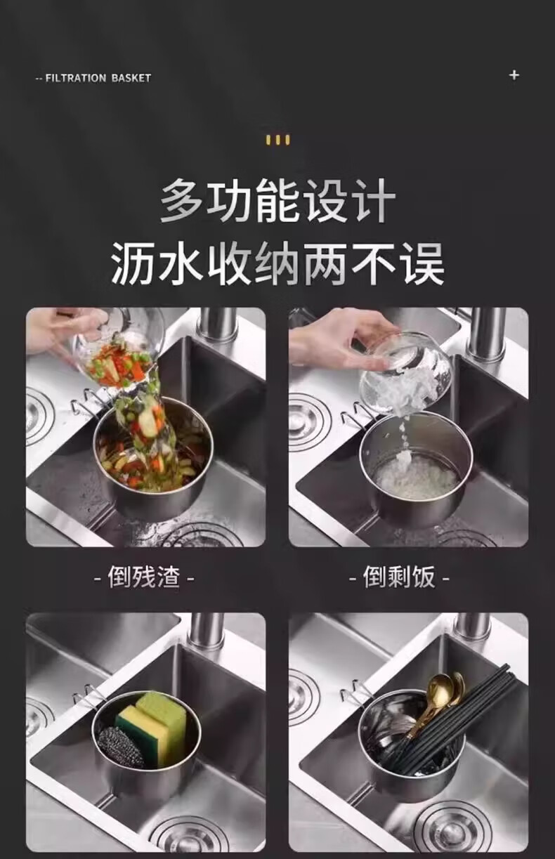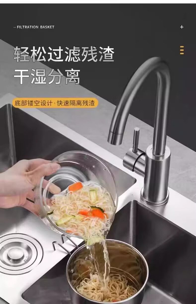 Xincong Stainless Steel Sink Filter Basket Kitchen Hanging Drainage and Vegetable Washing Multifunctional Fruit and Vegetable Storage Chopsticks and Spoon Large Separator 1 Pack Stainless Steel Drainage Basket