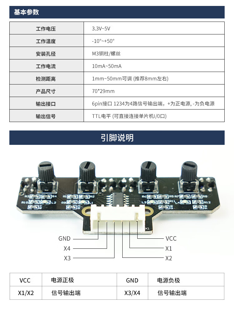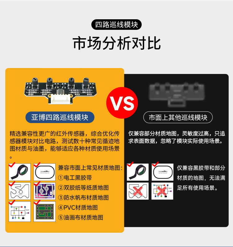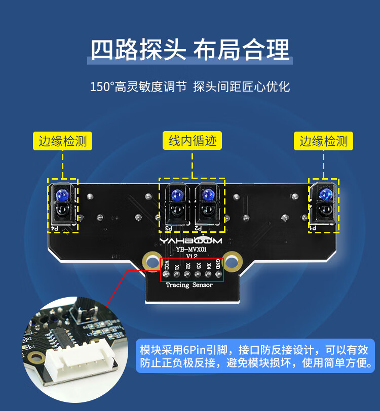 Yabo Intelligent Car Robot 4-way Tracking Module Line Patrol Sensor Infrared Tracking Four-way Identification Electronic Competition Four-way Line Patrol Module