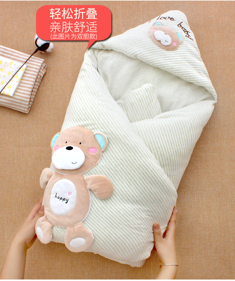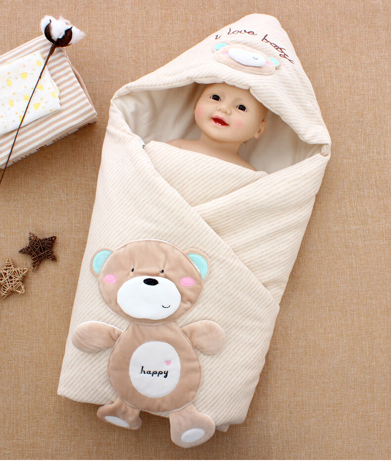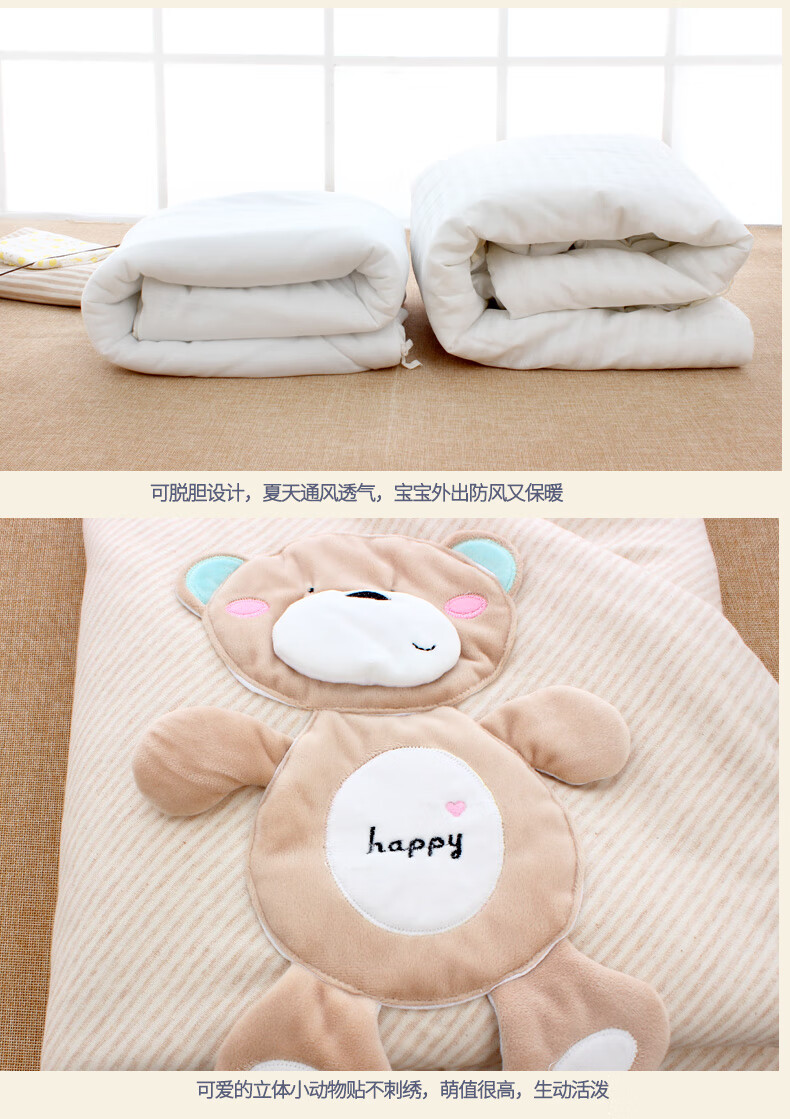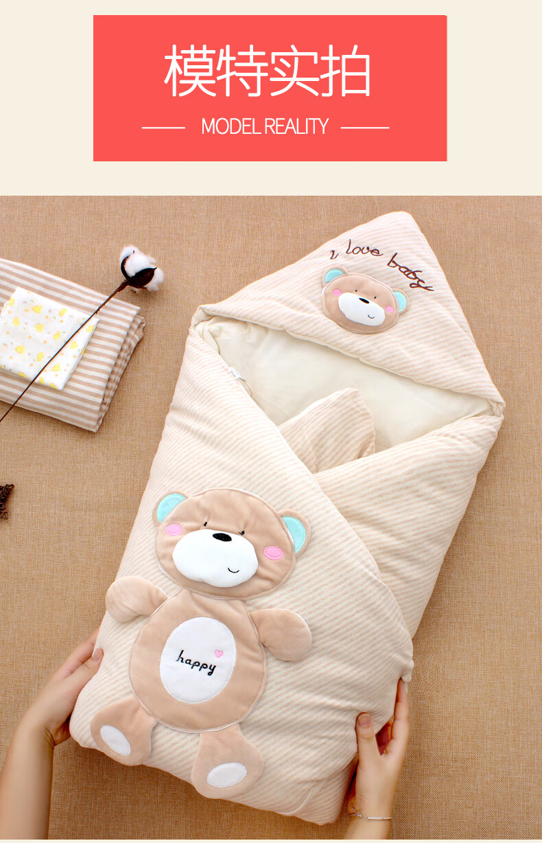 Baby colorful cotton quilt autumn and winter thickened and removable spring and summer thin newborn baby quilt newborn swaddle for four seasons happy bear coffee color four seasons double bile model (thin bile + thick bile) 98*98cm
