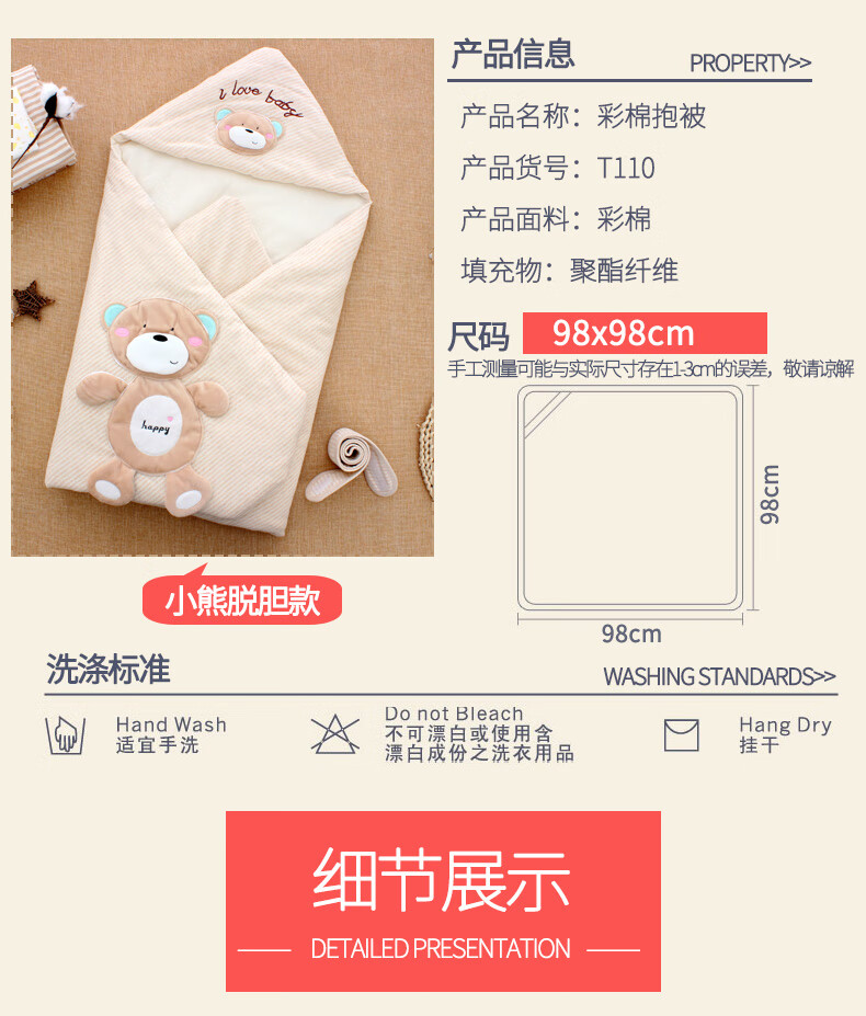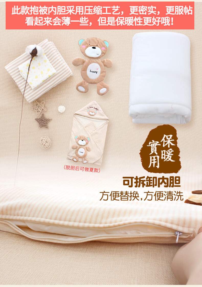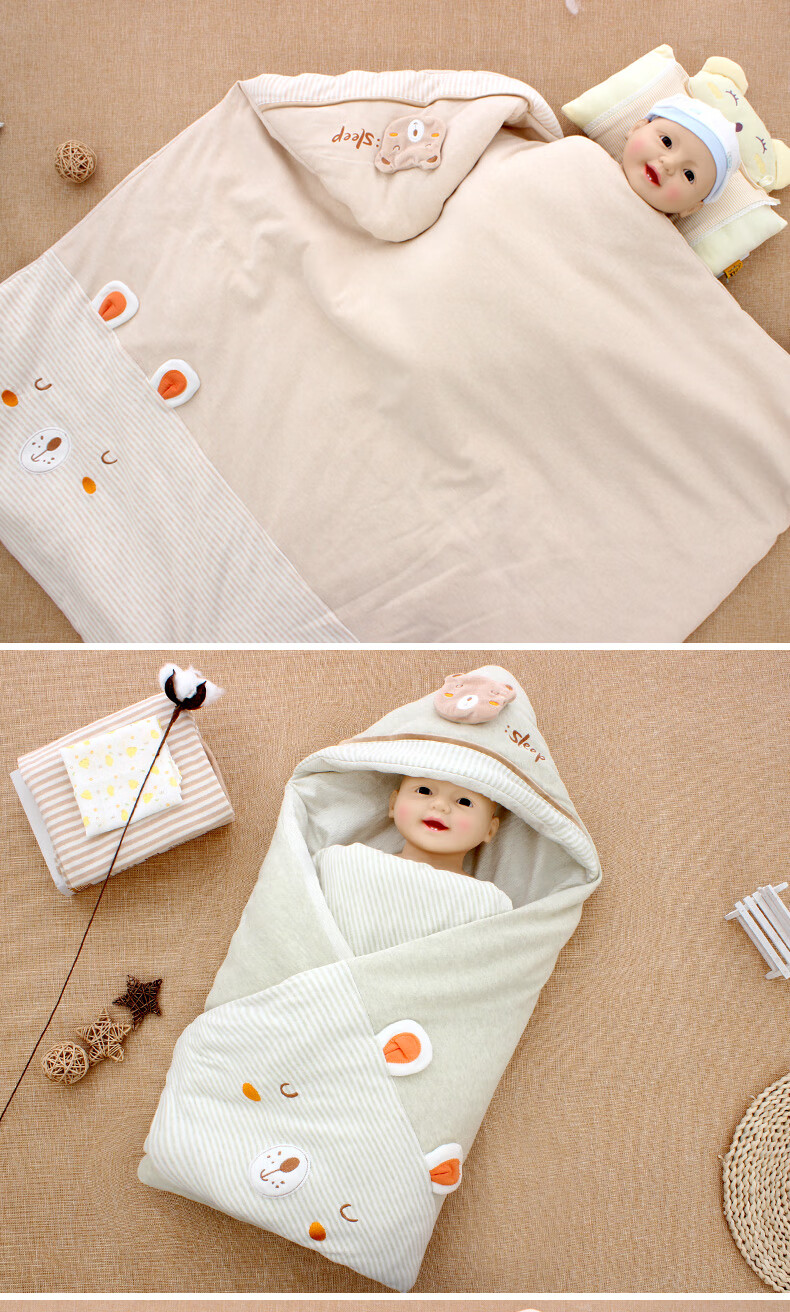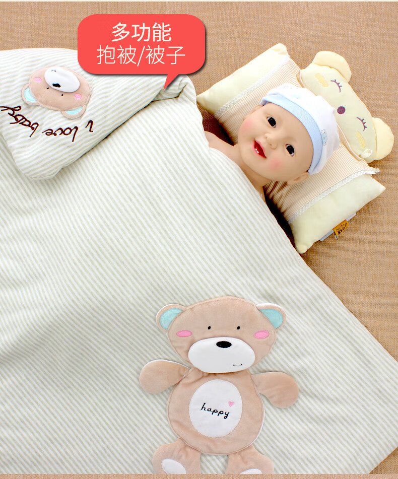 Baby colorful cotton quilt autumn and winter thickened and removable spring and summer thin newborn baby quilt newborn swaddle for four seasons happy bear coffee color four seasons double bile model (thin bile + thick bile) 98*98cm