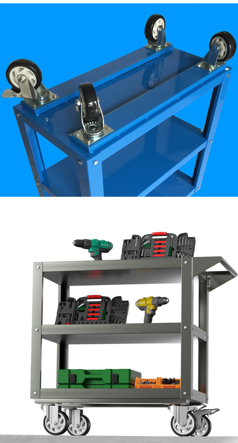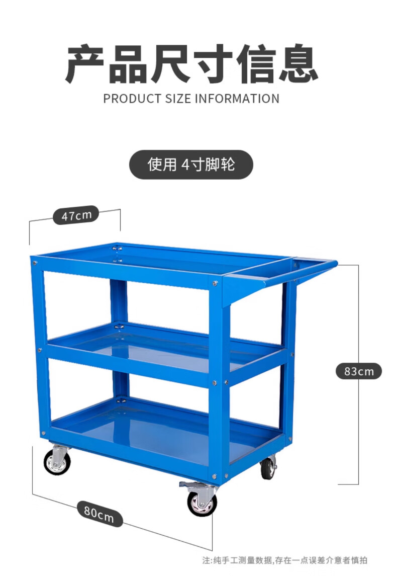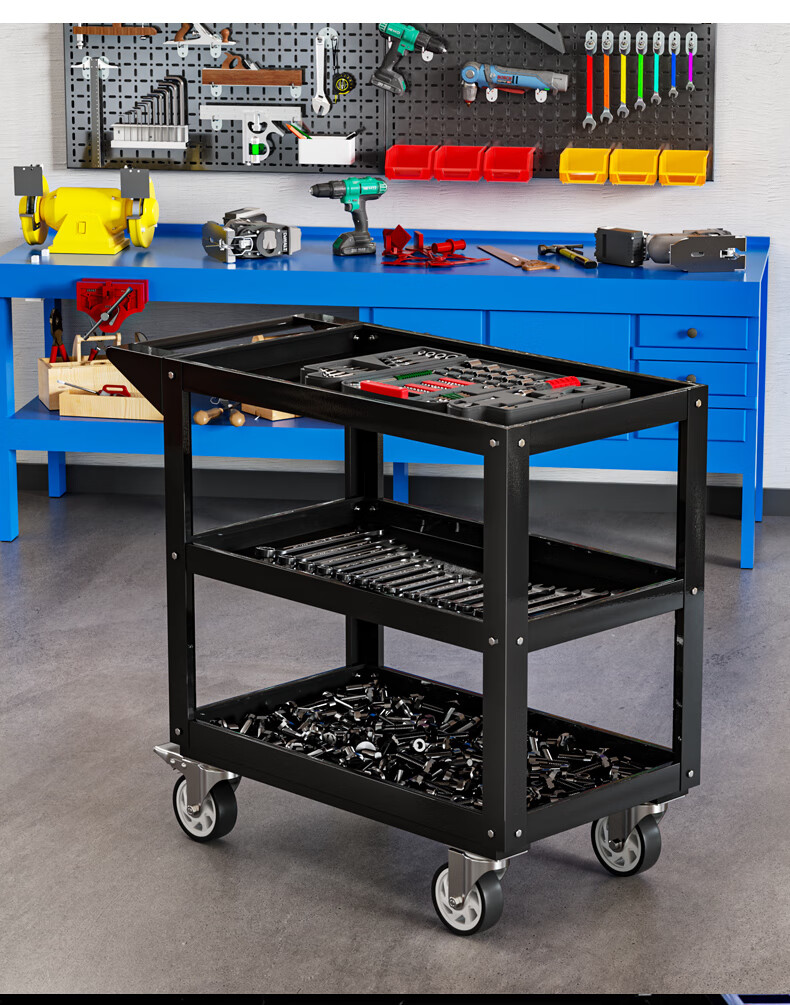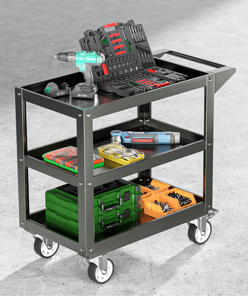 Chitu Multifunctional Workshop Heavy Duty Maintenance and Sorting Thickened Tool Cart Hardware Shelves Handling Three-layer Trolley Lightweight Large Black Weight About 15kg Lightweight Large Length 800* Width 400* Height 800mm